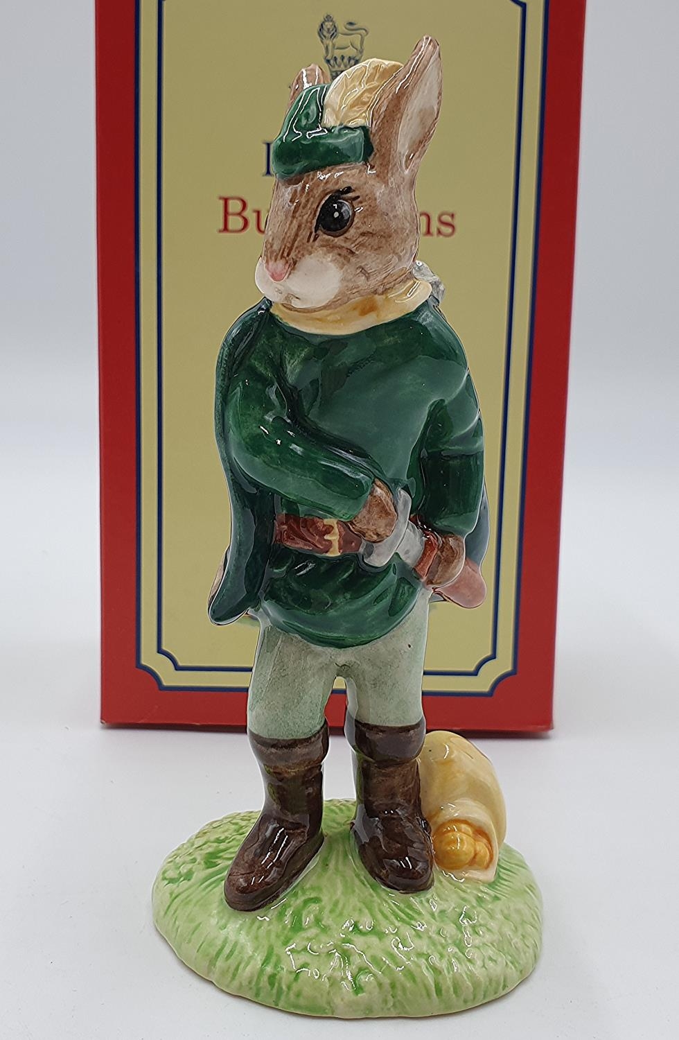 ROYAL DOULTON 11.9cm BUNNYKINS CHARACTER FIGURINE "ROBIN HOOD" (Gold Edition) DB 244 2001 Designed And Modelled By Martyn Alcock FOR THE ROBIN HOOD COLLECTION (Original Box)