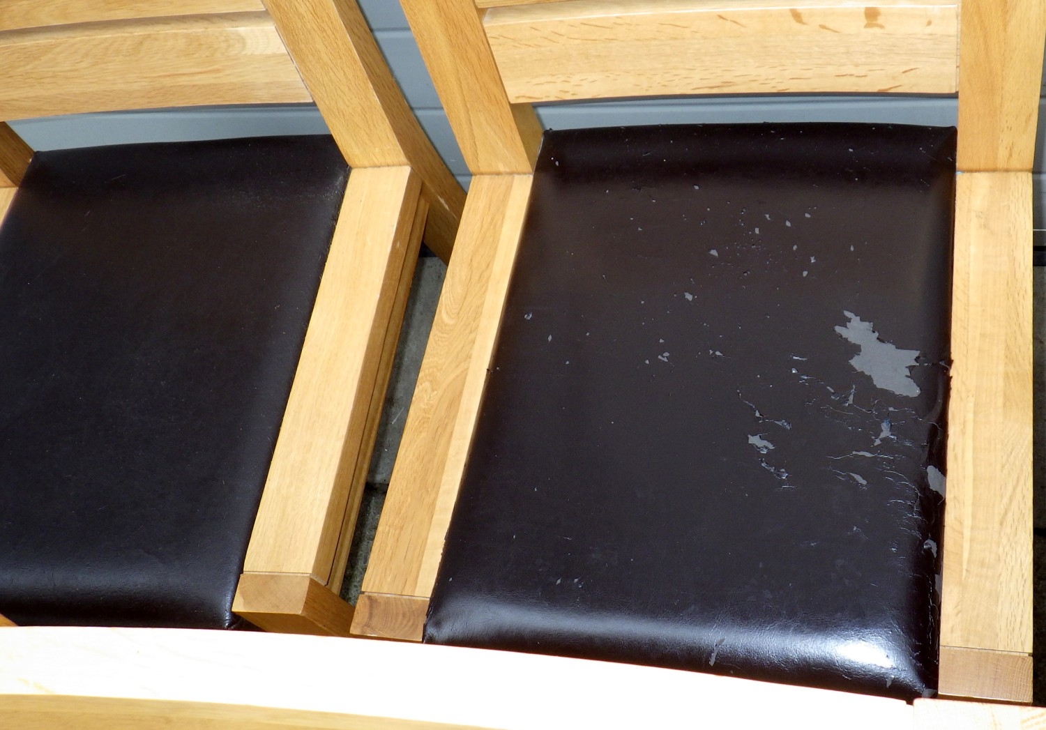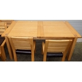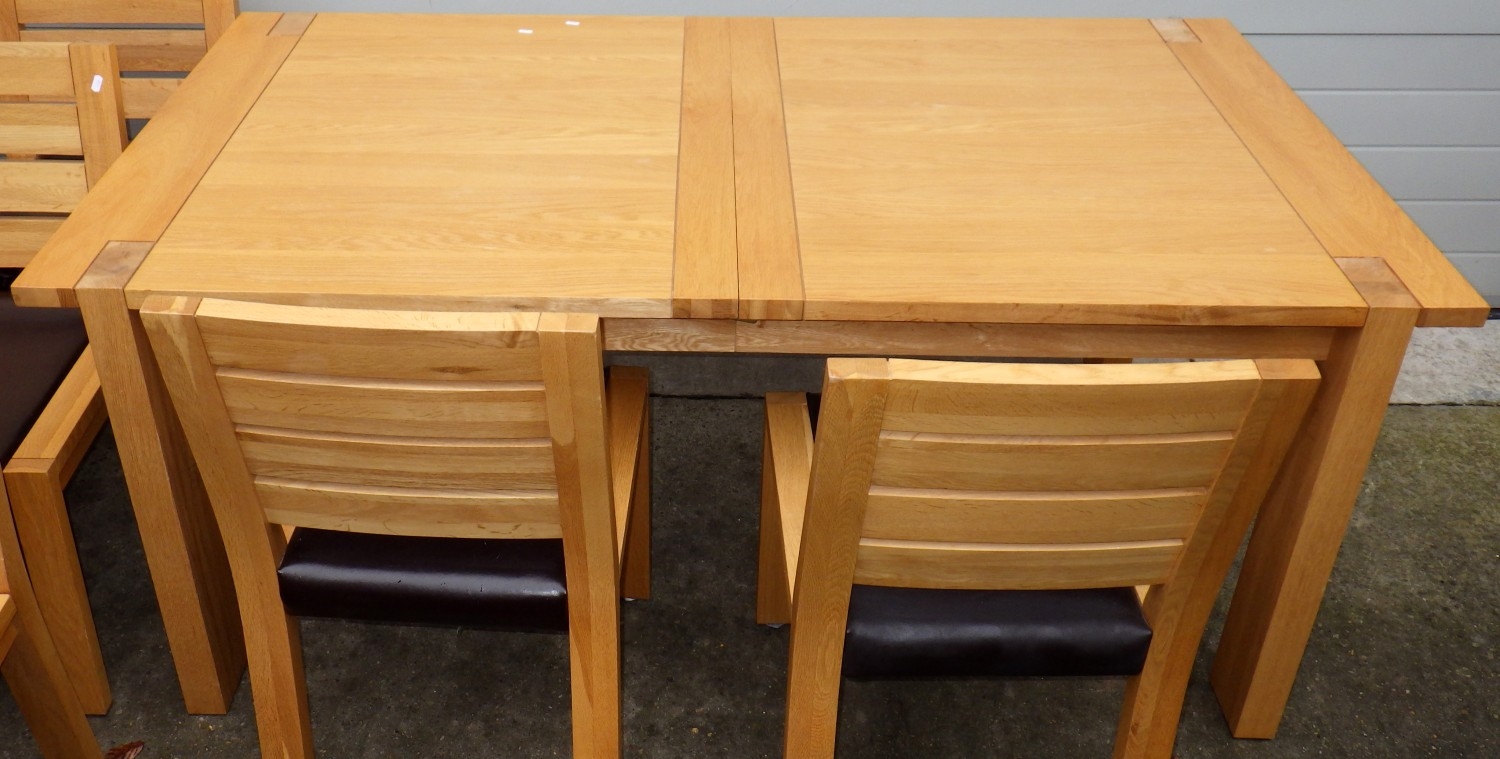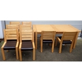 A modern light oak extending dining table with one leaf, 180cm closed x 100cm together with eight chairs, some wear to seats (9)