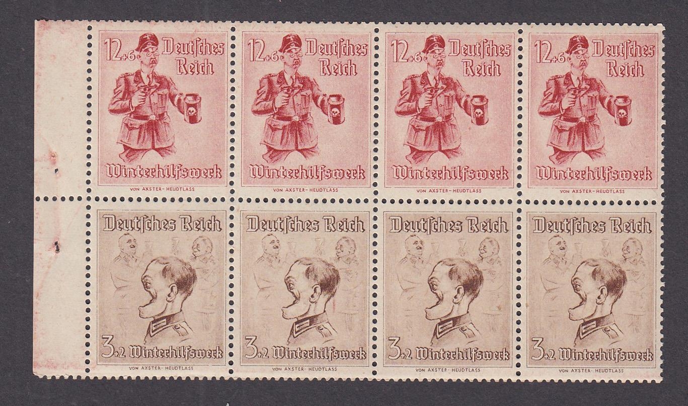 1943 WWII Propaganda Forgeries Mi 30/31, depicting Himmler & Goering in part booklet pane of x8 (x4 pairs), mint u/m, Catalogued as pairs at €1200 each, a seldom offered and scarce multiple.