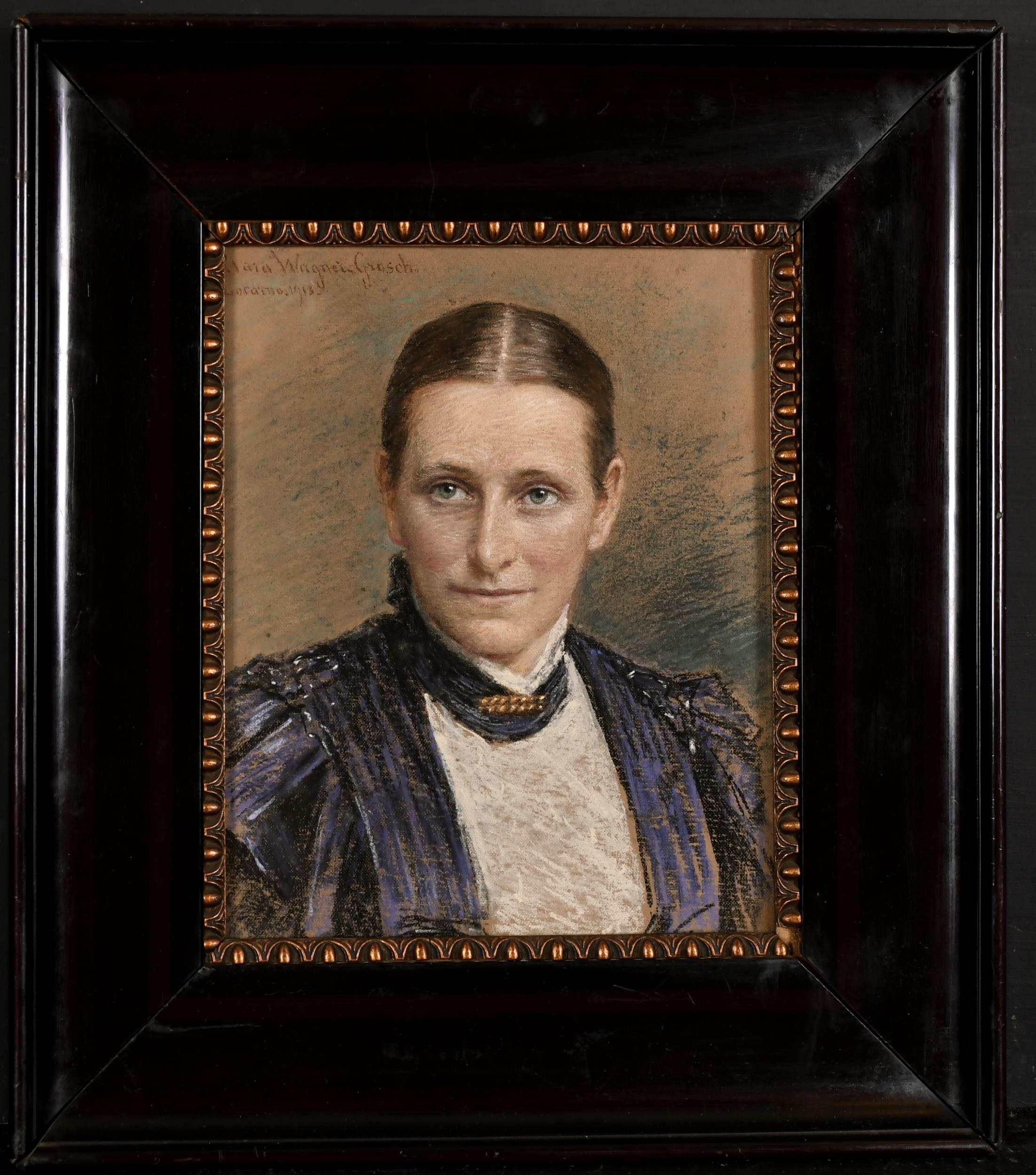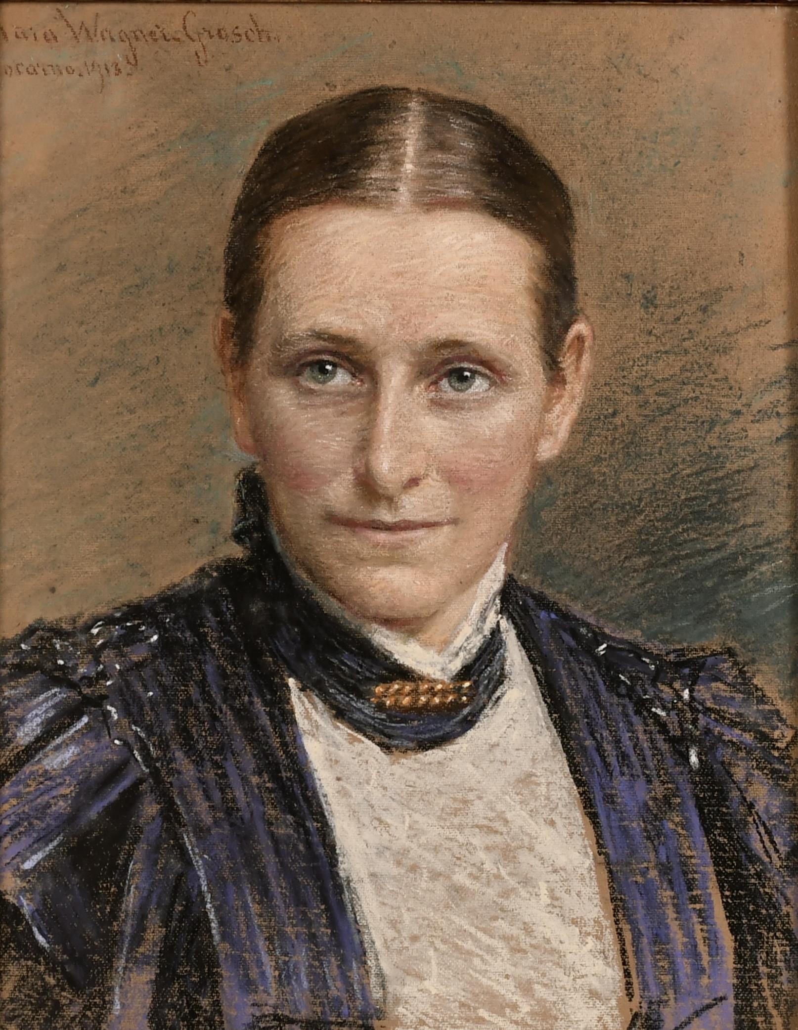 Clara Wagner-Grosch (1863-1932) German. Bust Portrait of a Lady, possibly mother of Alice Vidmer, Pastel, Signed, Inscribed and Dated 1913, and bears an Inscription verso, 10.75" x 8.5" (27.3 x 21.6cm)