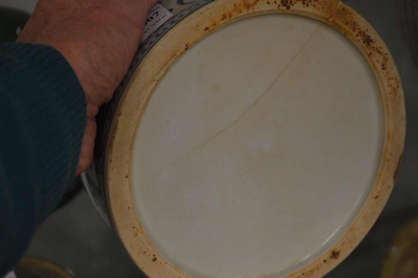 A Chinese blue and white decorated circular dish.