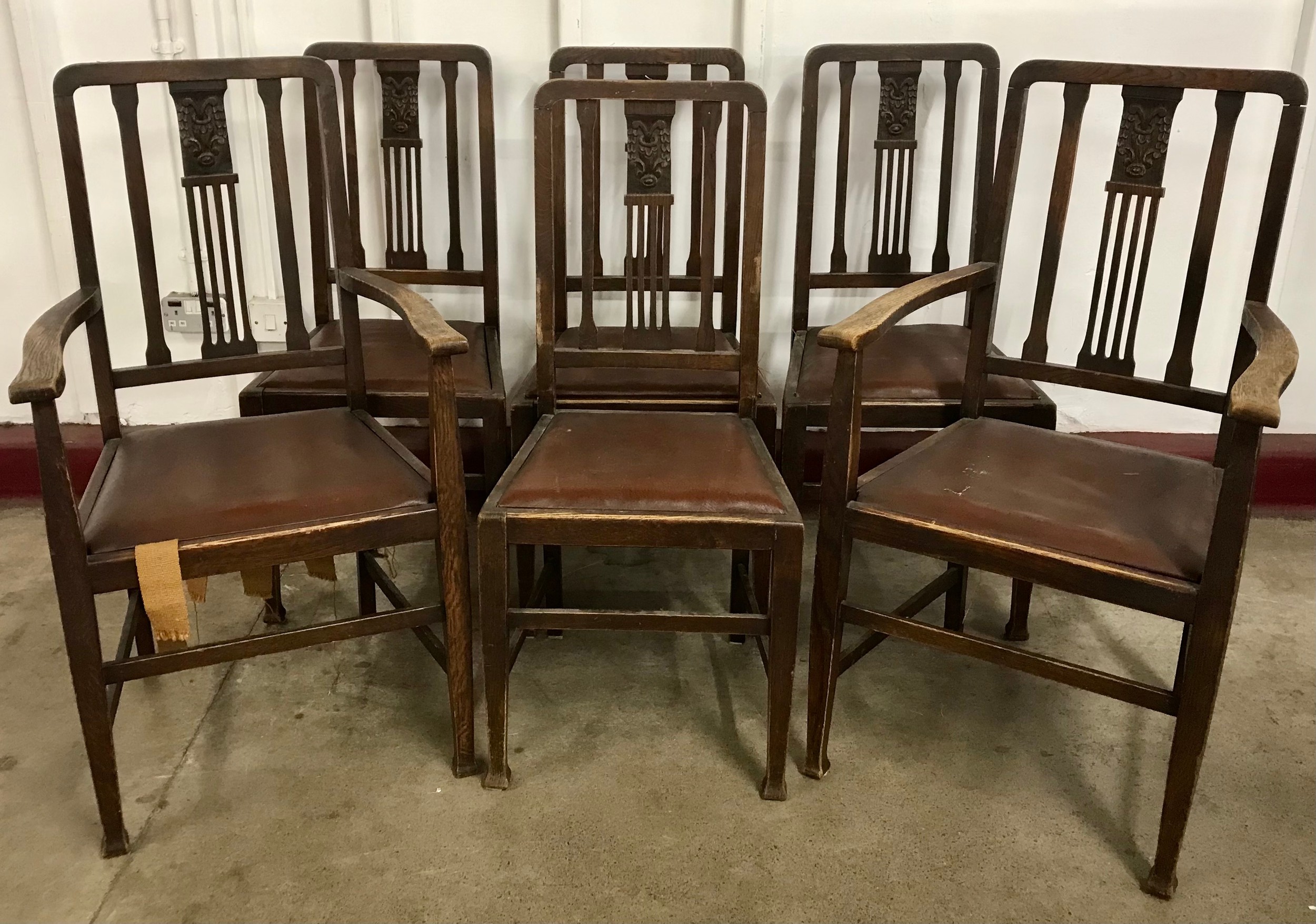 A set of six early 20th Century oak dining chairs