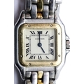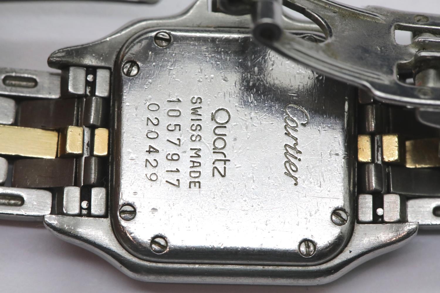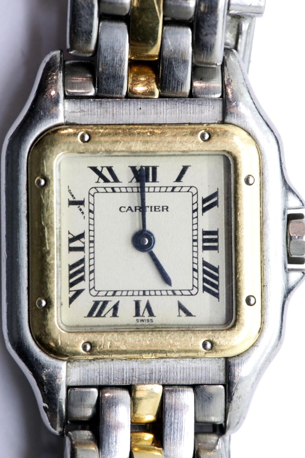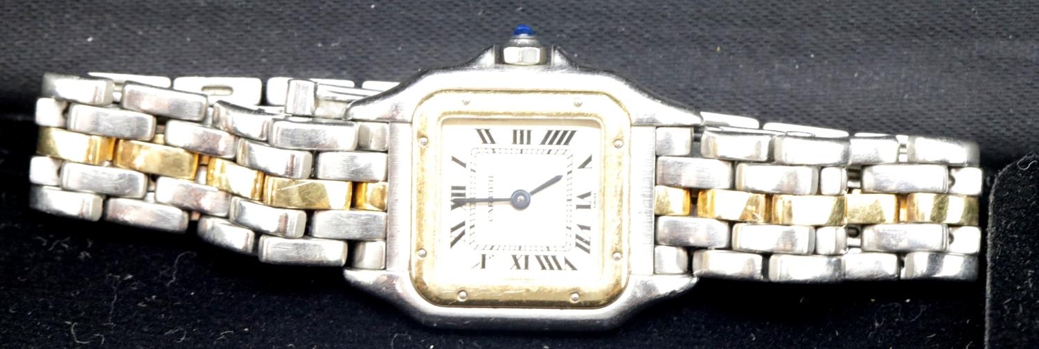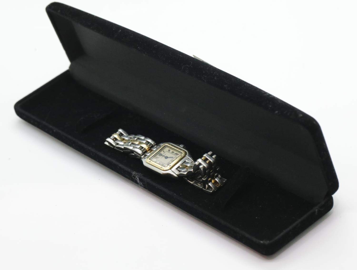 Cartier Panthere ladies wristwatch on steel and gold strap. P&P Group 1 (£14+VAT for the first lot and £1+VAT for subsequent lots)