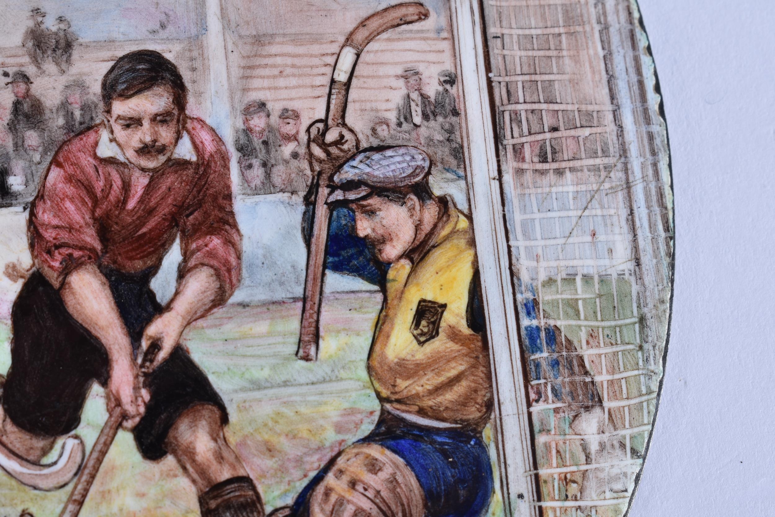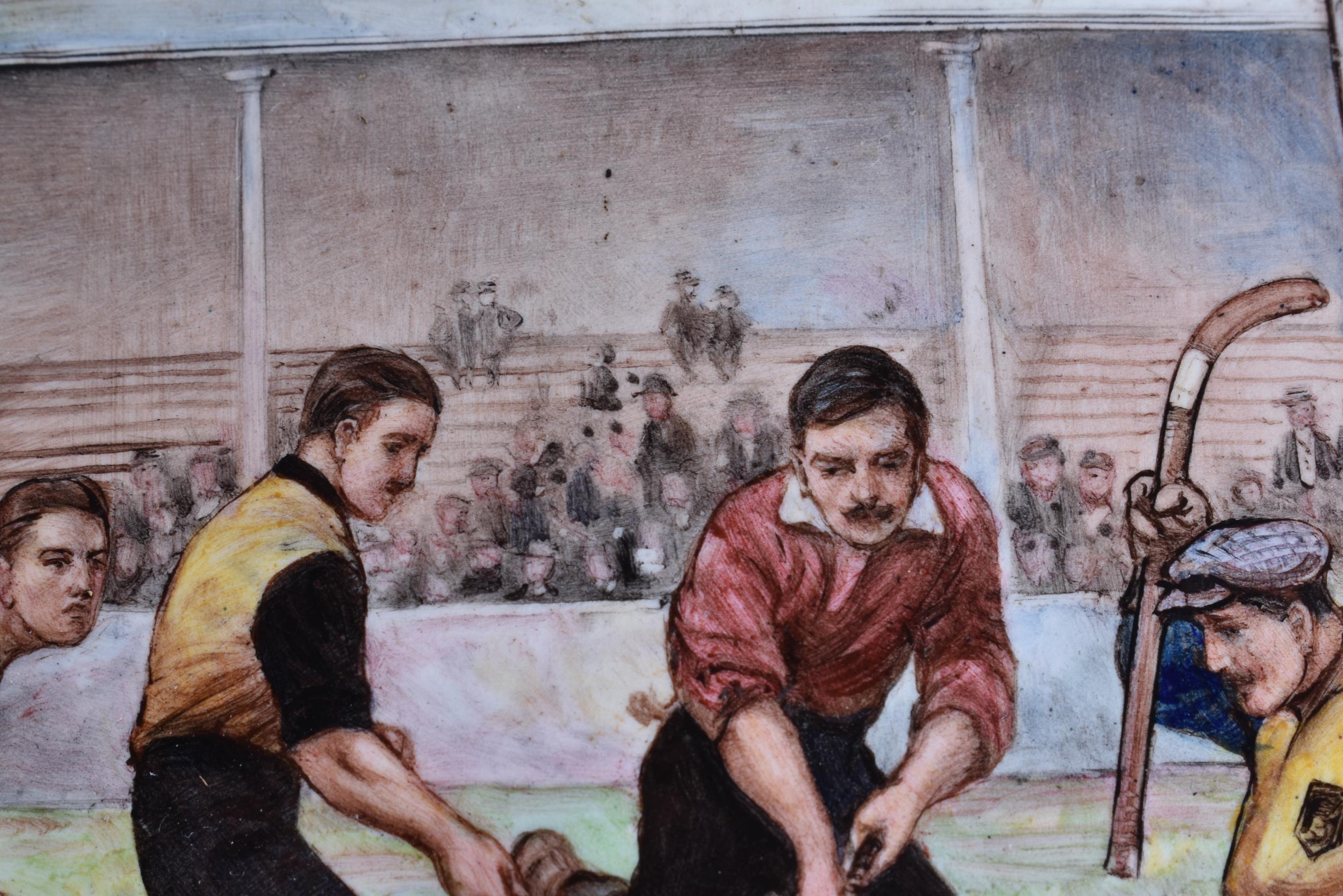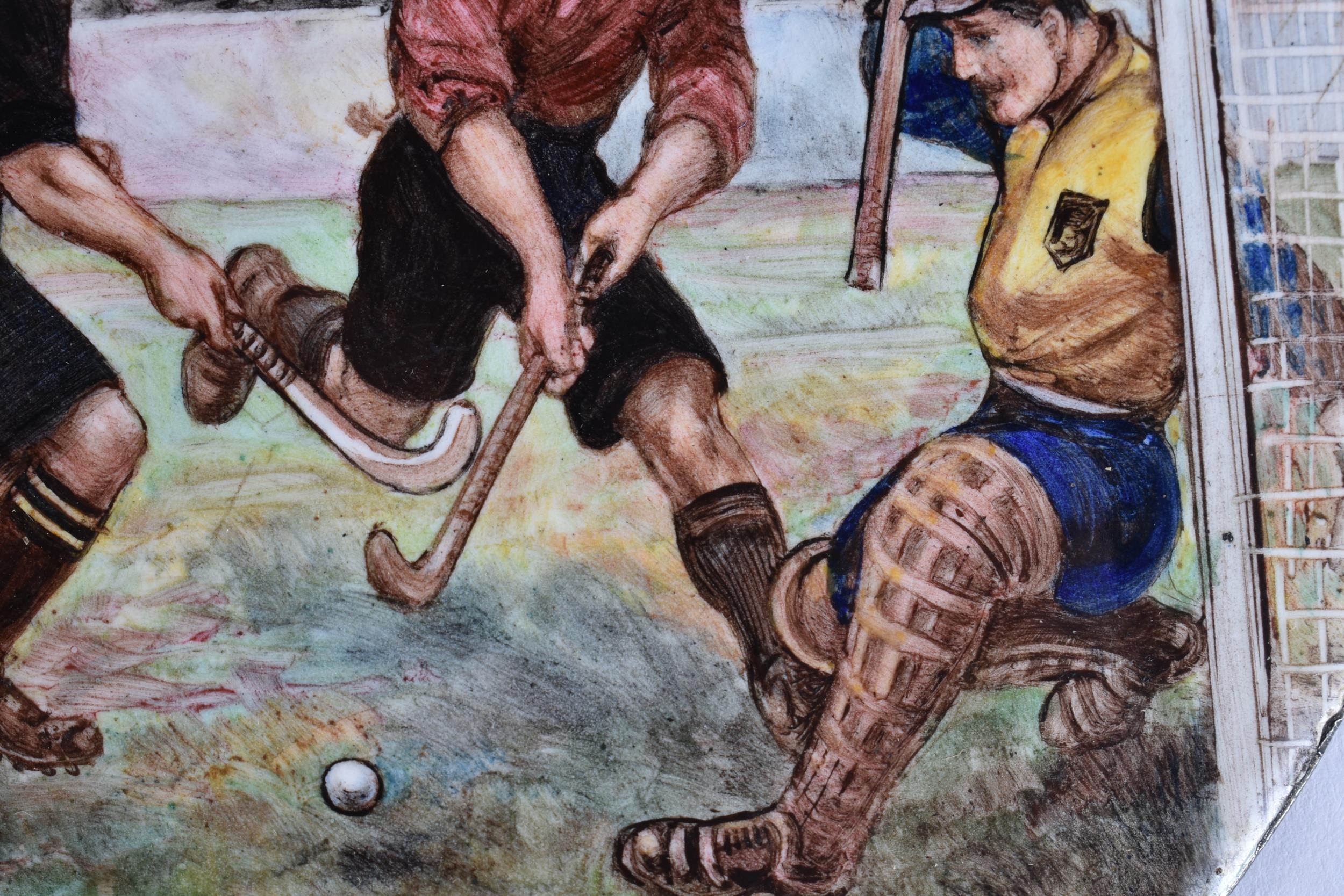 A RARE ANTIQUE ENAMEL HOCKEY PLAQUE. 14 cm x 10 cm.
