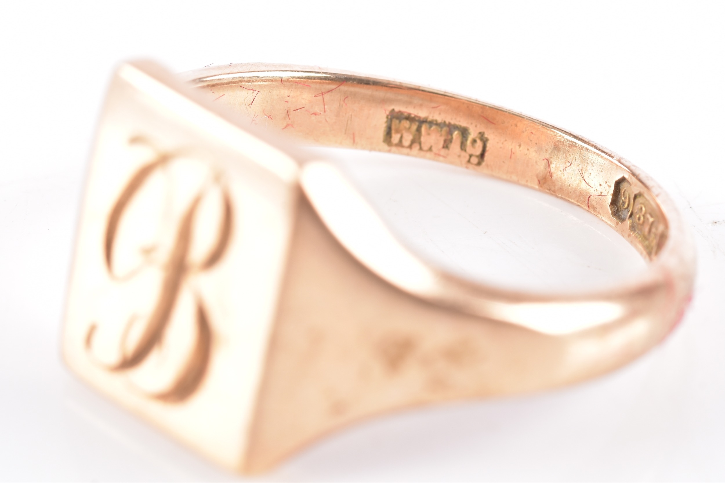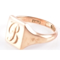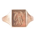 A 9ct rose gold signet ring, the rectangular plaque engraved with the initial 'B', hallmarked for London 1954 by W Wilkinson Ltd, size P 1/2.