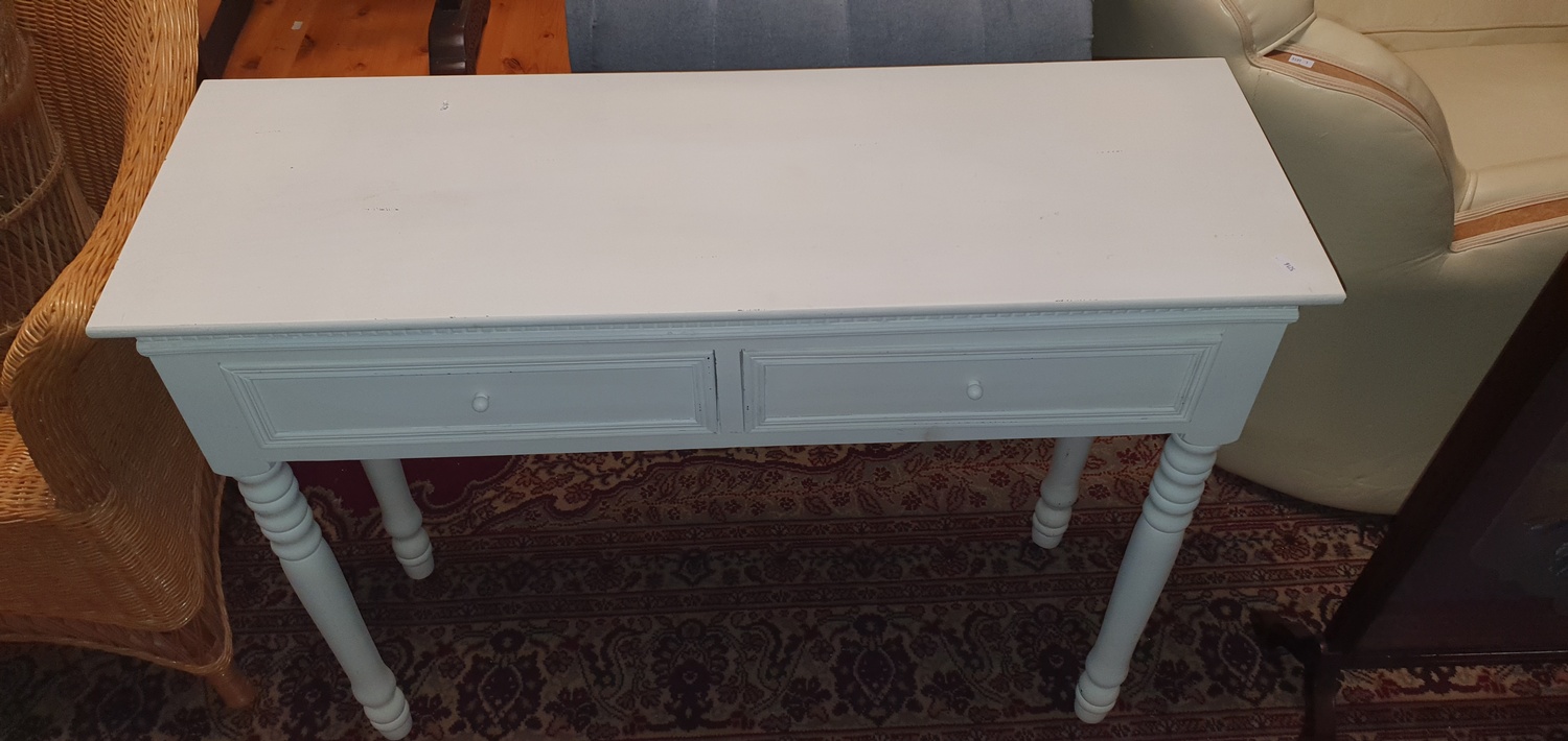 A white painted hall table, with two frieze drawers and a folding butlers tray -