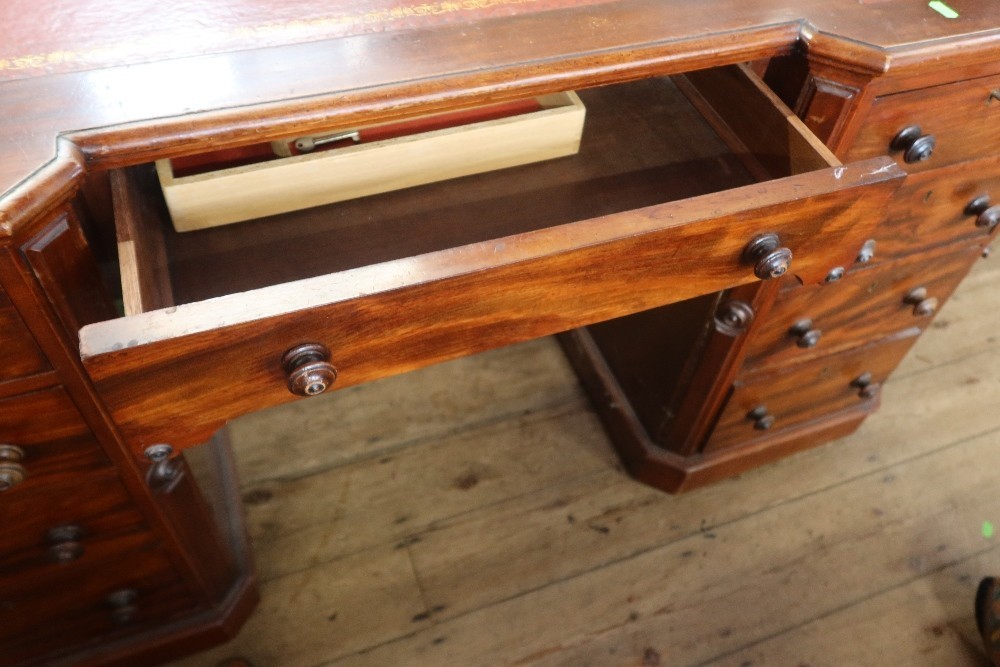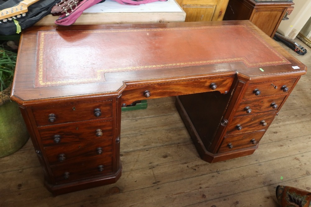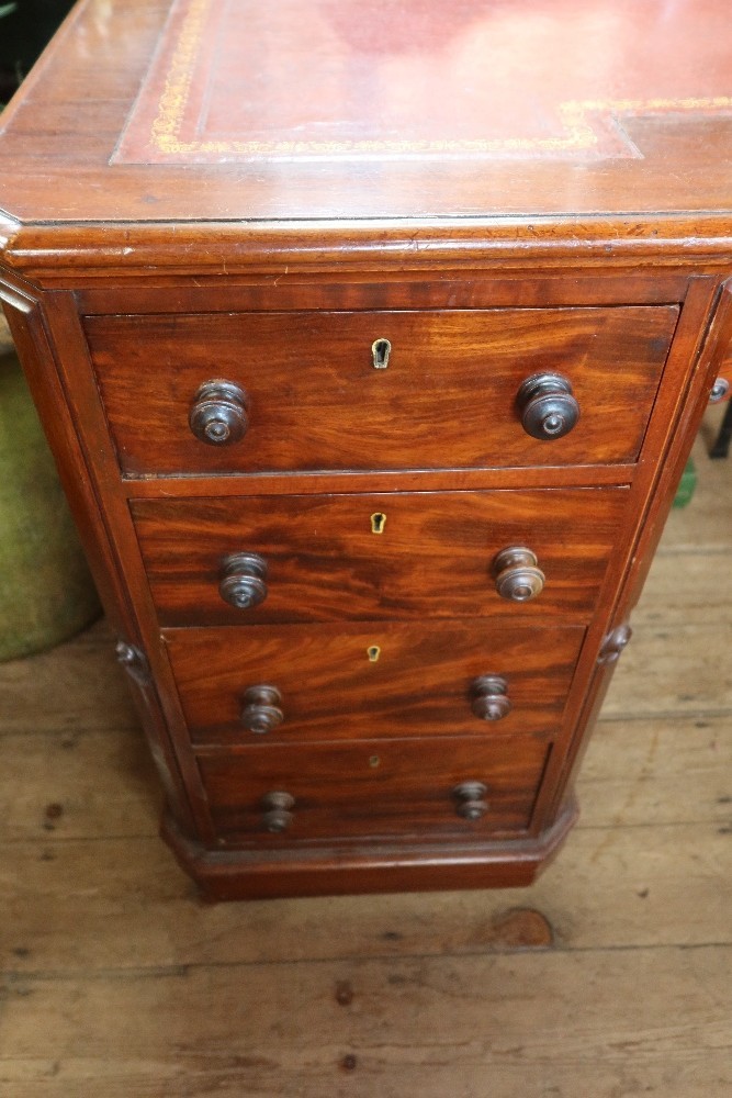 A mahogany twin pedestal desk, with leather inset, width 55i...
