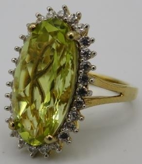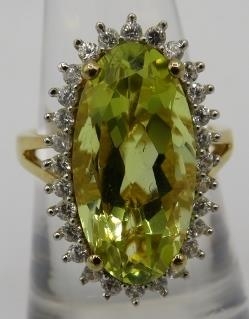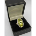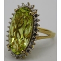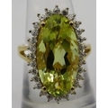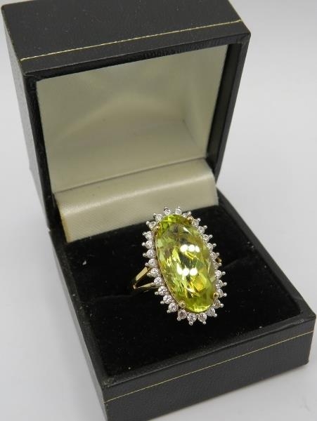 A large Brazilian quartz gemstone statement ring, 25mm x 15mm elongated oval setting, size O/P, 14ct yellow gold/925, boxed.