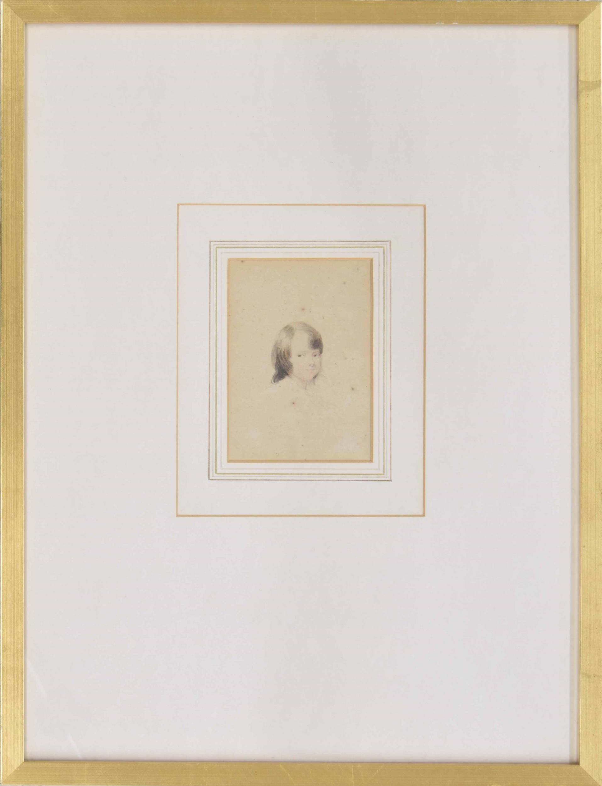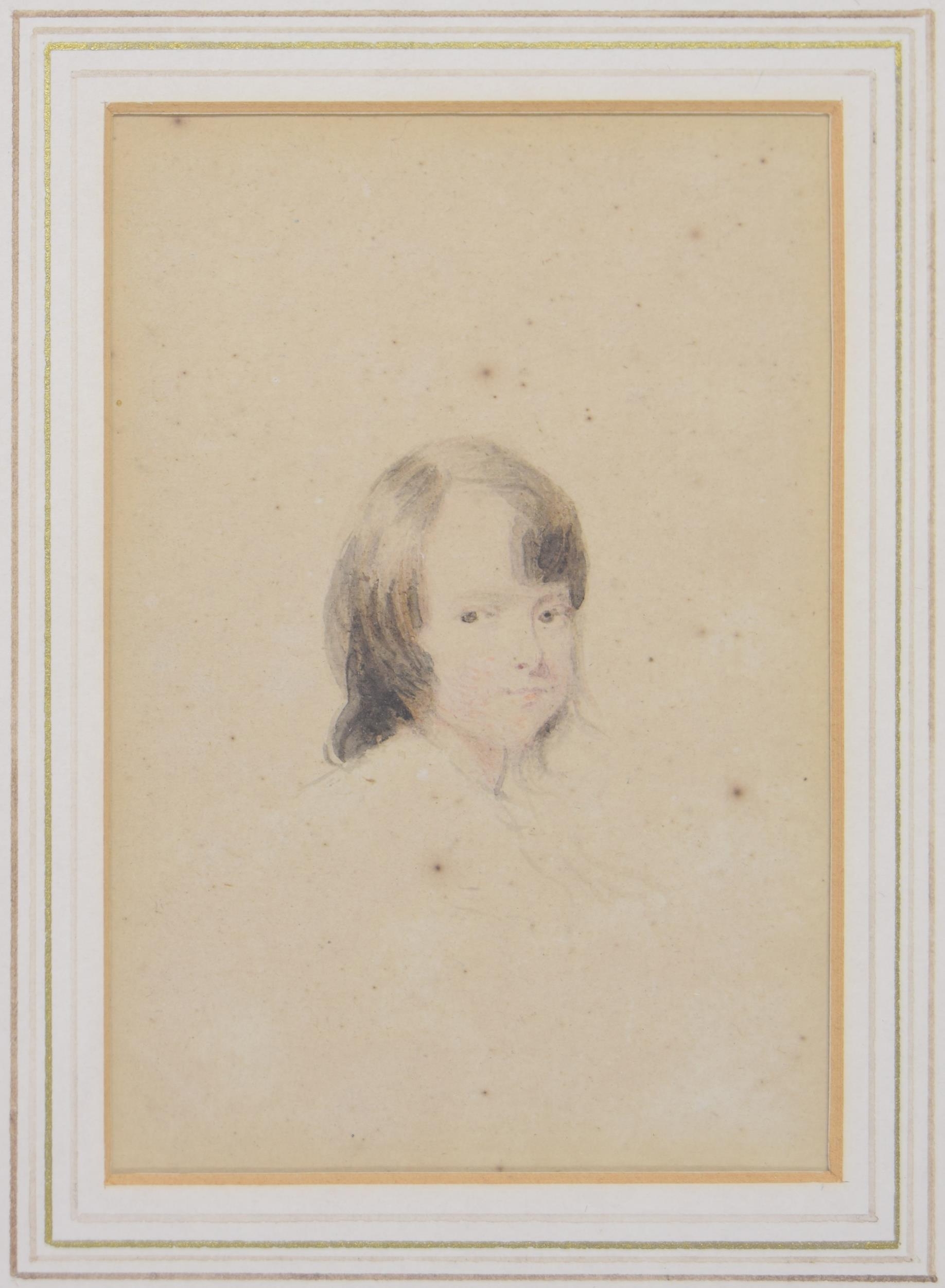 Ozias Humphry RA., (1742-1810) - Portrait of a young boy, head and shoulders, said to be Mastner Milner, inscribed on an old label verso together with a further inscription by a later hand a preparatory study, pencil and watercolour, 4.25" x 3"