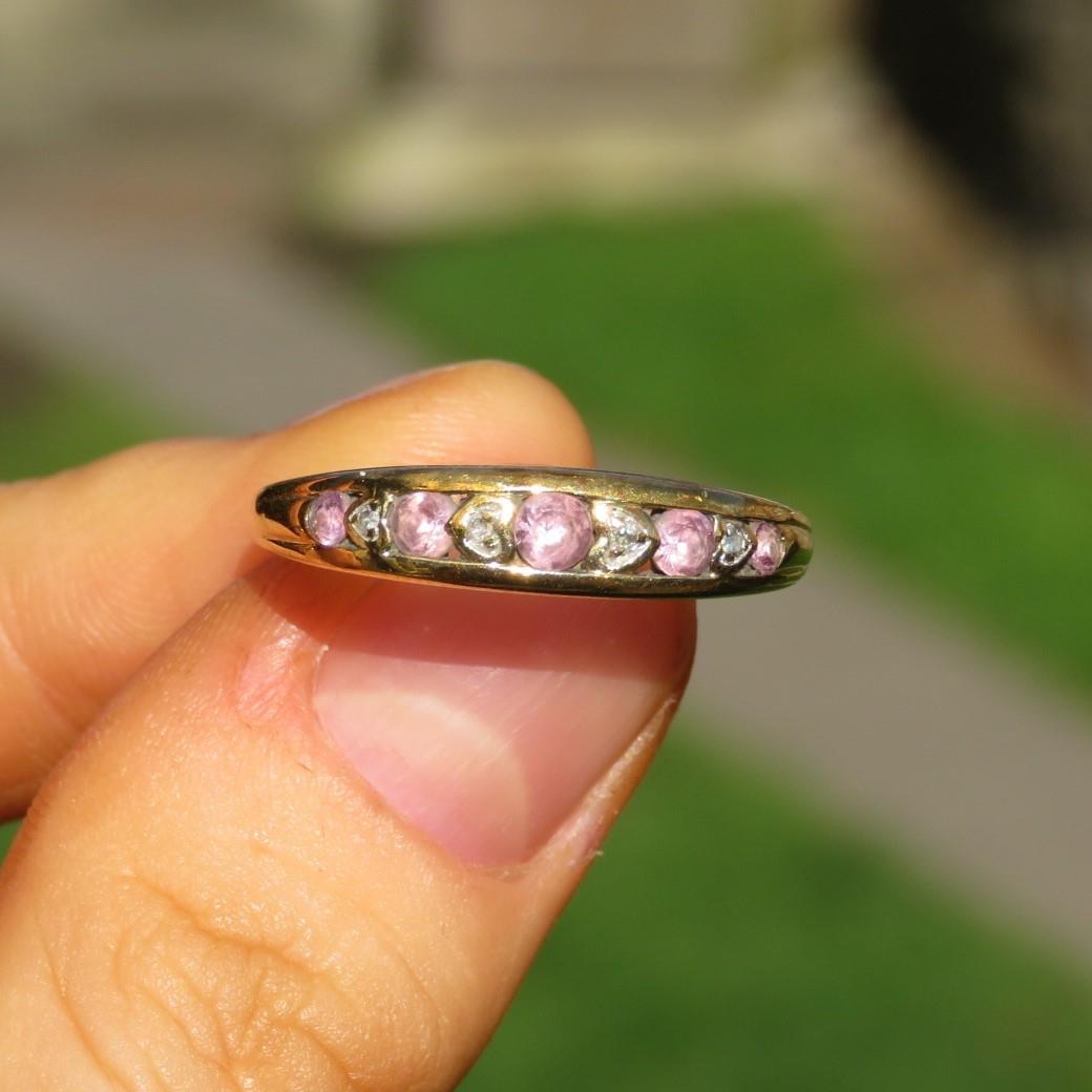 9ct Gold Vintage Pink Sapphire And Diamond Set Half Hoop Eternity Ring (2.1g) Size R 1/2
