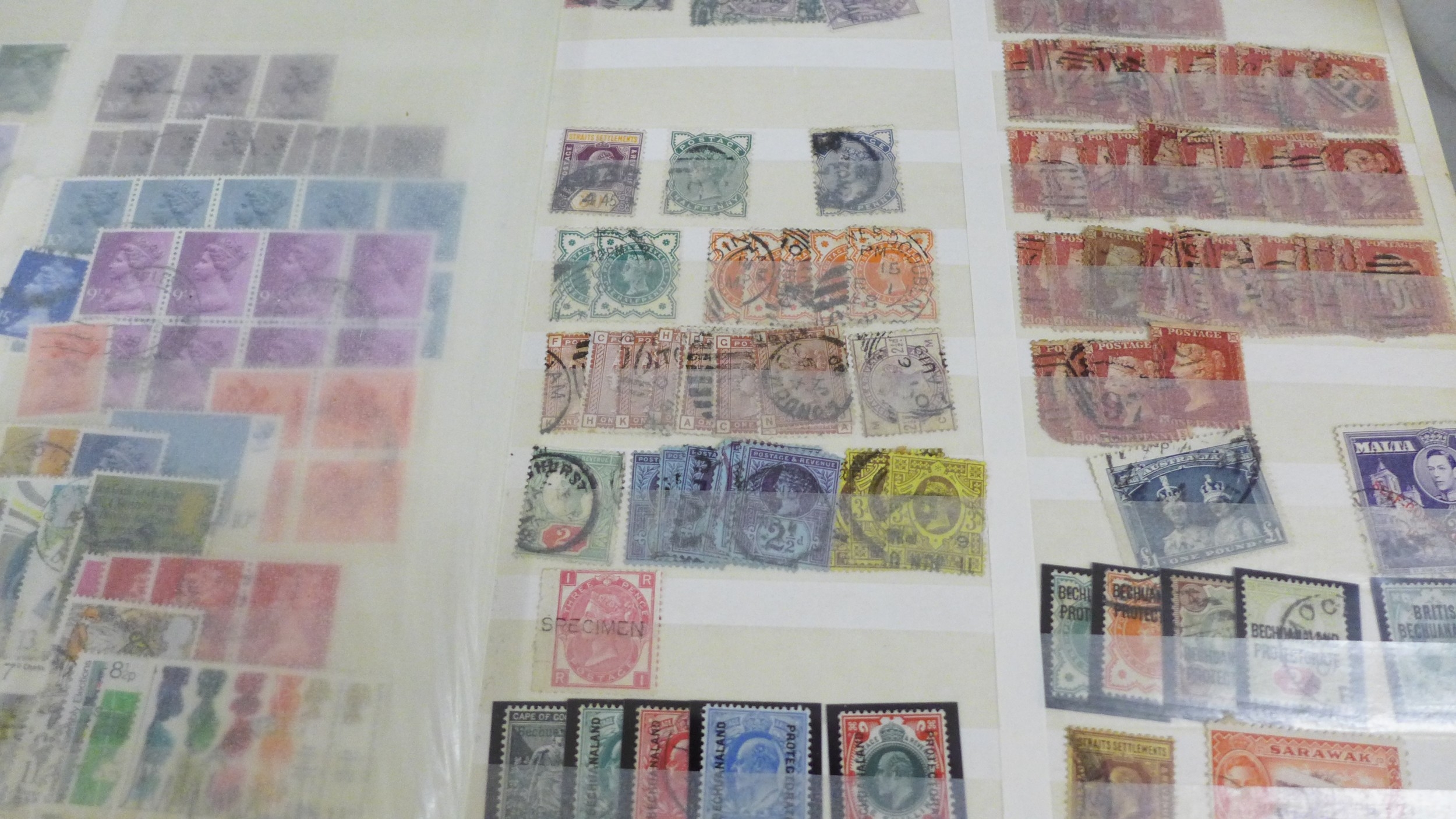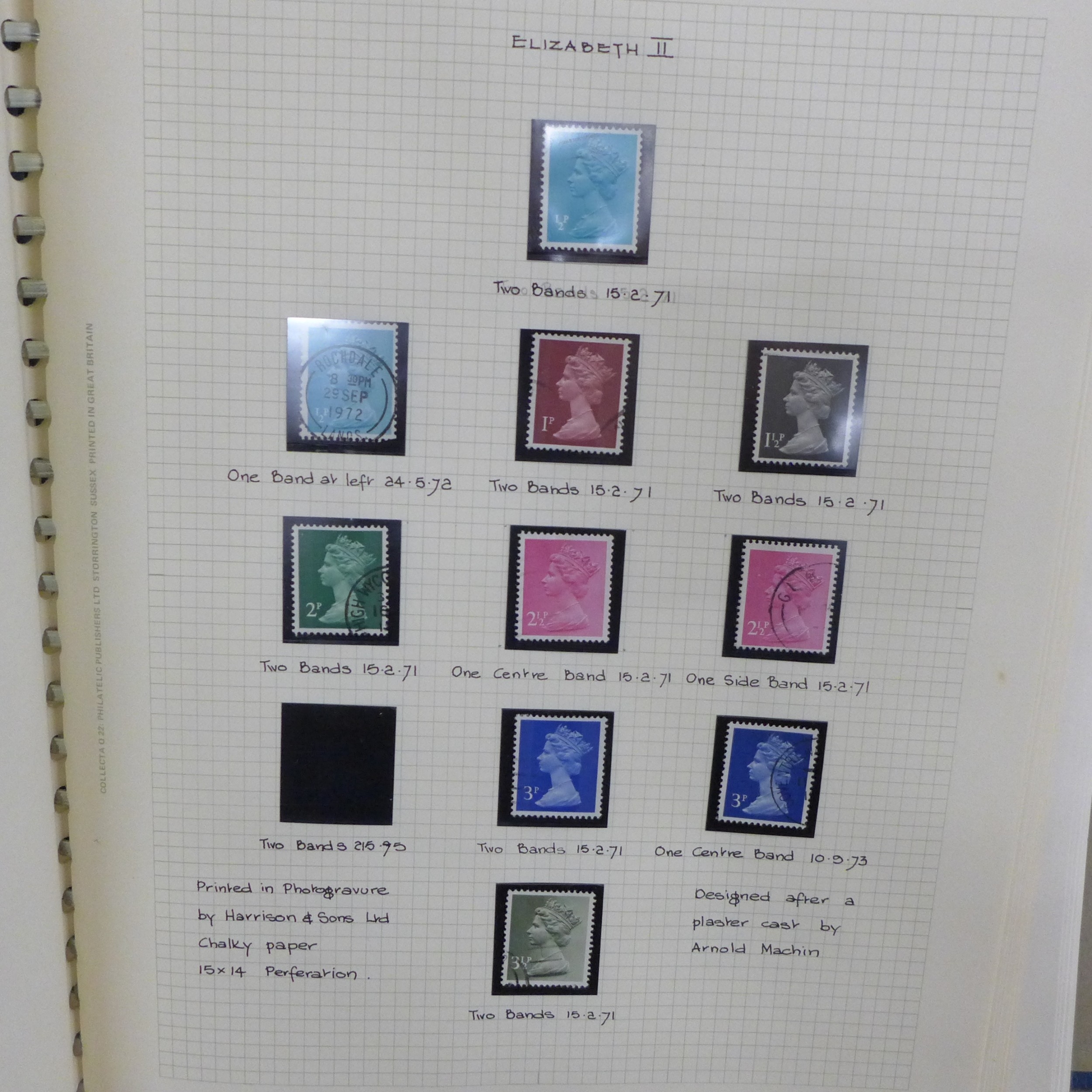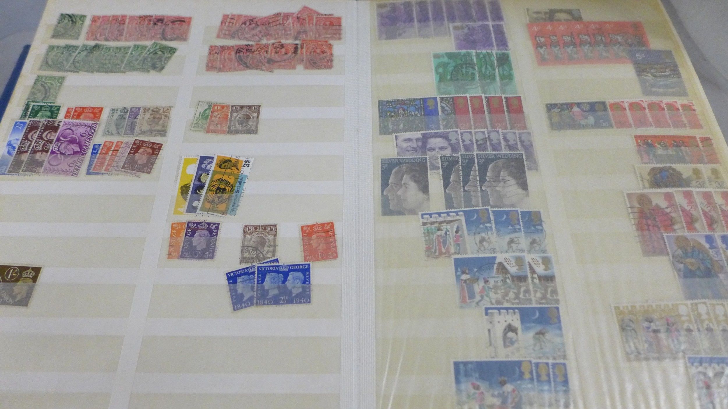 A collection of stamps in three albums, some British stamps dating back to 1930s onwards, British stamps in stock album and foreign including some Russian & Czech stamps