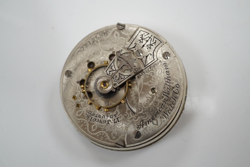A gold plated Waltham half hunter keyless pocket watch, together with a gold plated hunter pocket watch. the movement and dial bearing the name 'Rolex' and a Waltham pocket watch movement.
