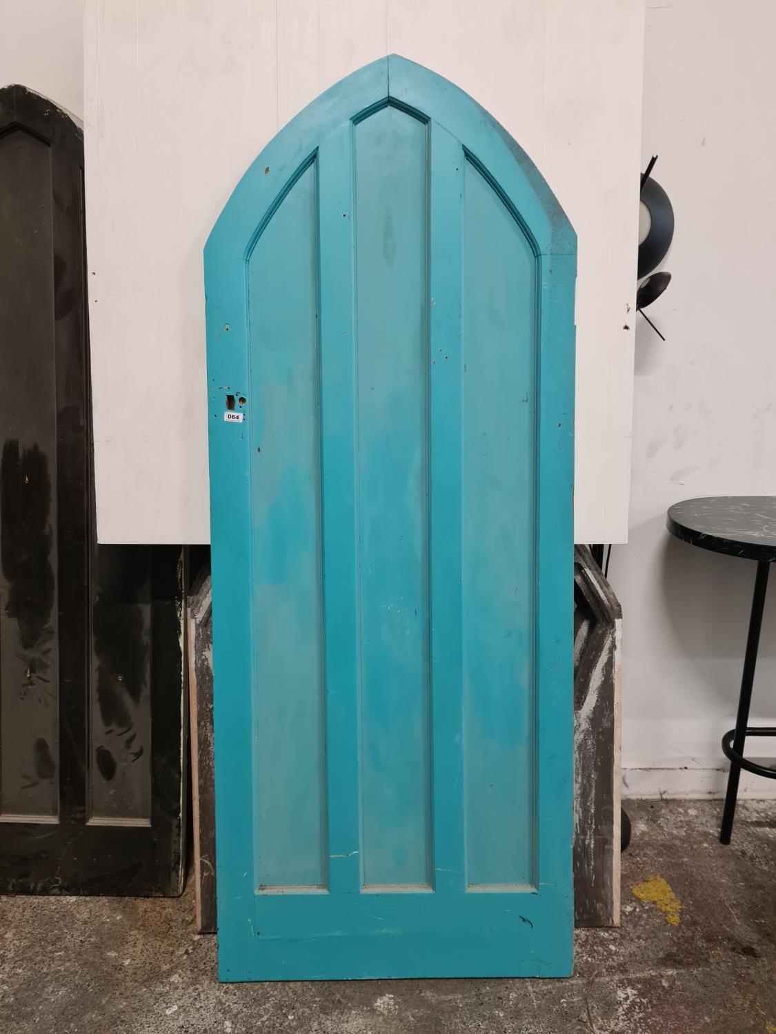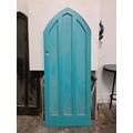 Arched Solid antigue 18th century door from Draculas tomb in The Vaults in Diublin, Solid and heavy with Hardware. 204cm x 80cm Painted turquoise on one side.