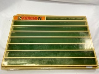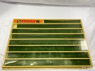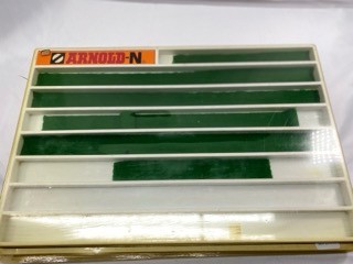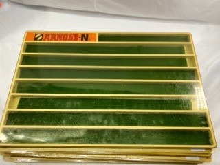 Six Arnold-N Dealer Display Trays Plastic, Suitable for storage of N Gauge Locomotives and Rolling Stock, Trays shows faults, Transparent Lids Yellowed from Age (6) Poor 2600g
