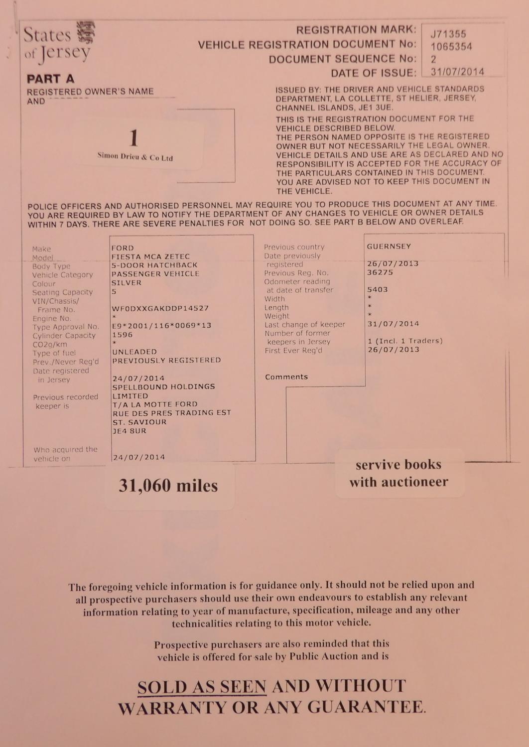 A 2013 Ford Fiesta MCA Zetec 1.6 five door hatchback J71355 (petrol/automatic), odometer reading 31,060 miles - Executor's sale