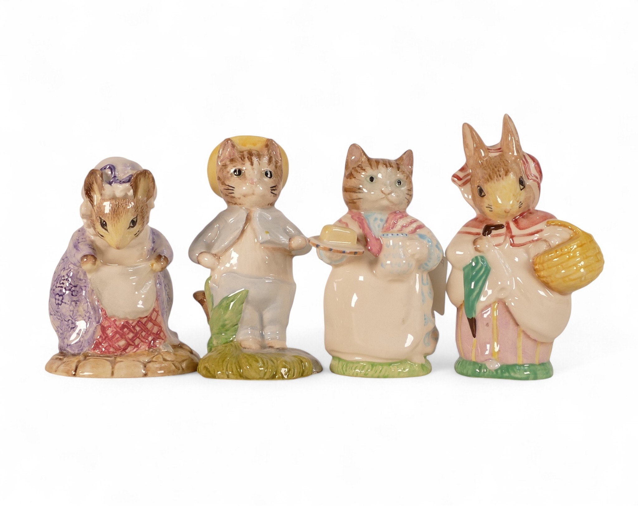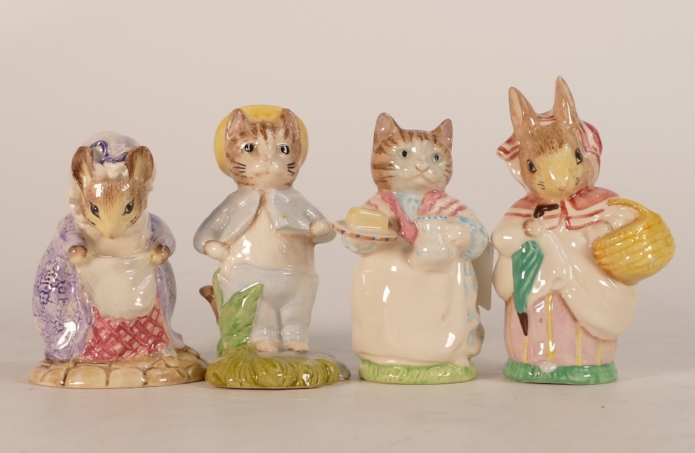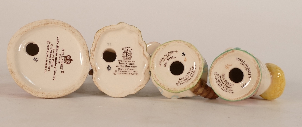 Beatrix Potter Character figures Royal Albert to include:- Mrs Rabbit, Lady Mouse made a Curtsy, Mrs Ribby together with Royal Doulton/John Beswick Tom Kitten in the Rockery(4)