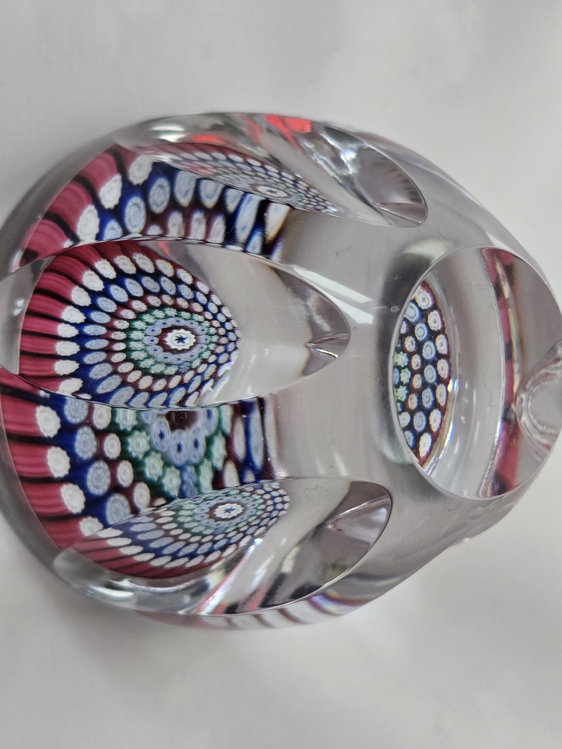Whitefriars Glass paperweight - 1978 Tall dome conical concentric weight, red etc canes, top window & finger-cut facets. Excellent condition. 78mm diam, 71mm tall