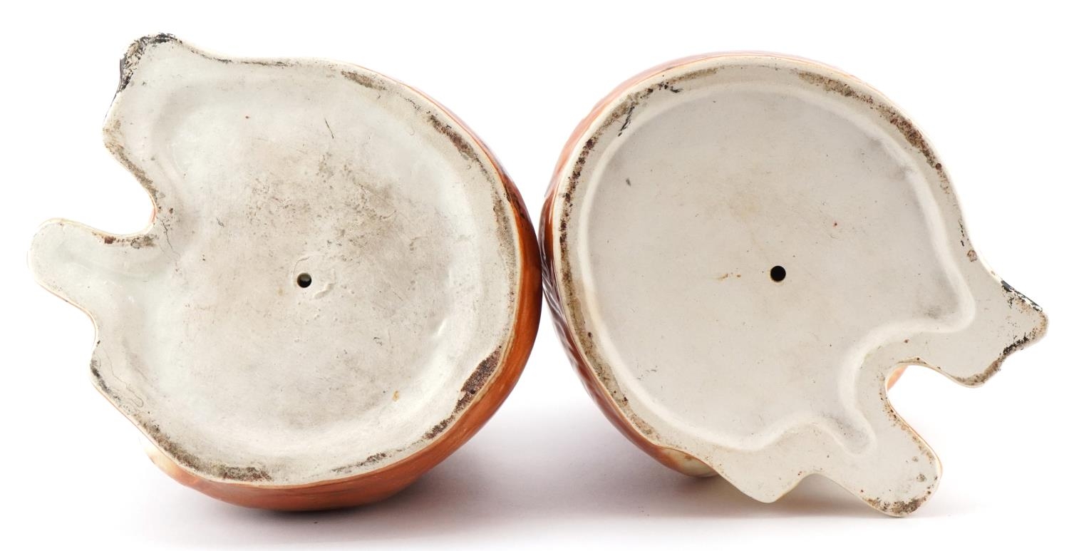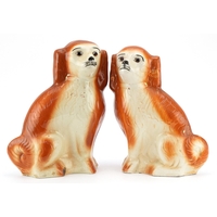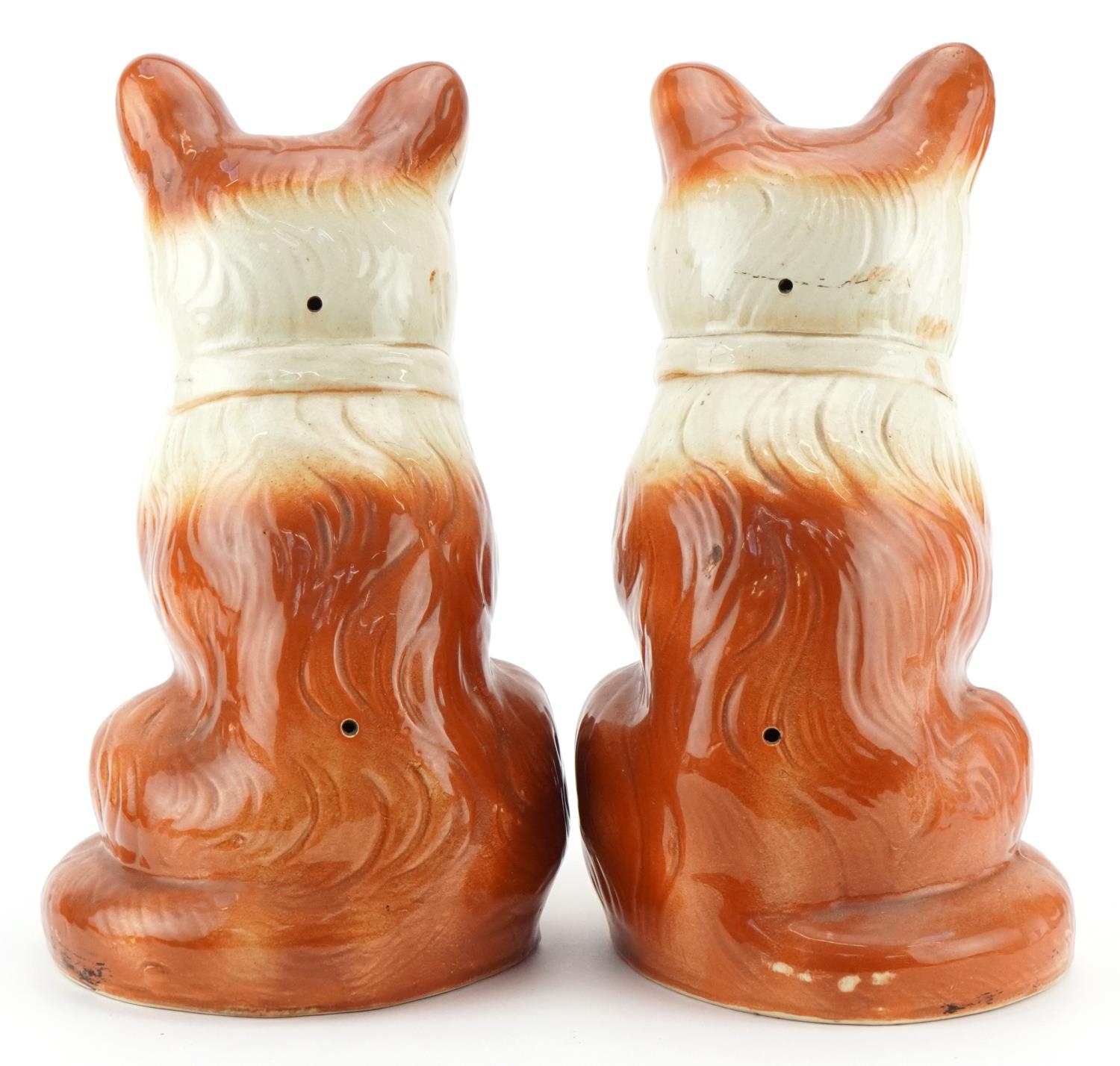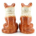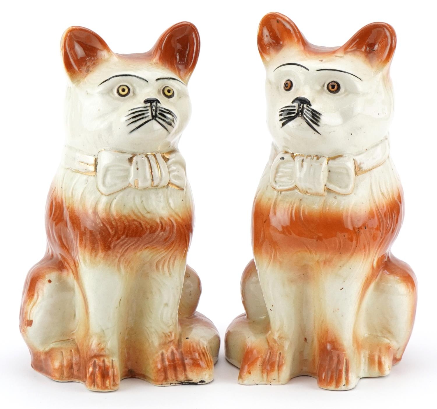 A pair of large Staffordshire pottery cats with glass eyes, 32cm high.