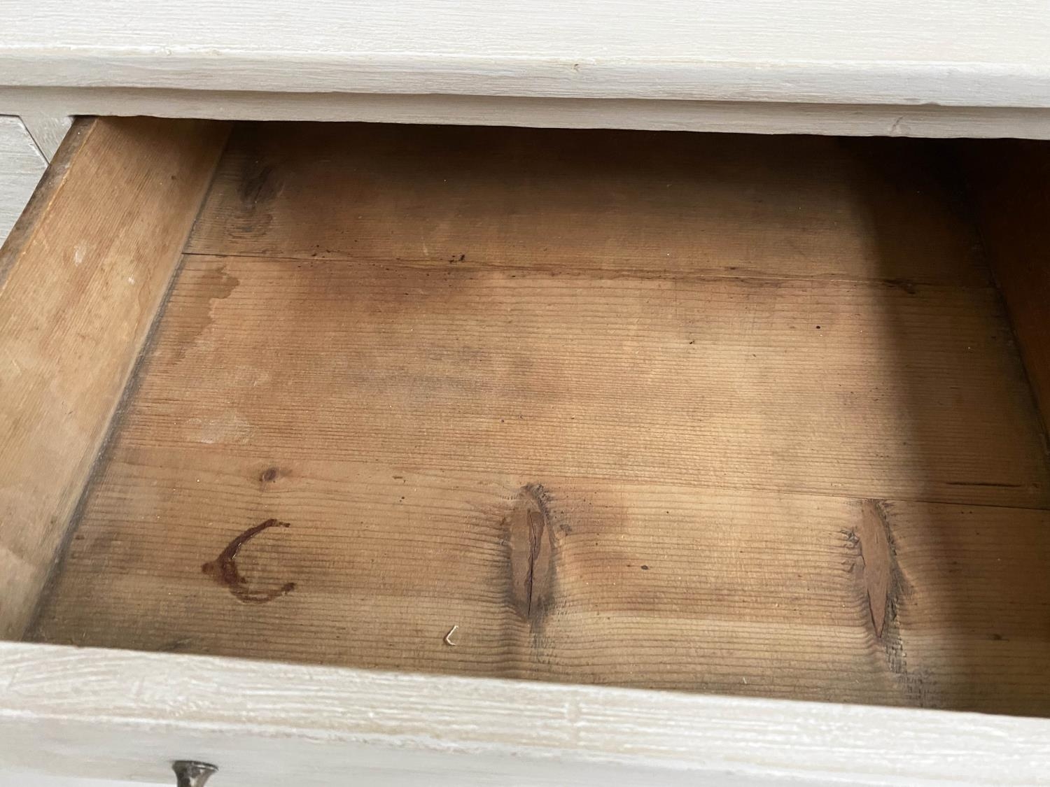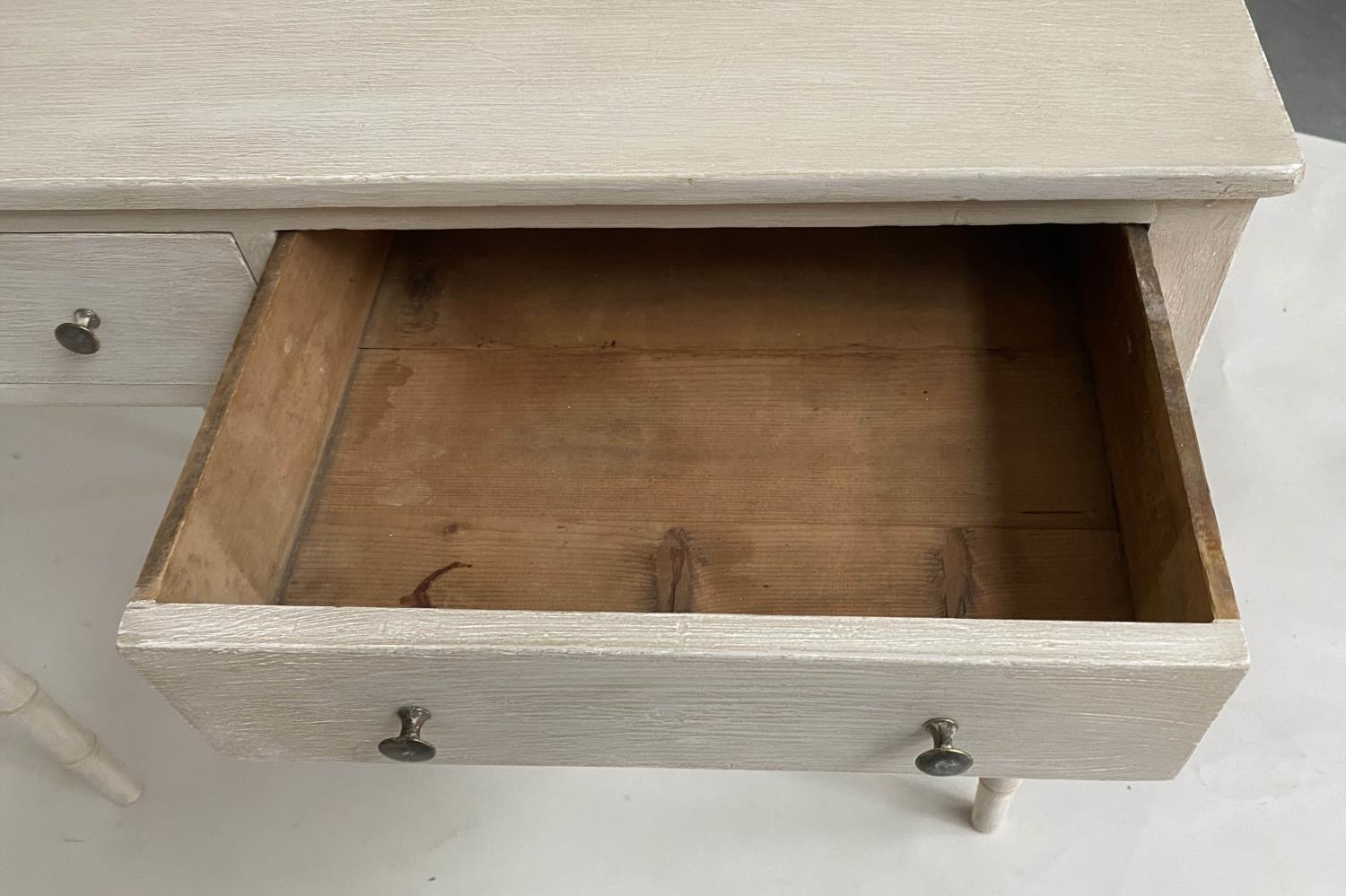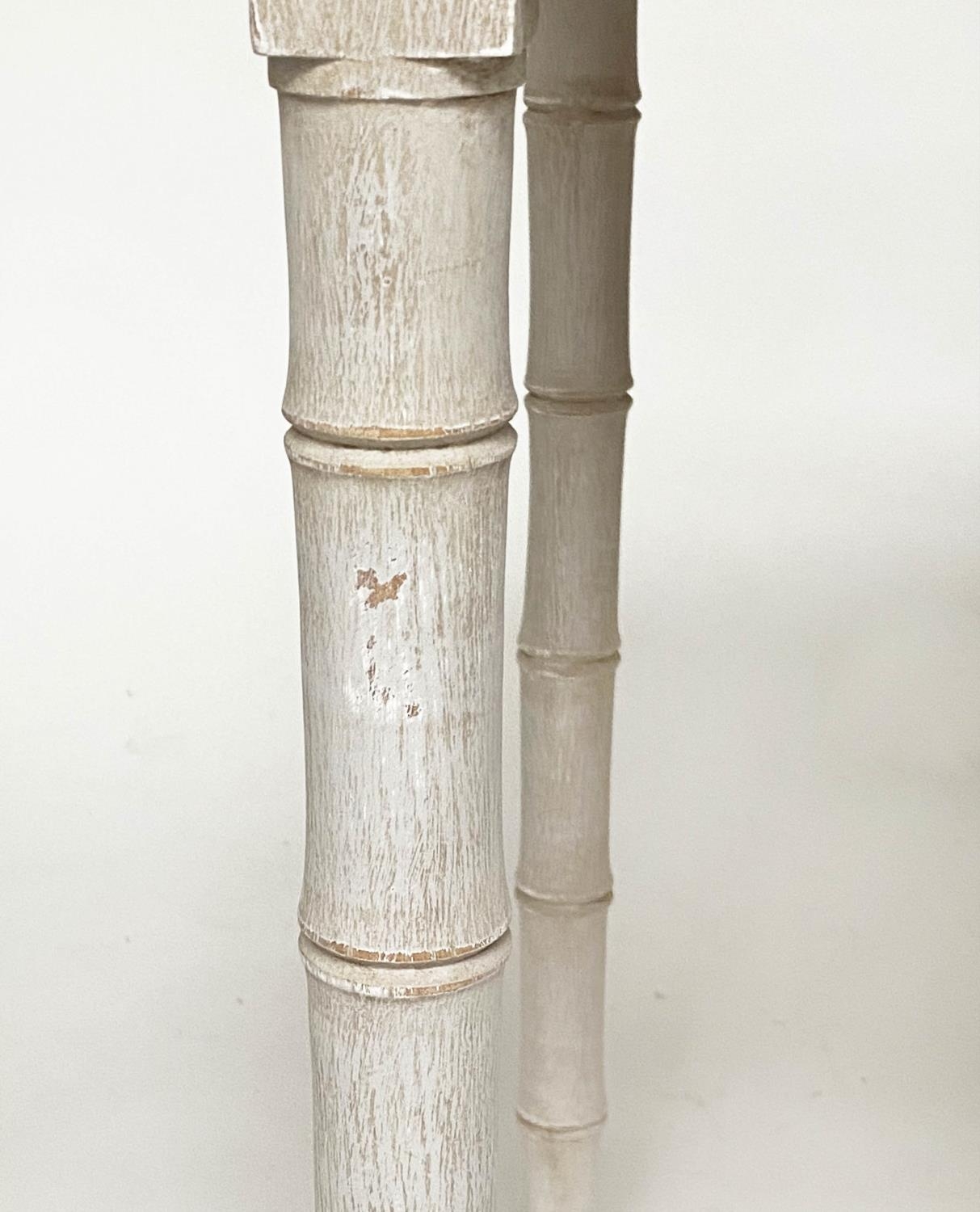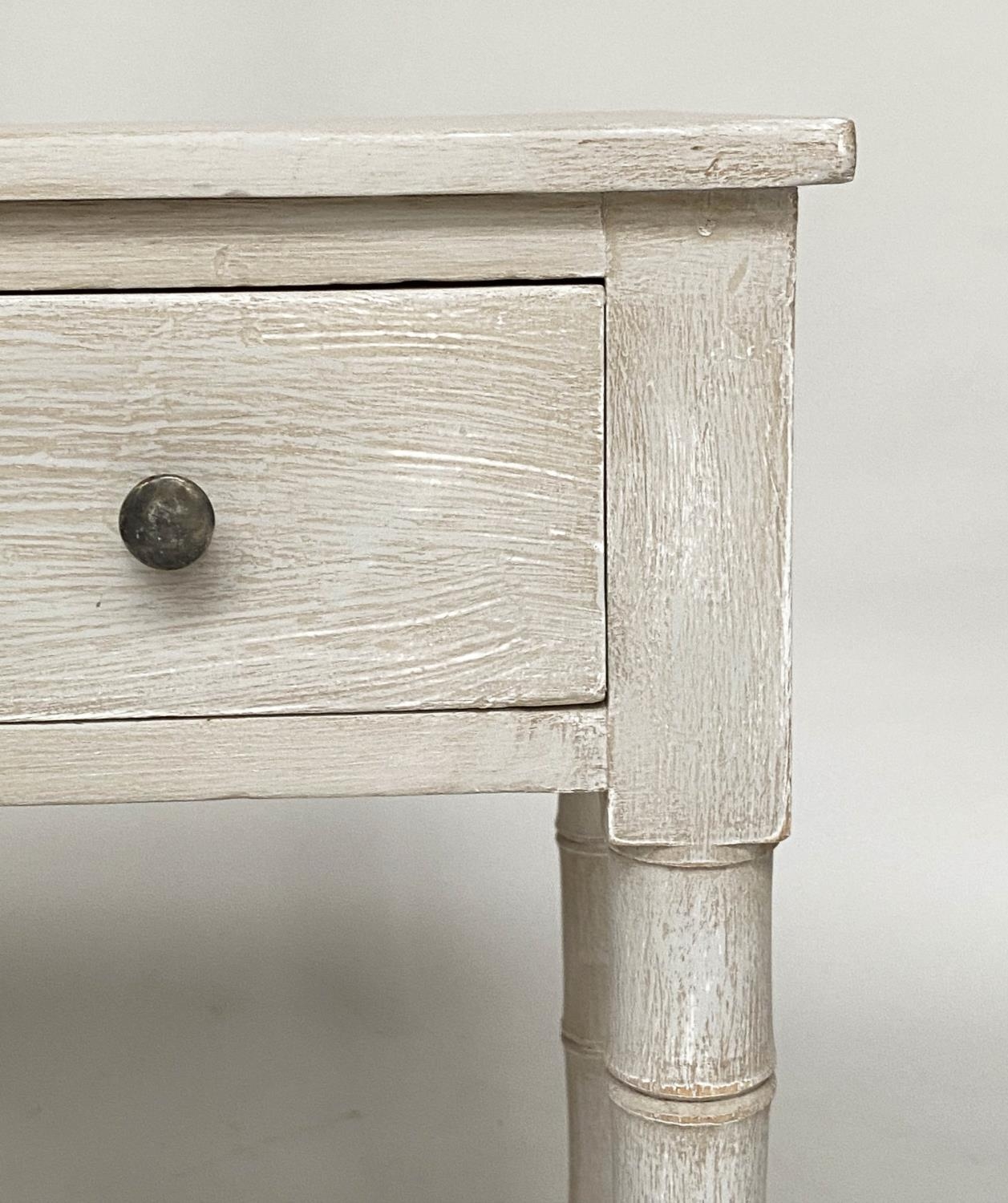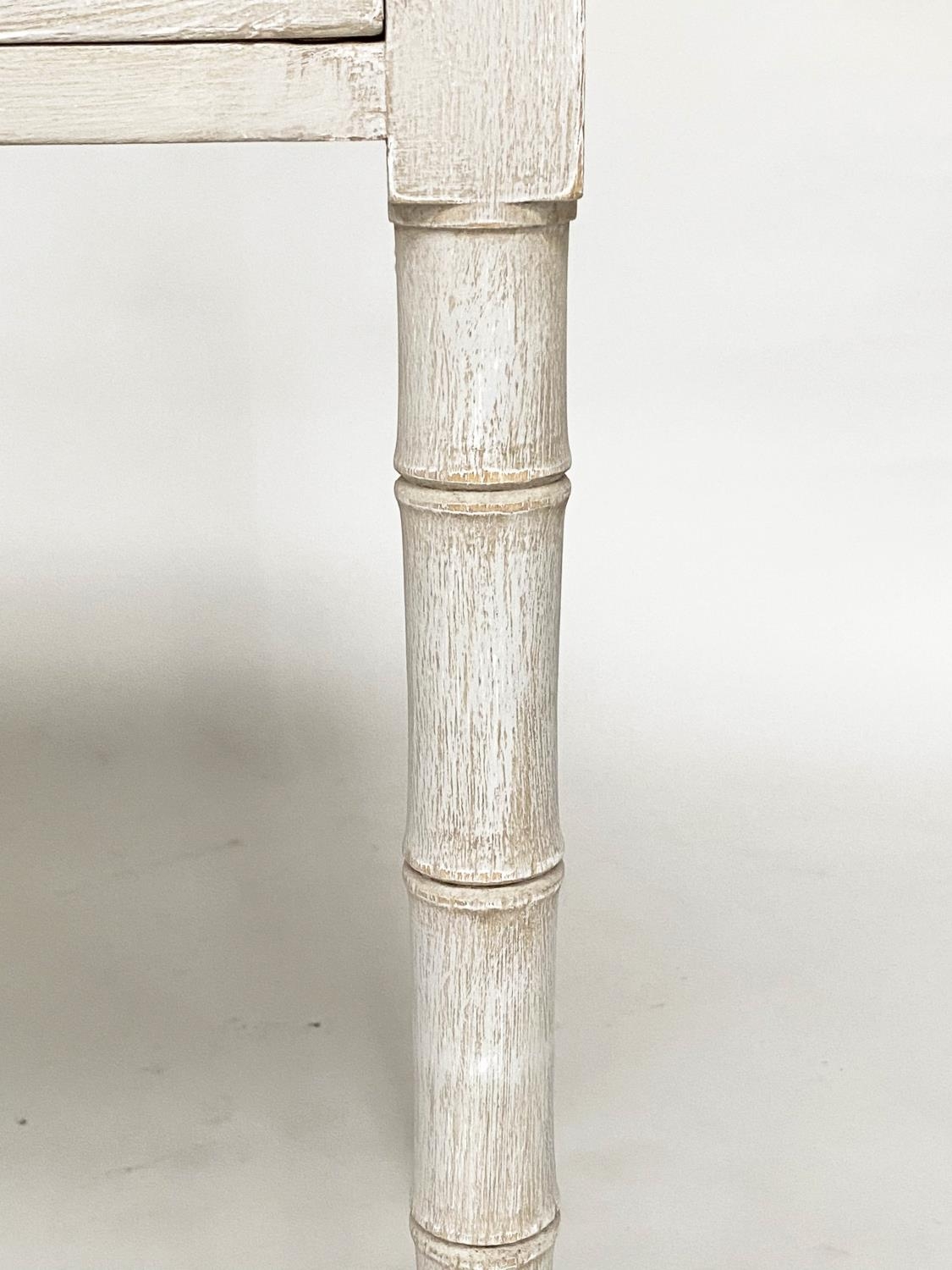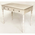 FAUX BAMBOO WRITING TABLE, early 19th century grey painted with two frieze drawers and faux bamboo carved tapering supports, 95cm W x 51cm D x 78cm H.