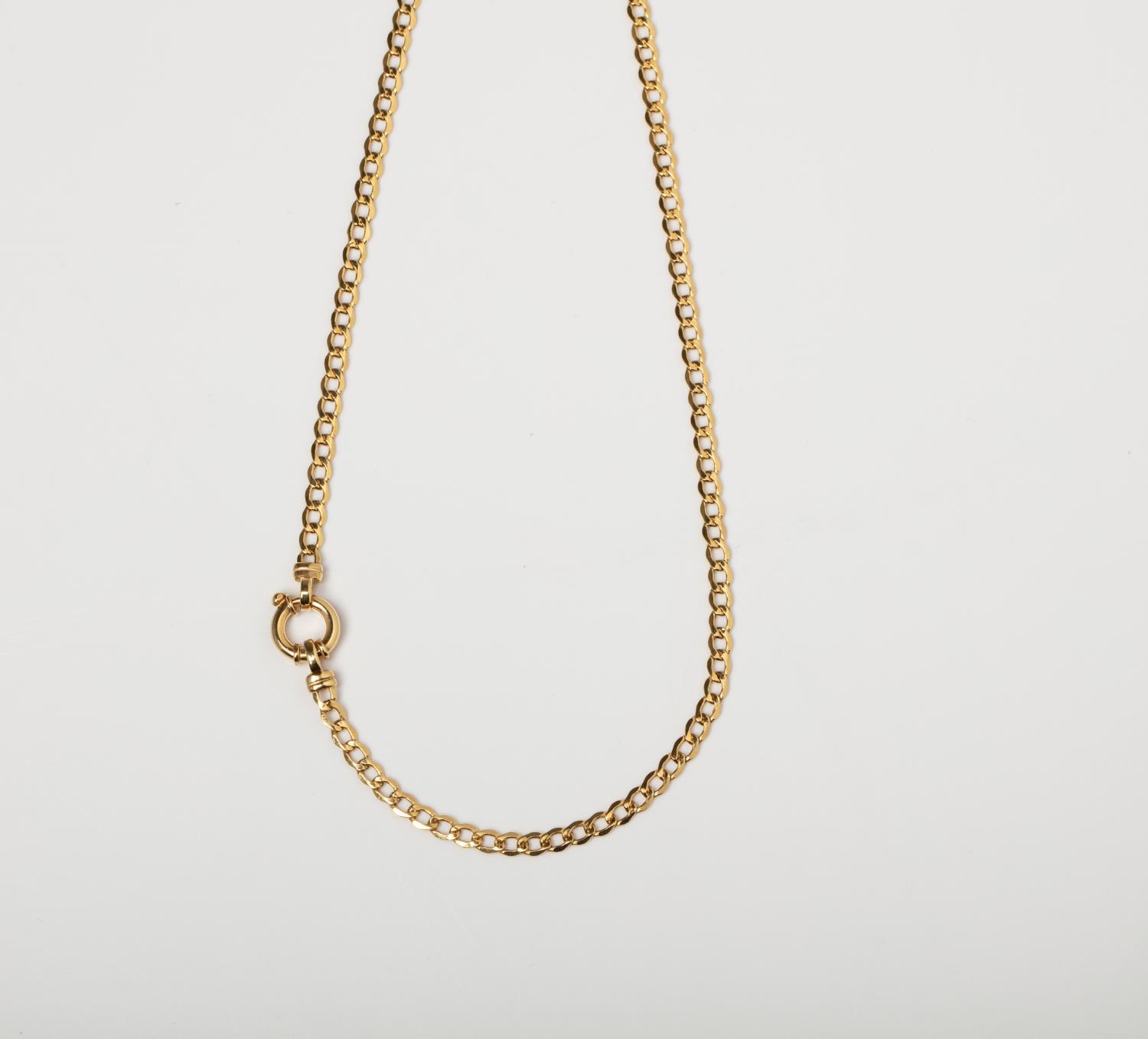 A 14CT GOLD CURB CHAIN WITH SIGNORETTI CLASP A 40cm long Curb chain with a Signoretti Clasp crafted in 14ct yellow gold weighing 3.71 grams.