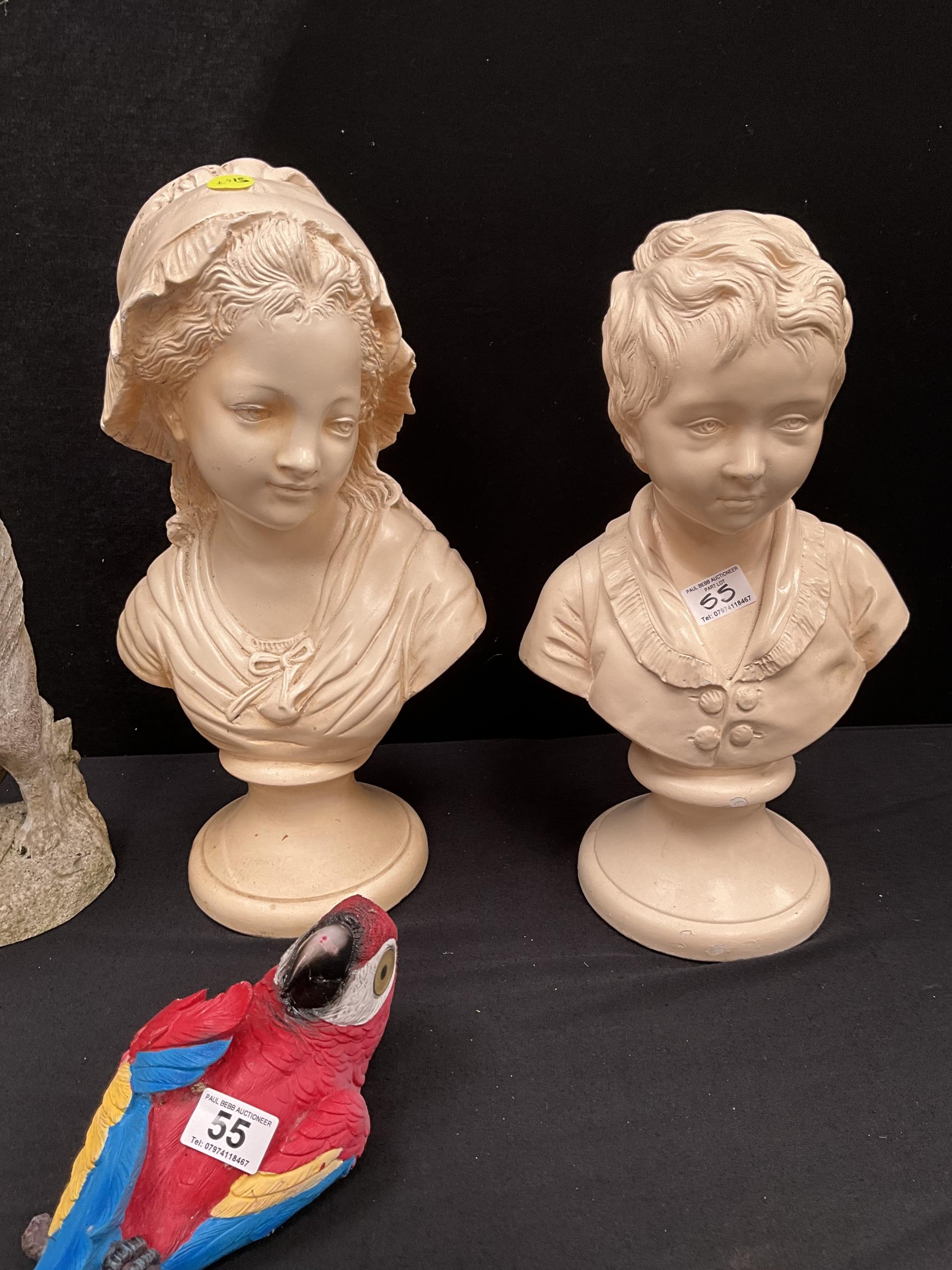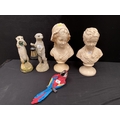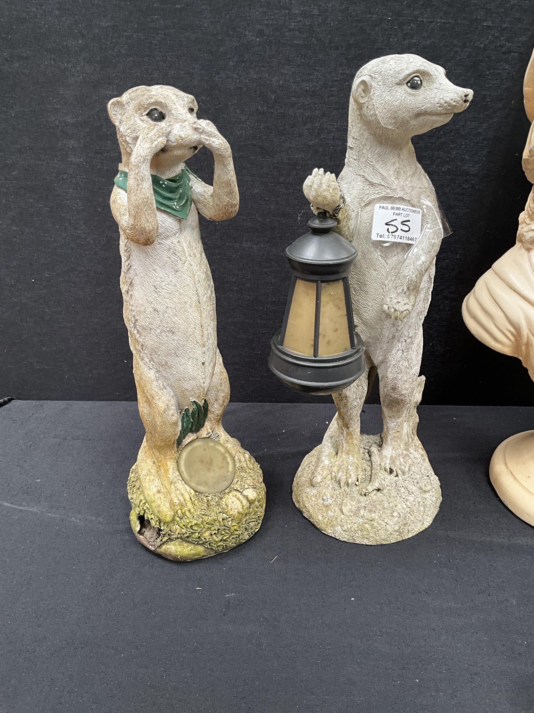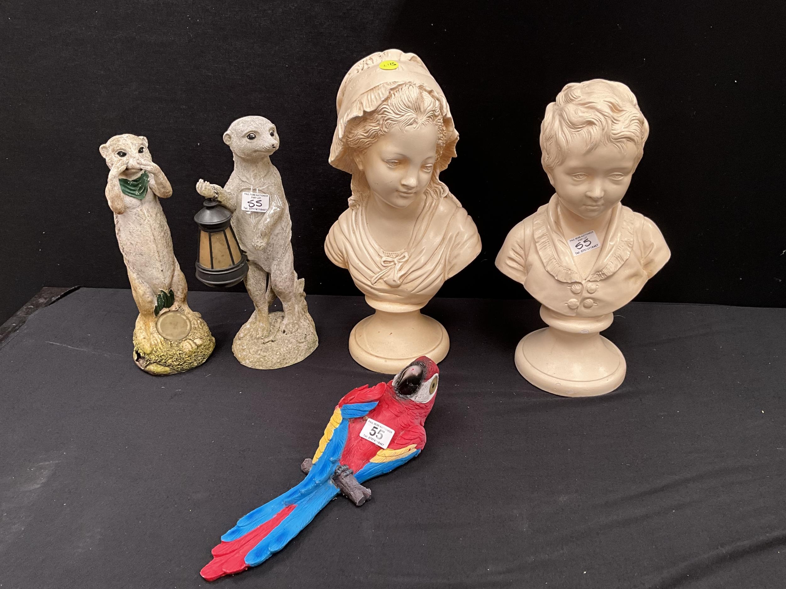 2 CHALK BOY & GIRL BUSTS H17" , 2 MEERKAT GARDEN ORNAMENTS