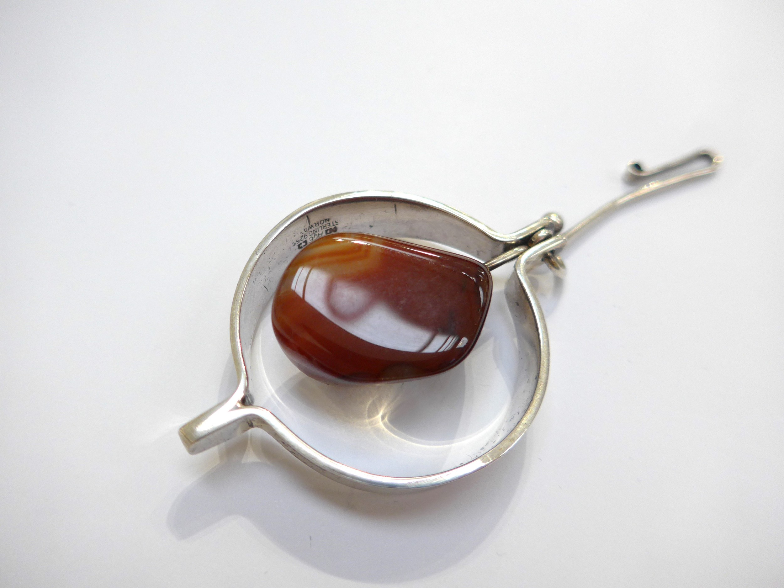 Anna Greta Eker, a Norwegian modernist sterling silver and agate pendant marked AGE