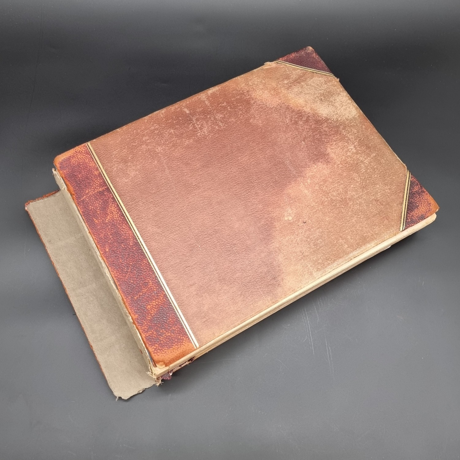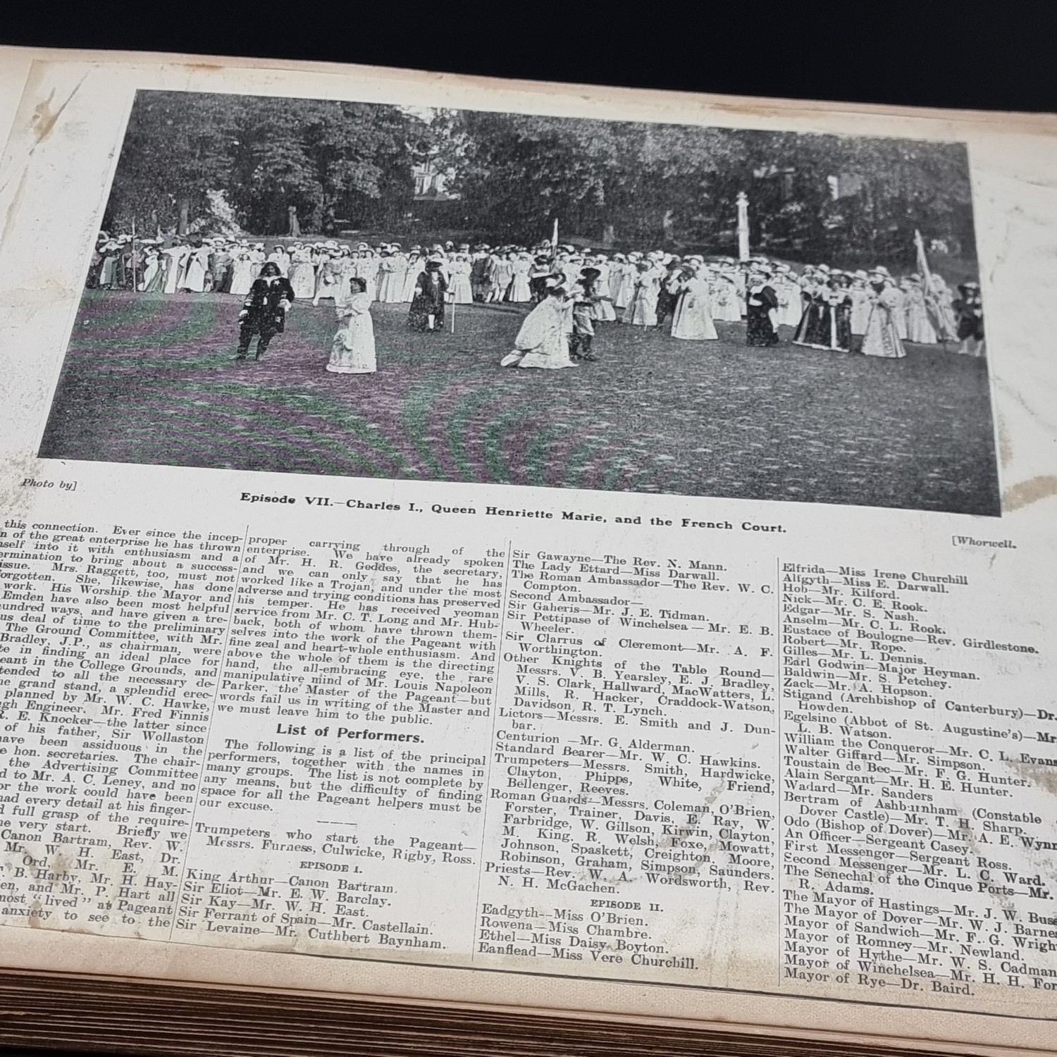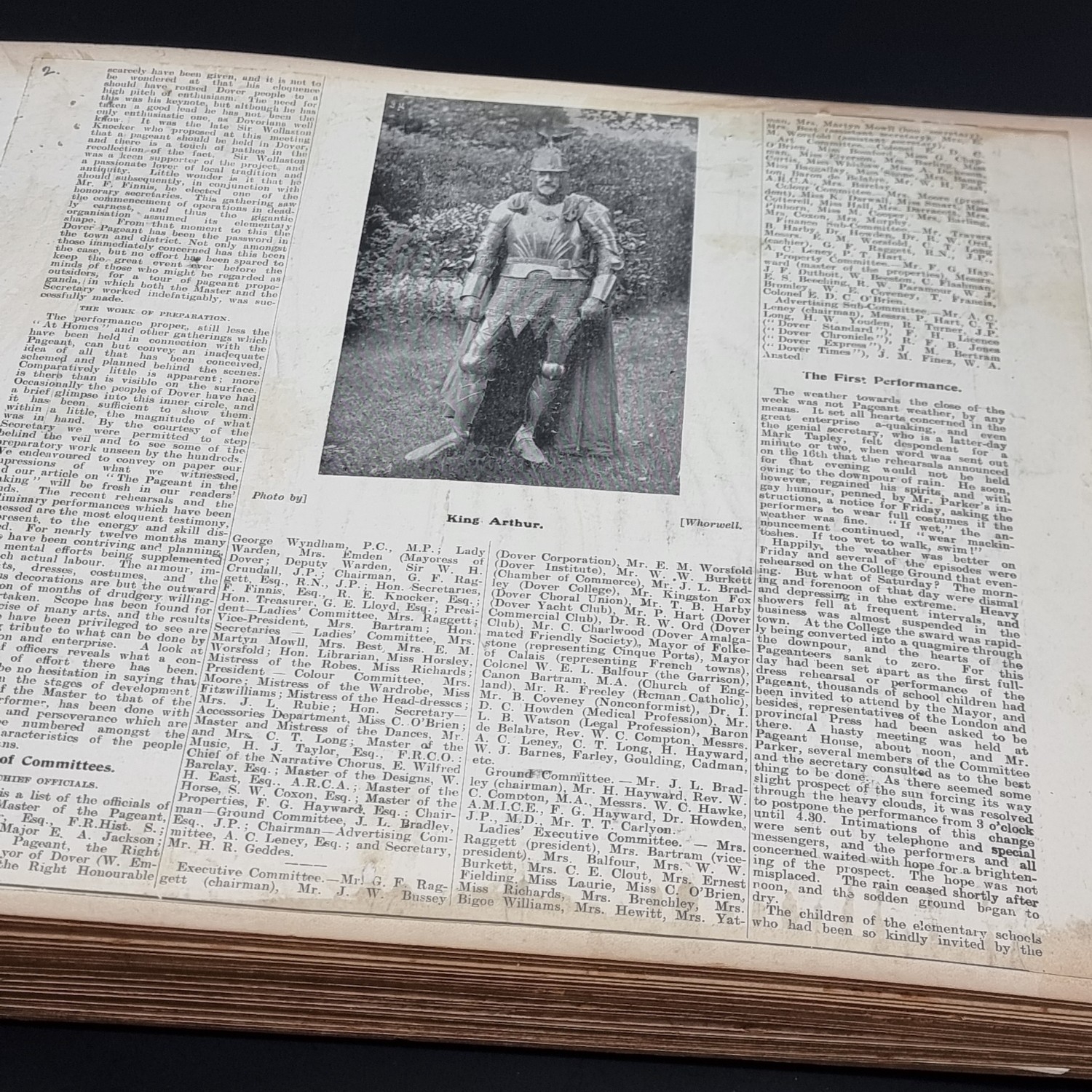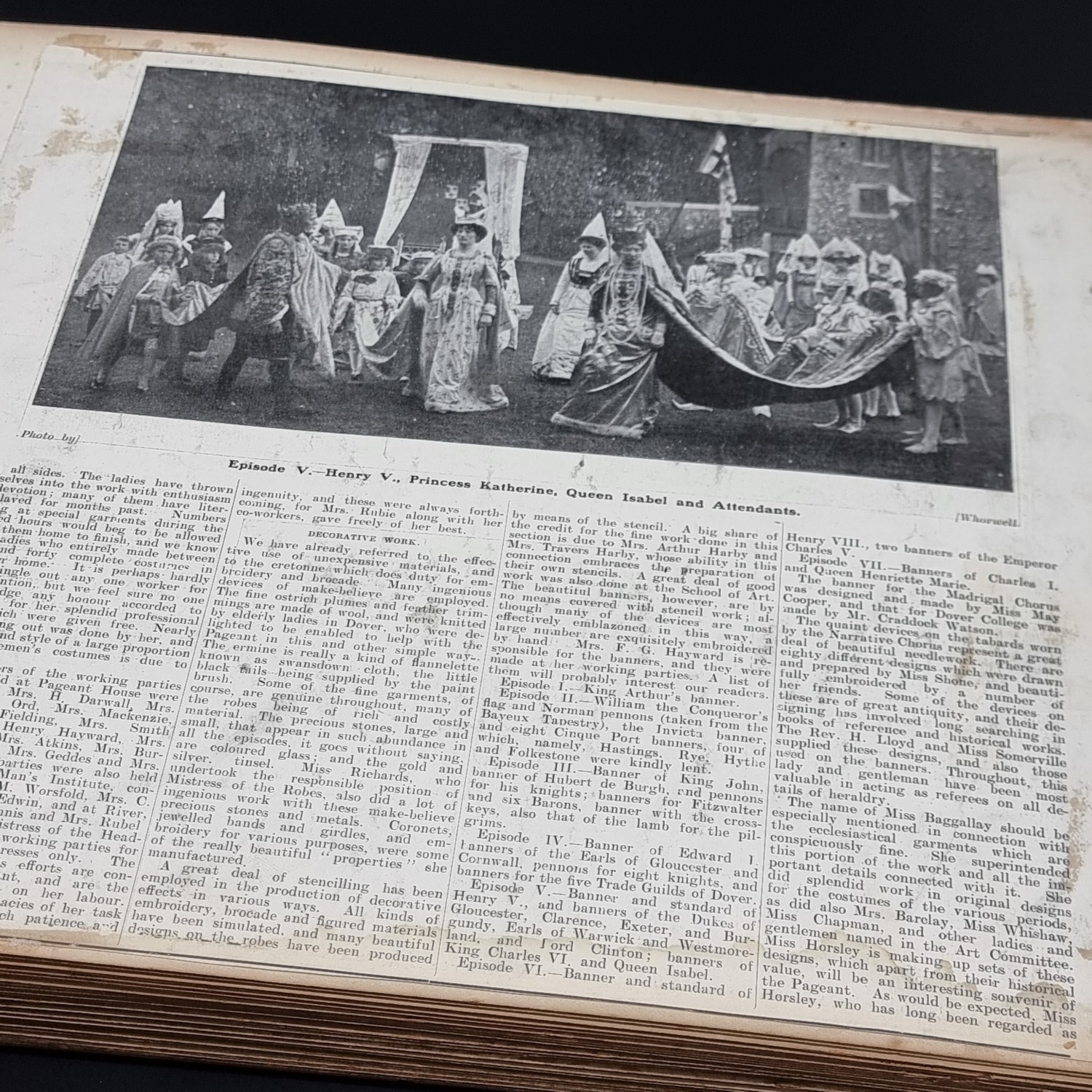 KENT: DOVER PAGEANT, 1908: an album of printed ephemera photographs and cuttings relating to the Dover Pageant of 27th July-1st August 1908: approx 60 postcards and original photographs of various sizes, all tipped-onto thick card album leaves, together with printed programme for the event: instructions and notices to performers (some folding and backed onto linen): contained in worn half leather album of period, spine loose and boards detached, thick oblong folio. (1)