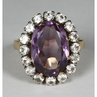Two various 18ct gold rings, one centrally illusion set with a solitaire diamond surrounded by sapphire coloured stones, the other with two diamonds and three ruby coloured stones, gross weight approximately 9.5g