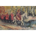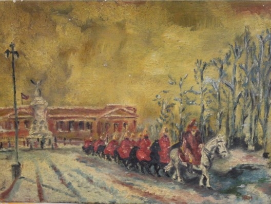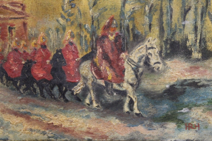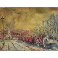 H.R.H. (XX). Impressionist Winter scene with Horseguards parade, signed with monogram lower right, oil on canvas board, unframed, 30 x 40 cm
