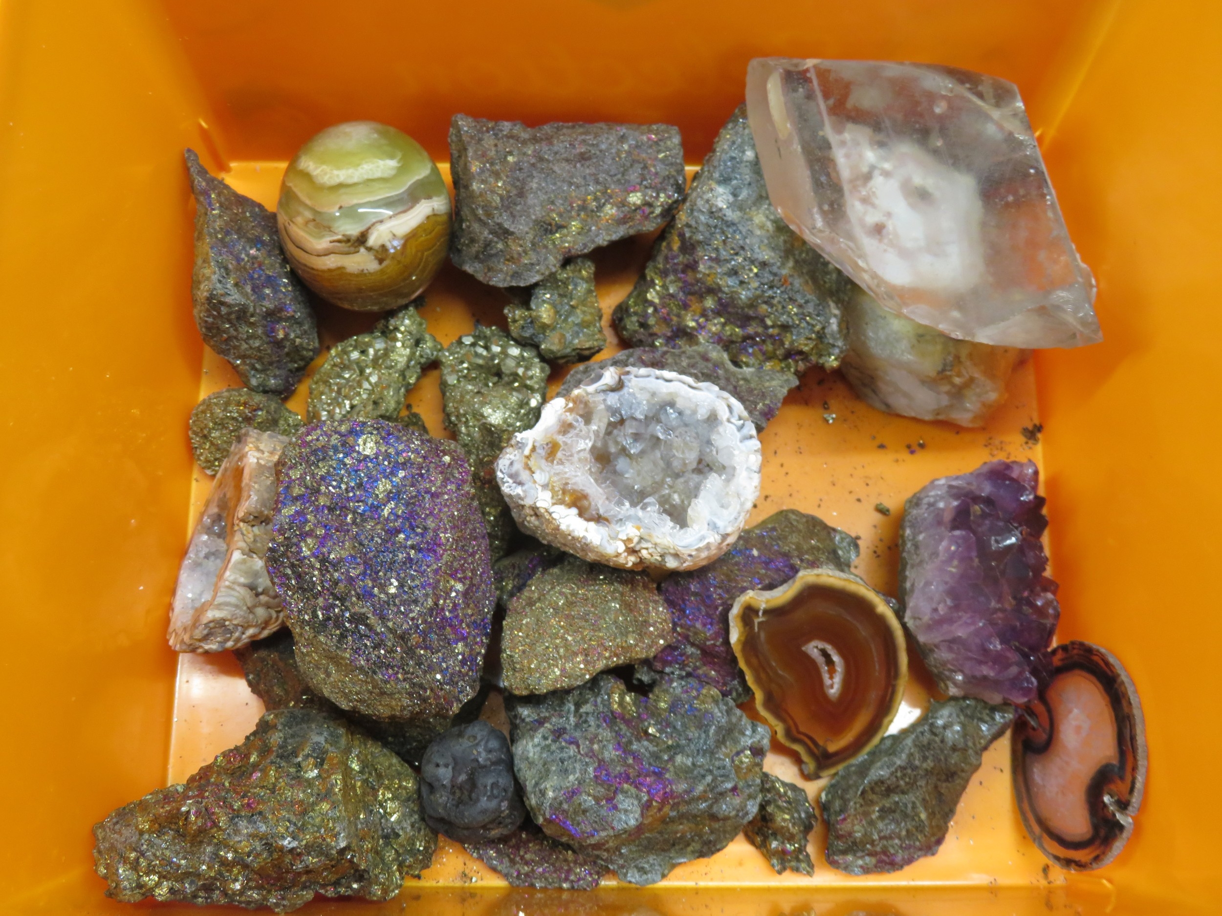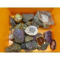 Good box of interesting rocks - rock crystal, agate, geodes, onyx, amethyst, quartz etc