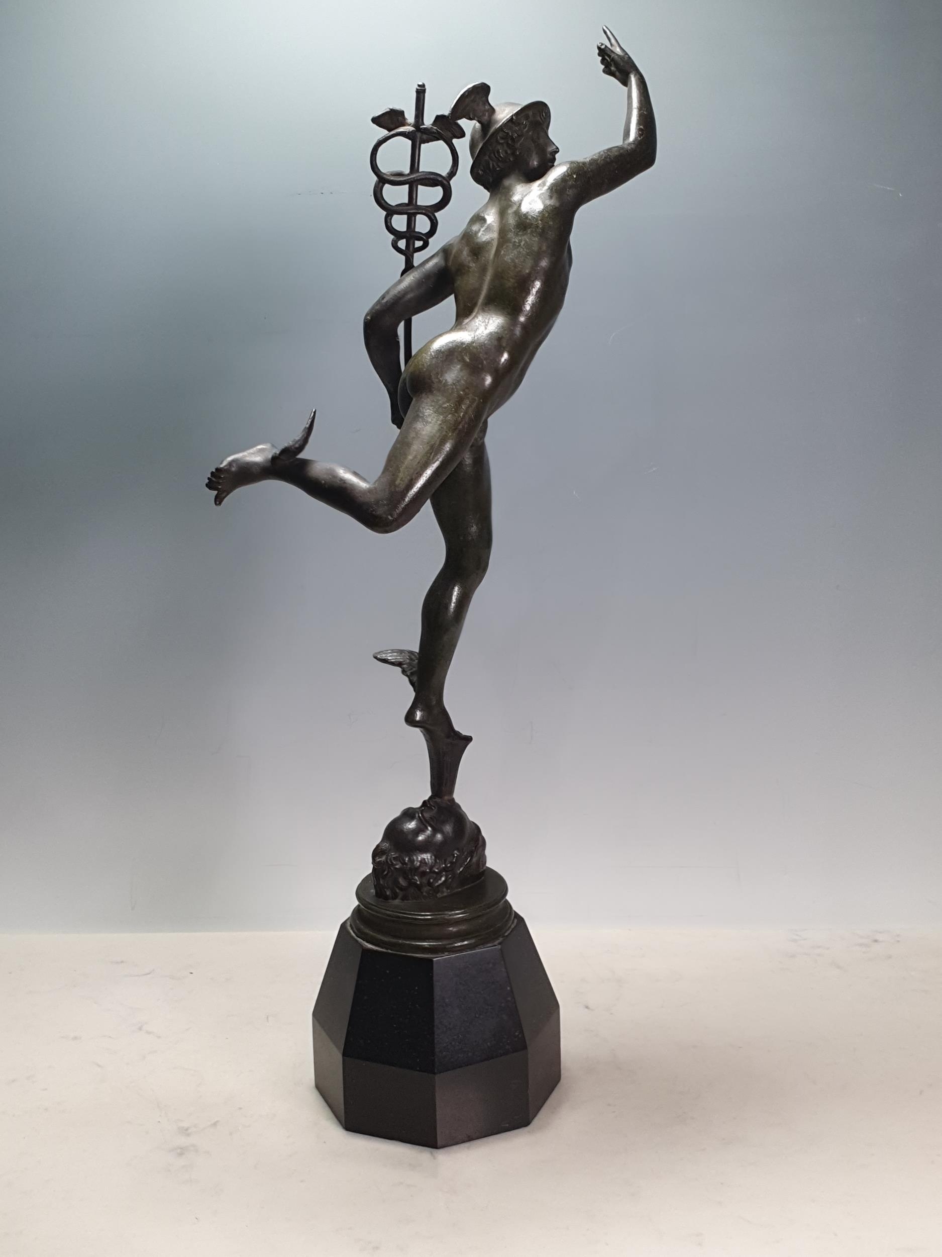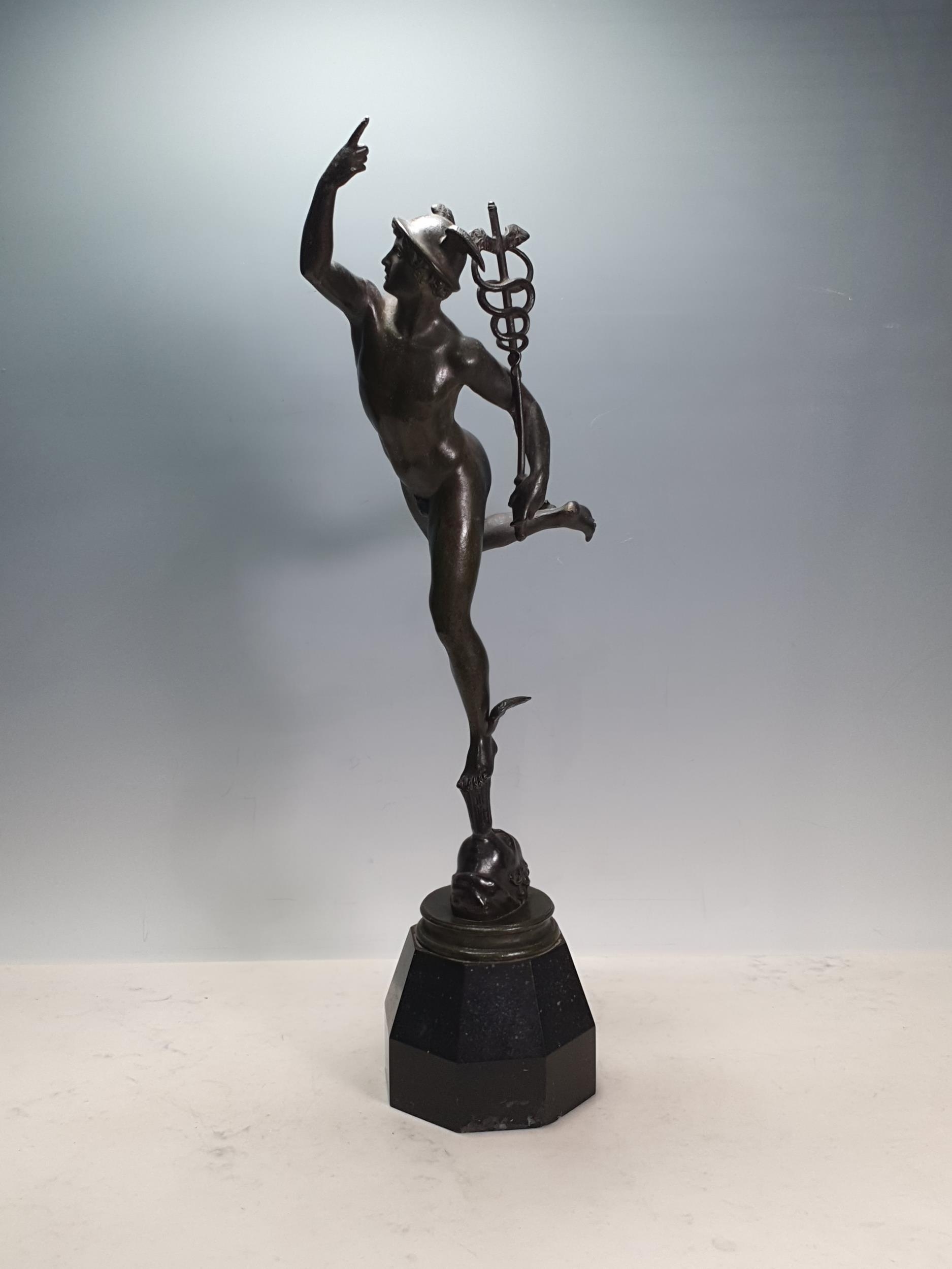 A bronze effect Figure of Mercury raised on octagonal plinth base, 2ft High. (R4).