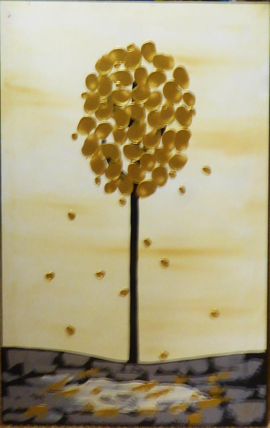 PIERO MONTANELLI (Contemporary Italian) 'Golden Tree', acrylic on canvas, initialled lower right and verso, 90cm x 60cm