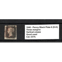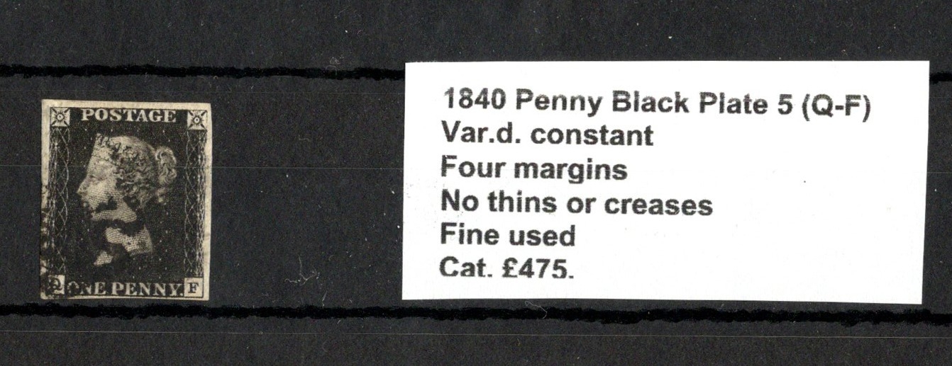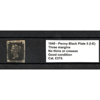 GB - 1840 Penny Black Plate 5 (Q-F) Var.d. constant, four margins, no thins or creases, fine used cat £450