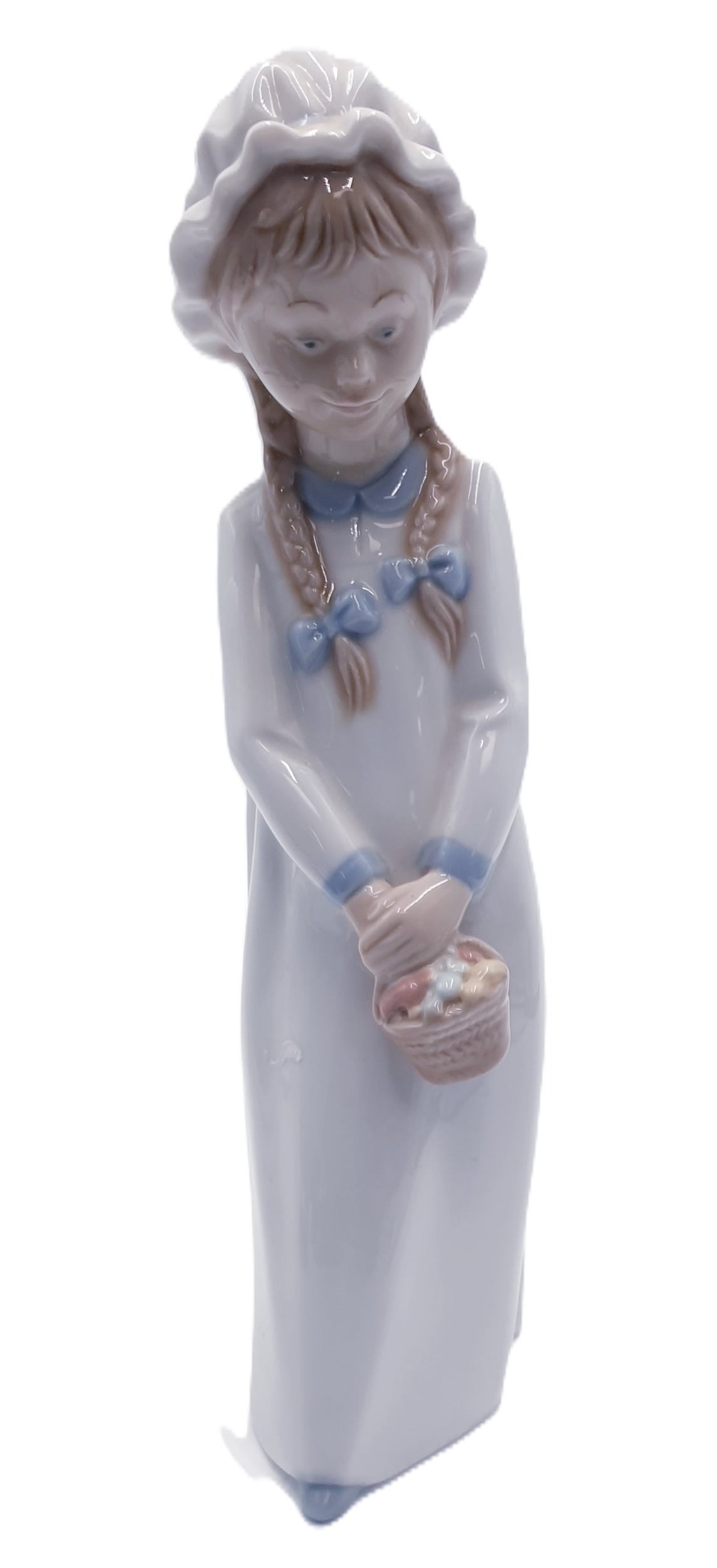 LLADRO (Nao) PORCELAIN Large 26cm CHARACTER FIGIRINE OF A GIRL With PIGTAILS And CARRYING A BASKET