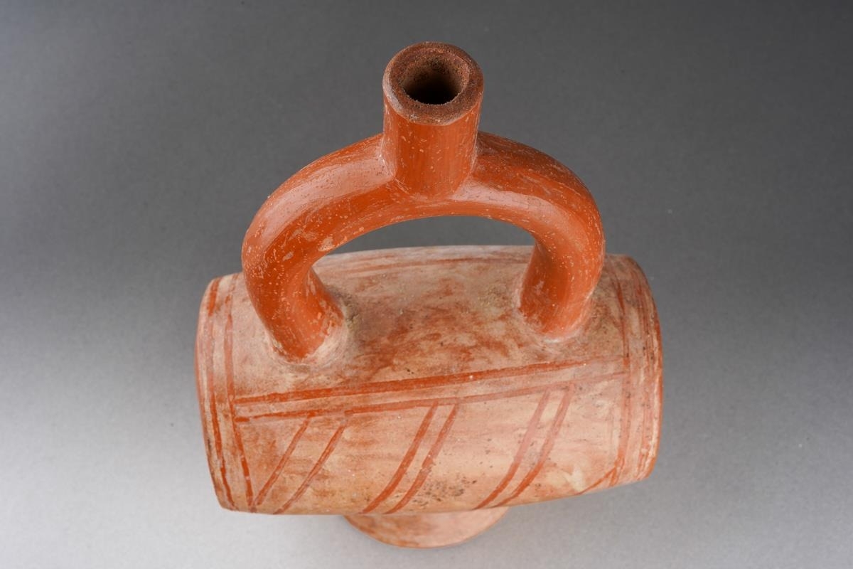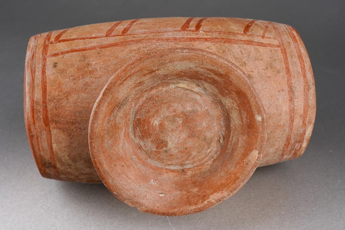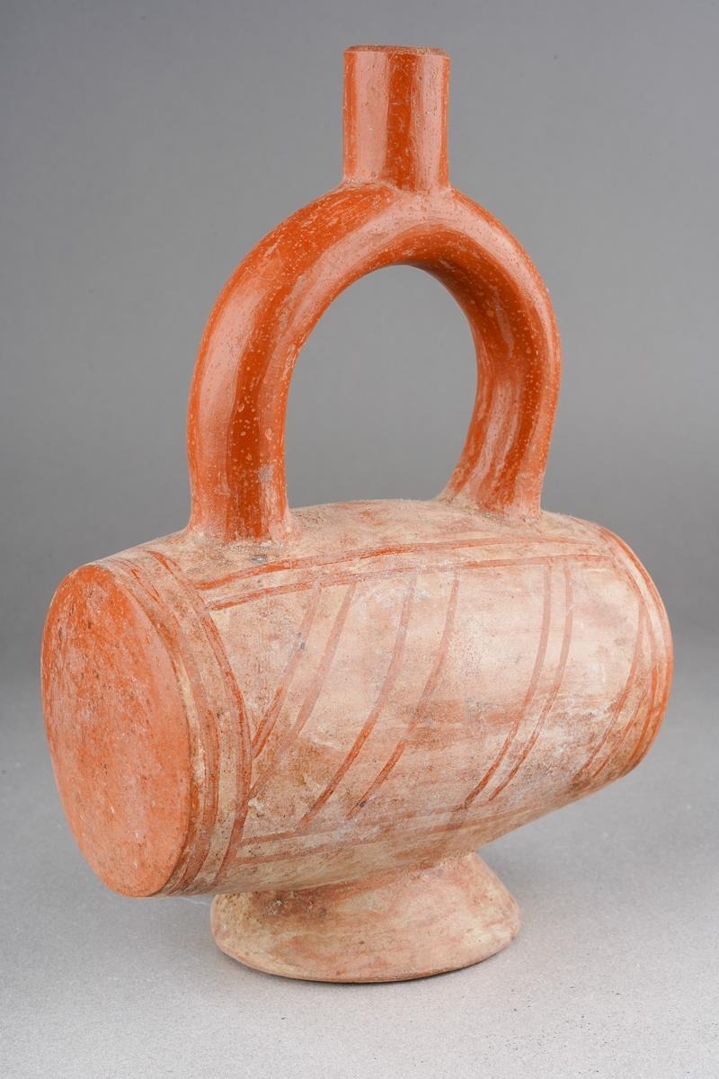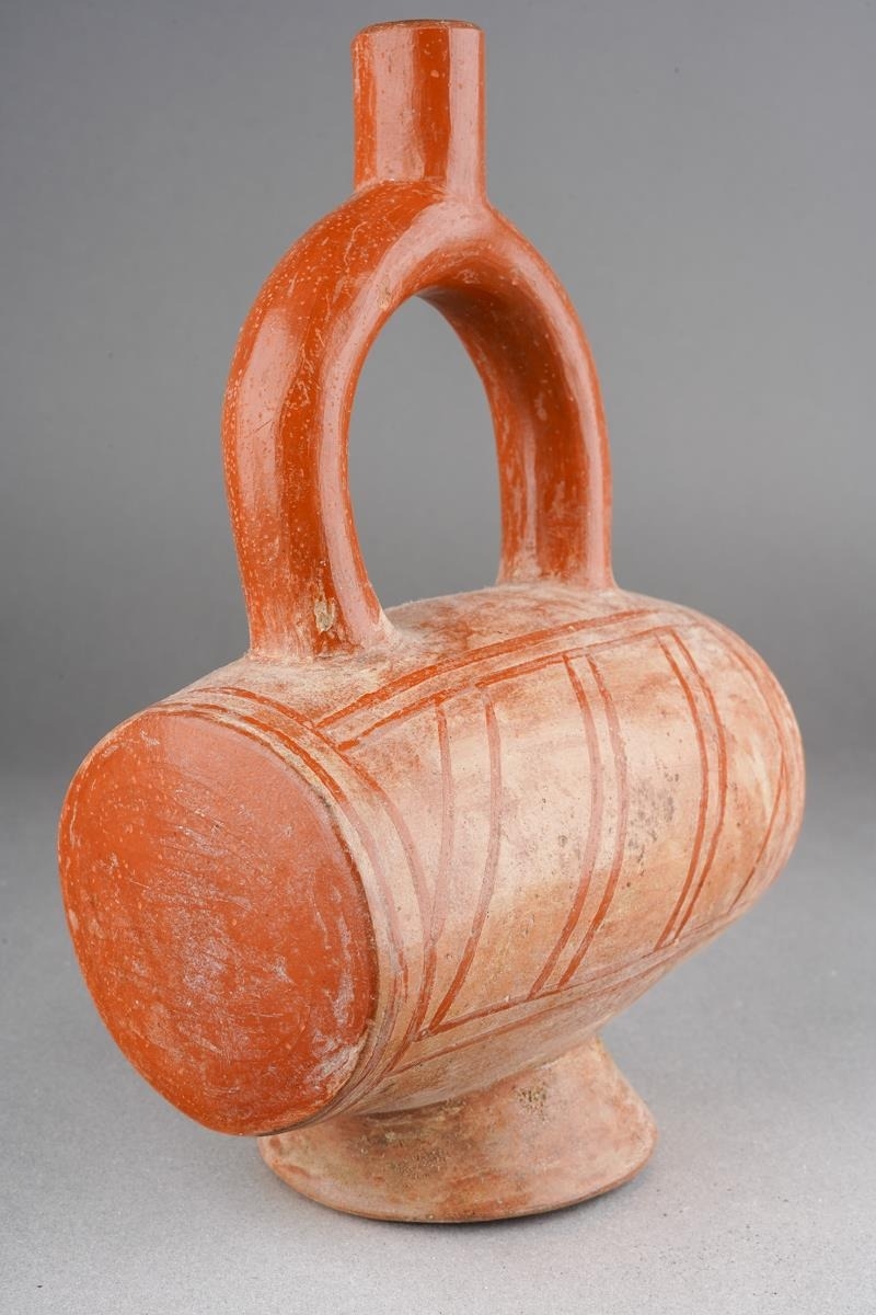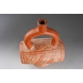 Pre Columbian moche pottery stirrup spout vessel , approx. 19 cm tall