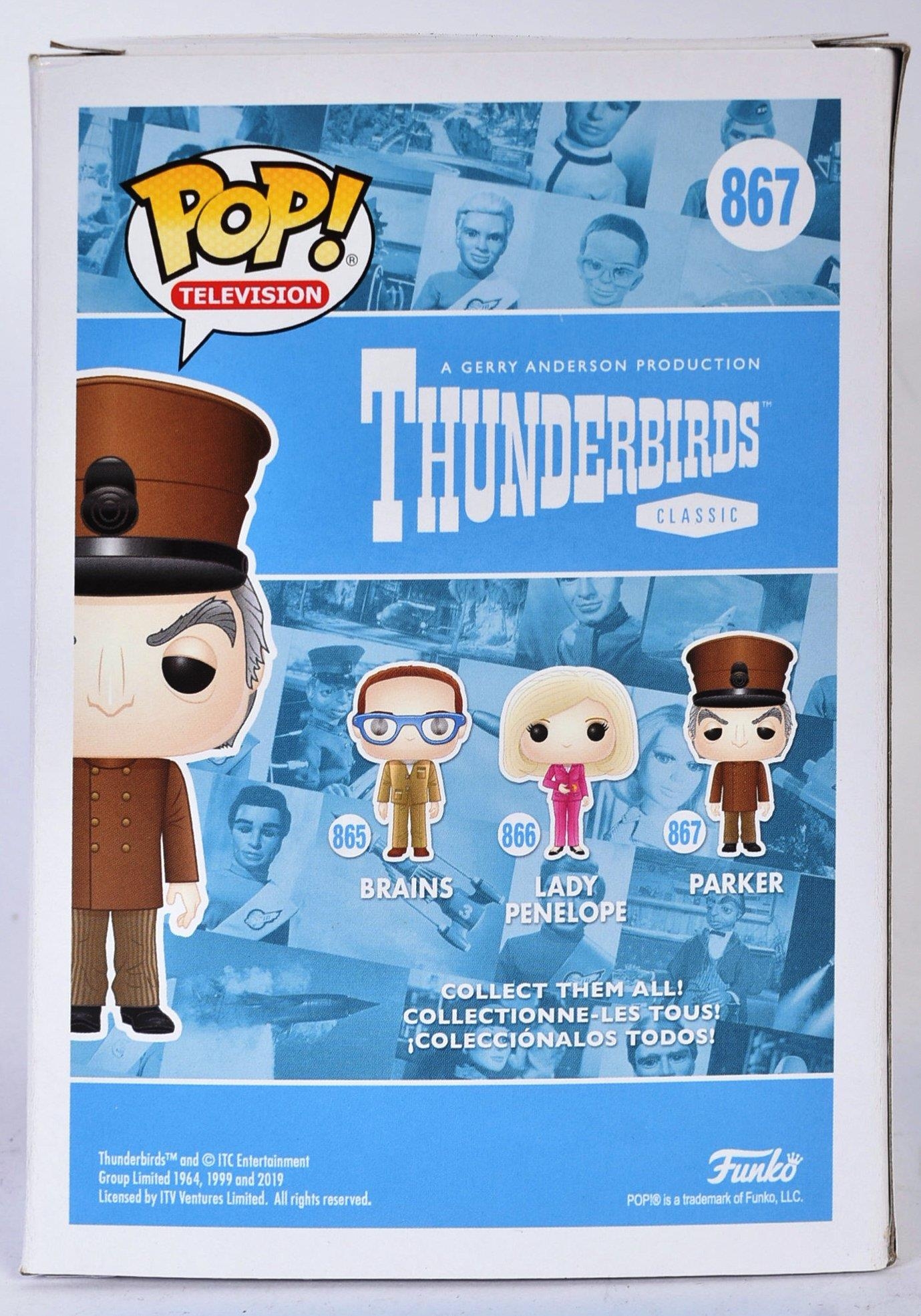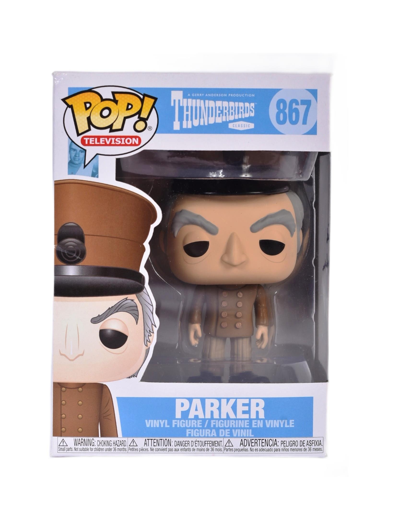 Thunderbirds - David Graham - Voice of Parker, Brains, Gordon Tracy and others - autographed Parker Funko Pop vinyl action figure. Signed by Graham in black ink to the side of the box. The Funko figure appearing as new and unused.