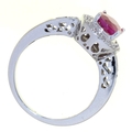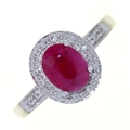A RUBY AND DIAMOND CLUSTER RING, IN WHITE GOLD WITH PIERCED SHOULDERS, MARKED 14K, 4.1G, SIZE M