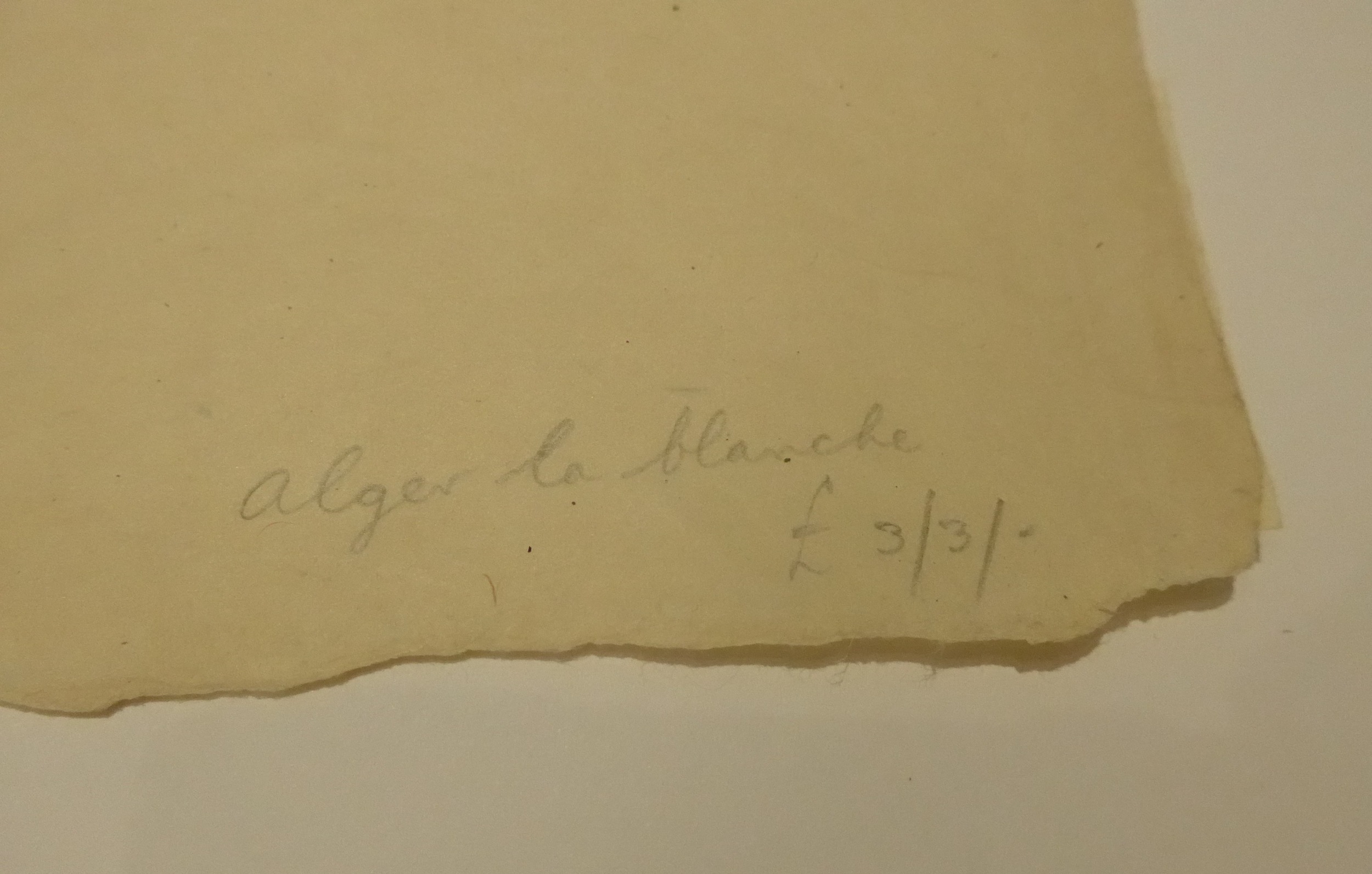 ETHEL GABAIN (1883-1950) An unframed lithograph - 'Algers, La Blanche'. Pencil signed. Paper size 40cm x 27.8cm. Provenance - From the collection of Henry Potter Stevens (1875-1965)