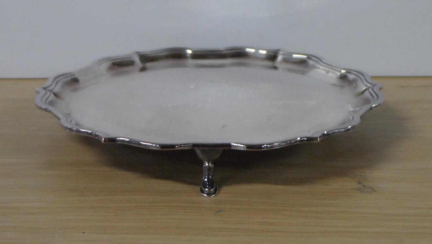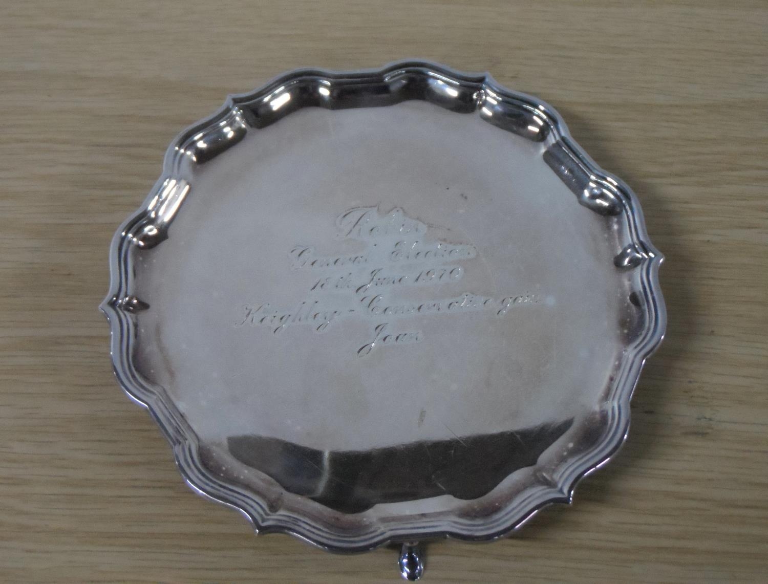 Engraved Sheffield silver waiter, 15 cm in diameter,150 grams