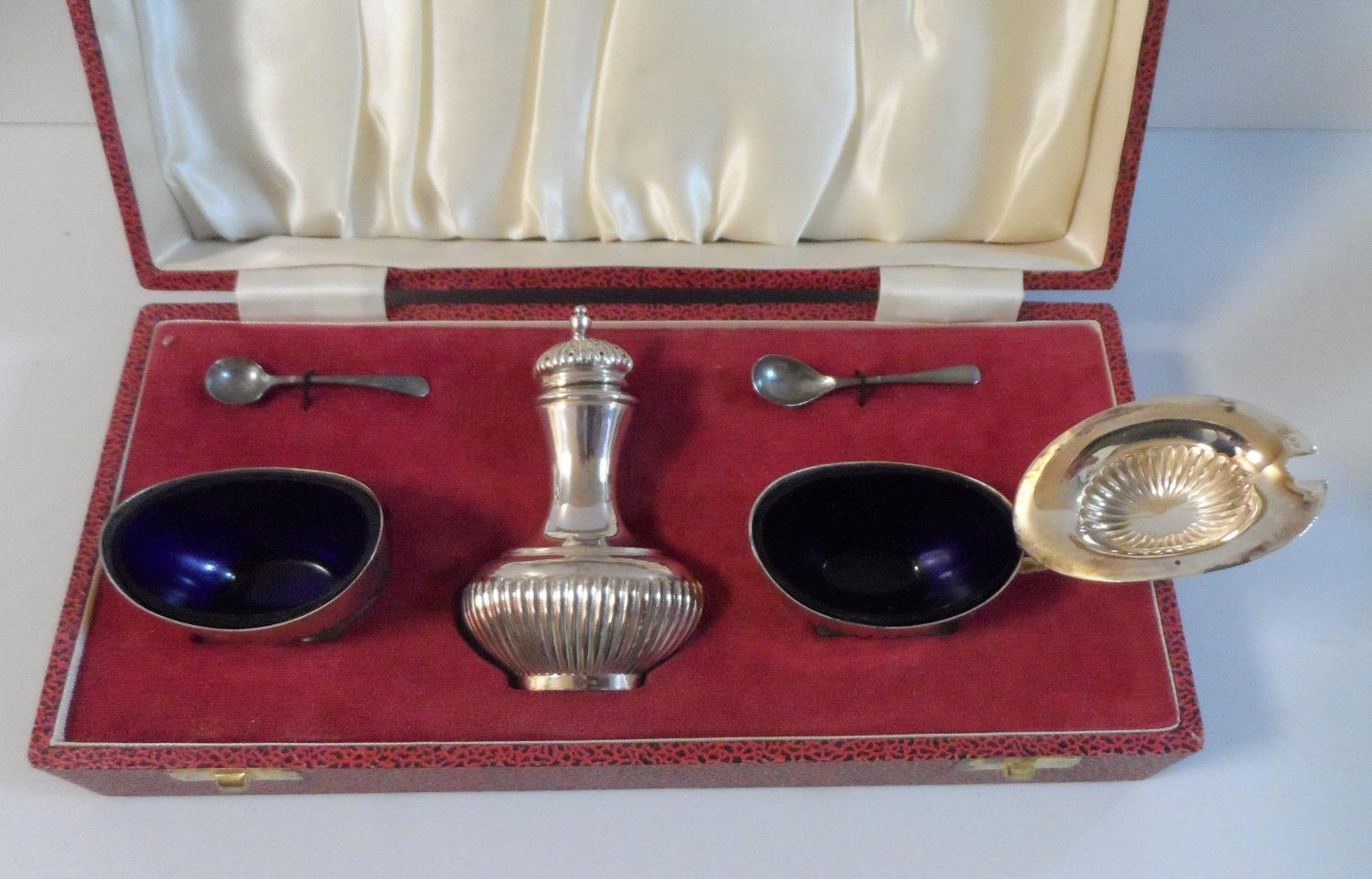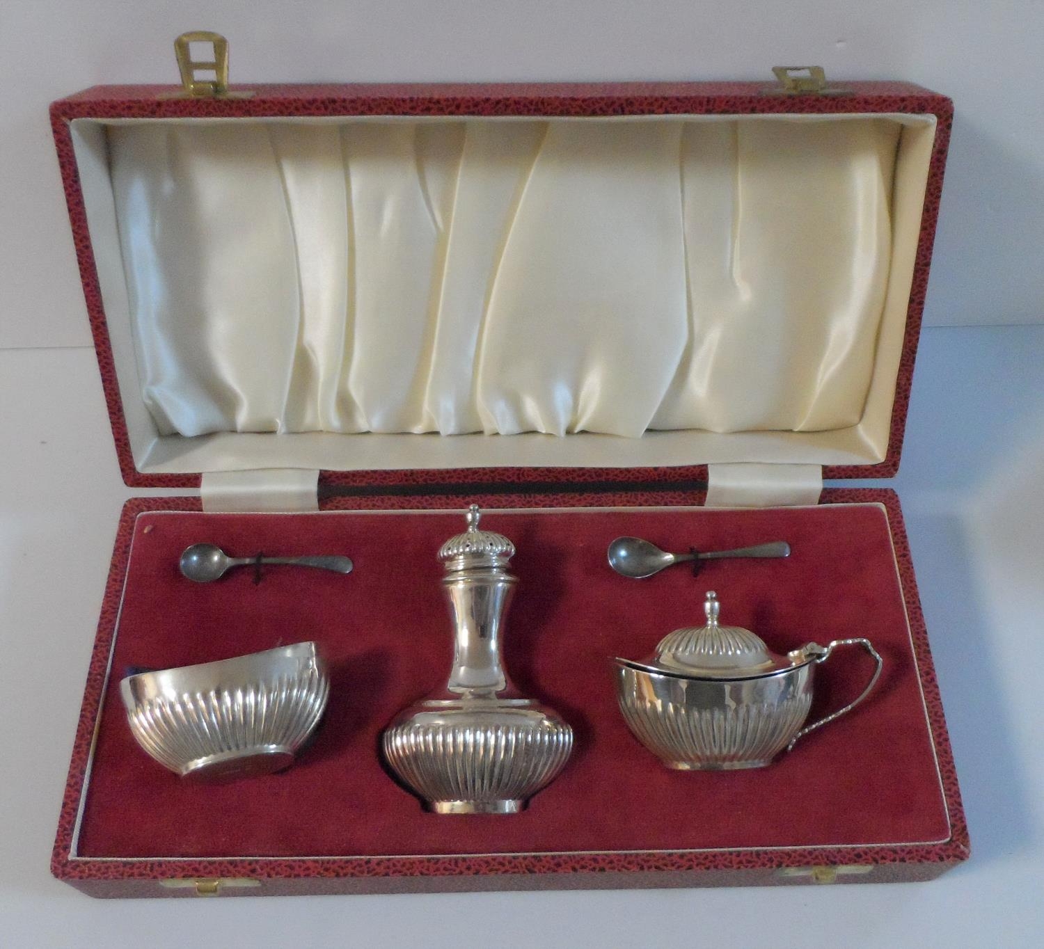 Late 20thC Sheffield silver cruet set,175 grams of silver