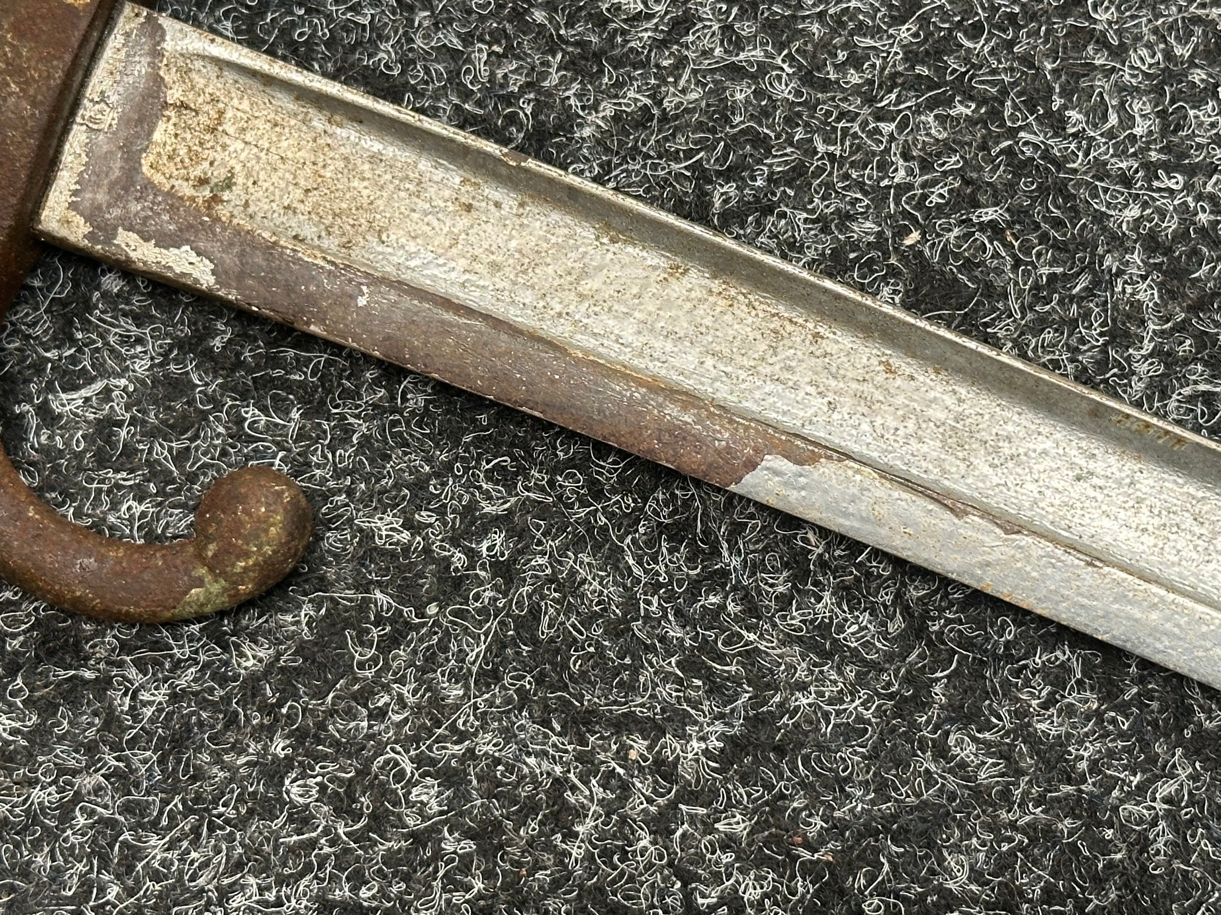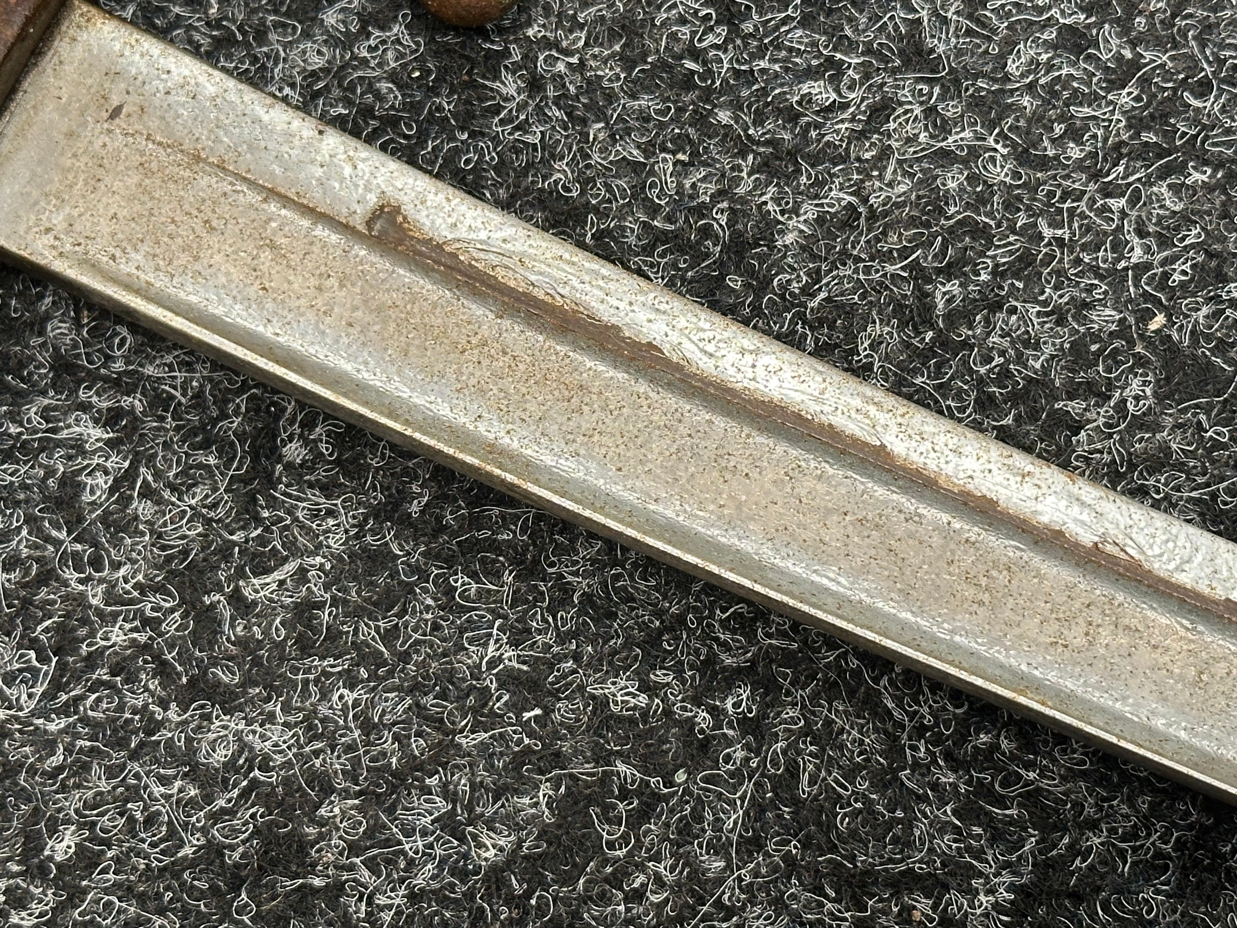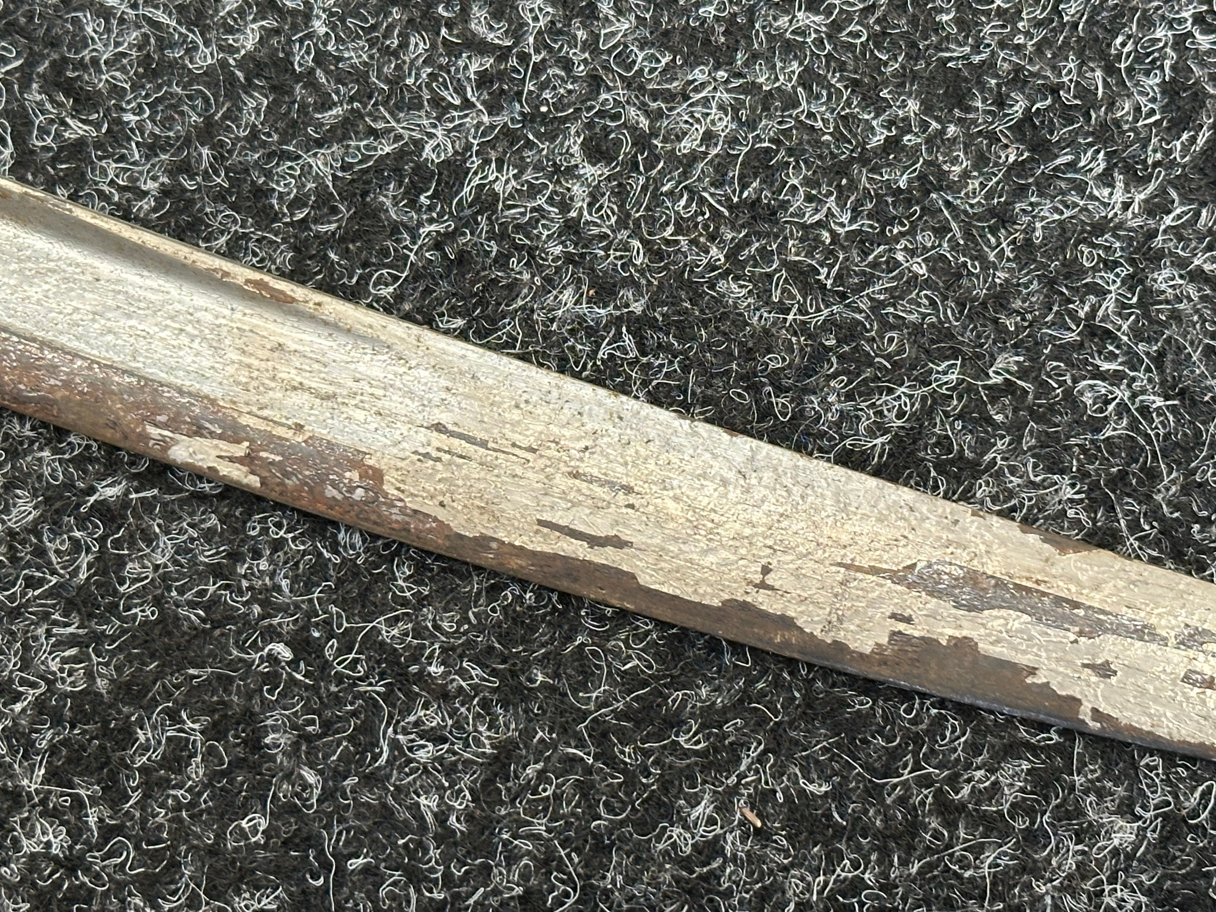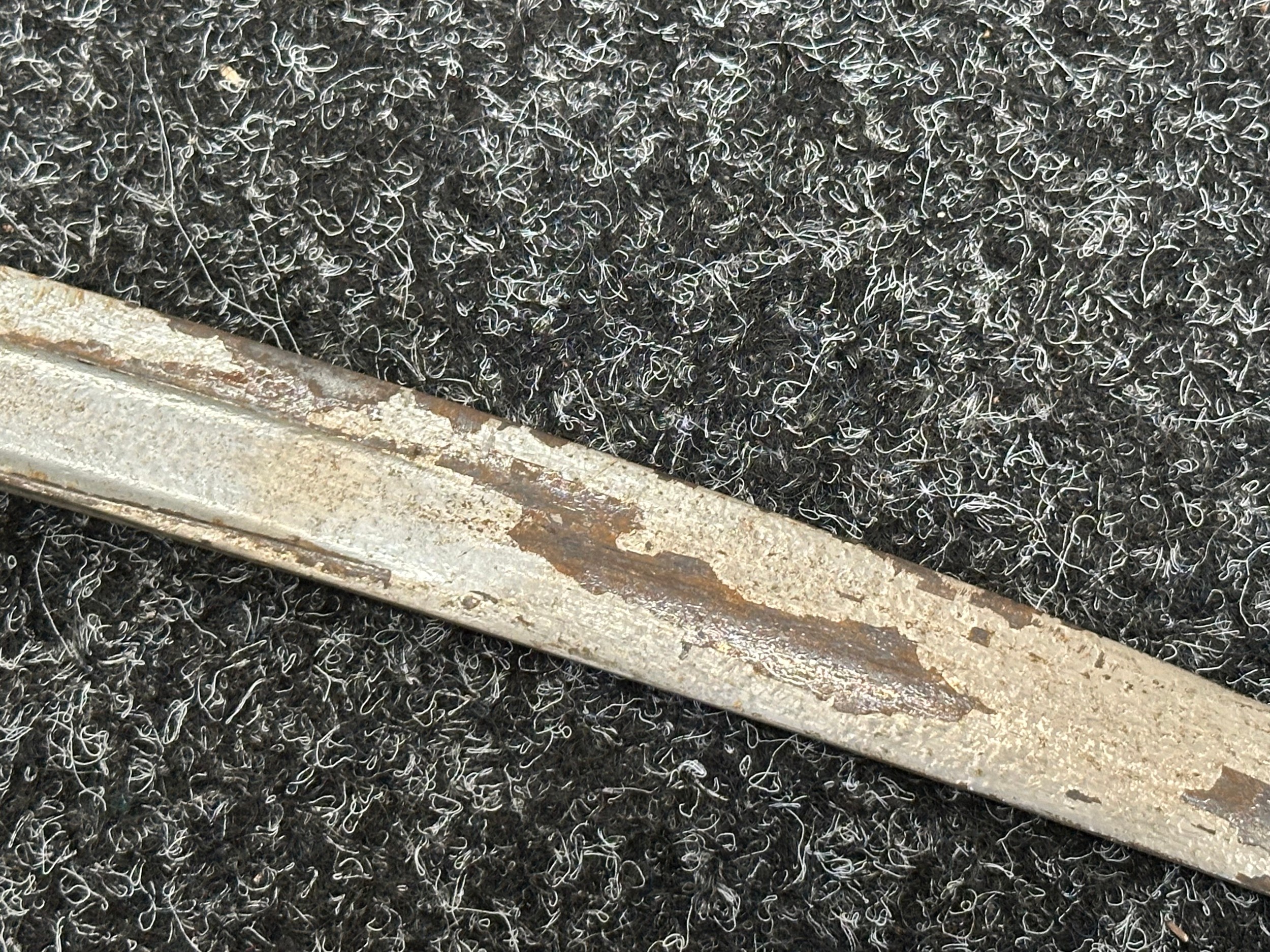 Has previously been plated and this is coming loose overall. Poor condition.Scabbard missing hanger loop.