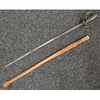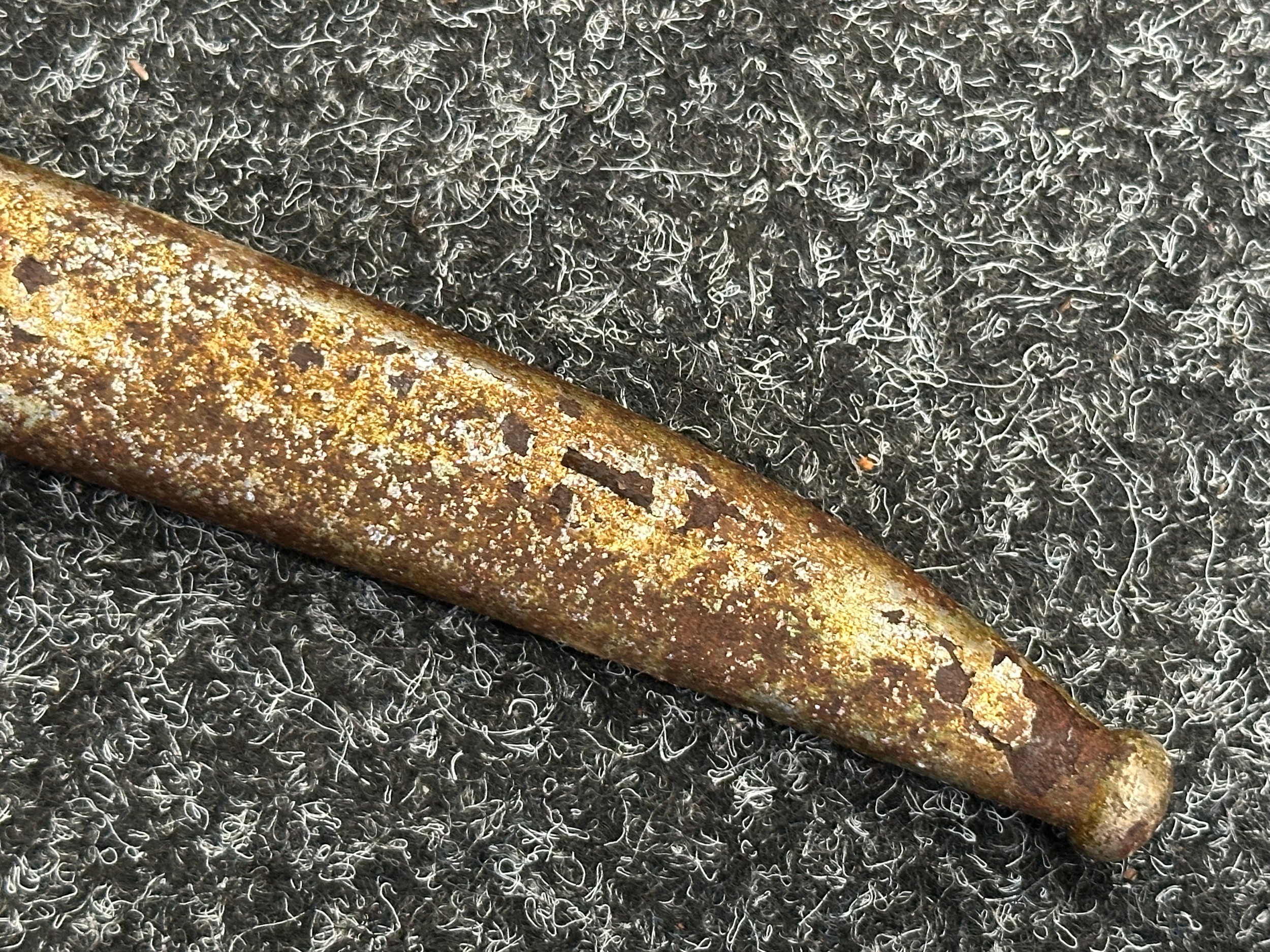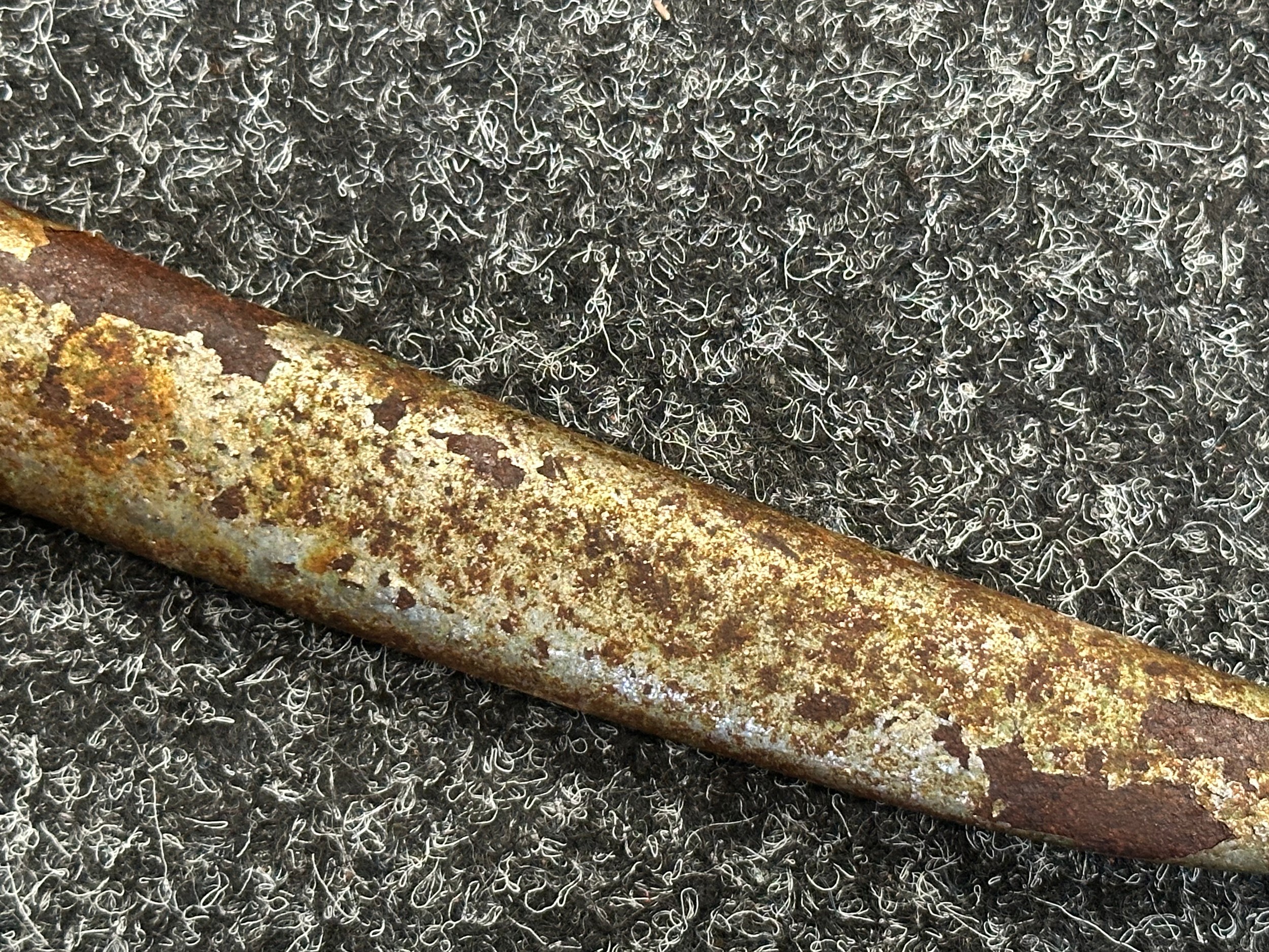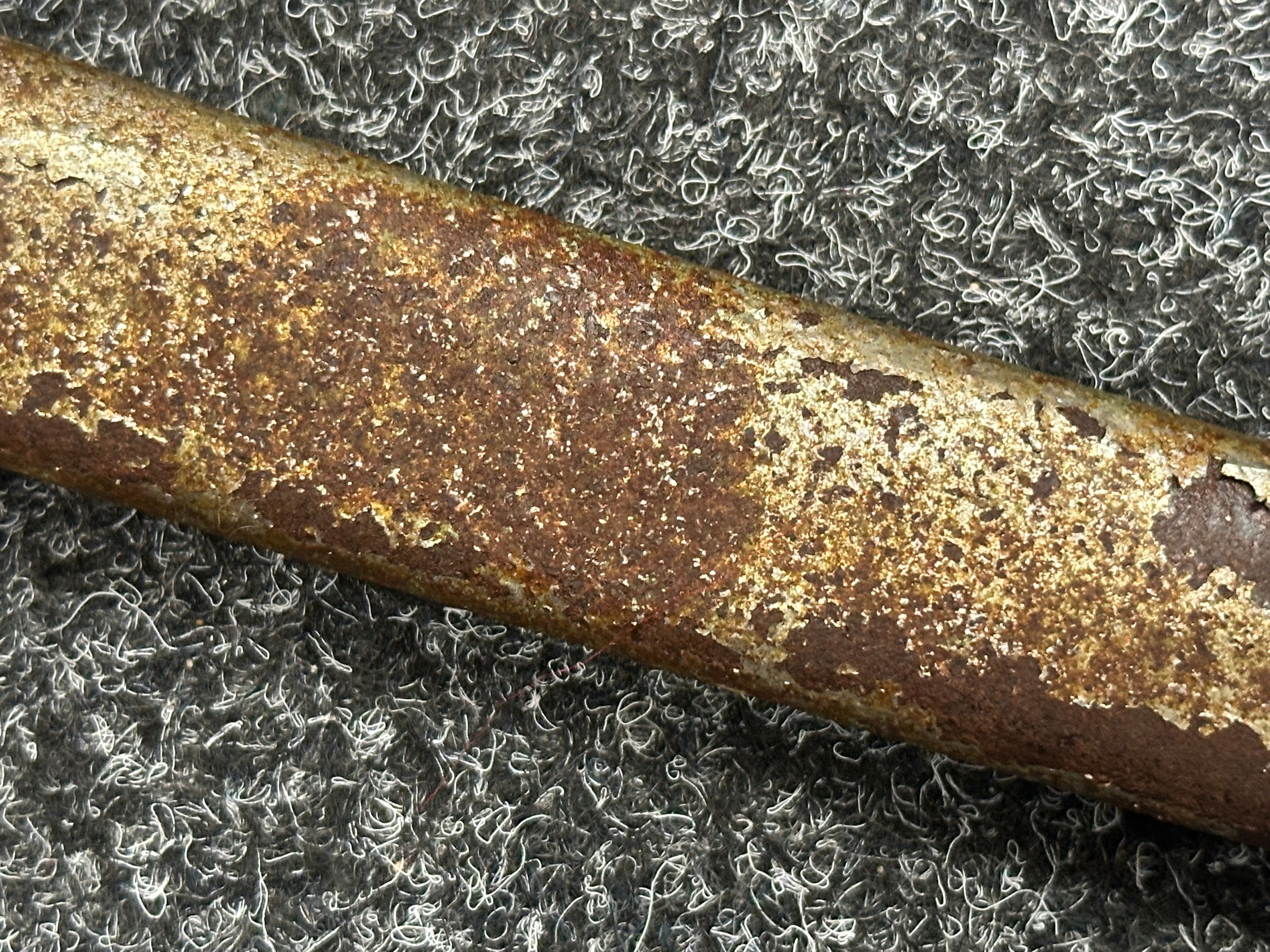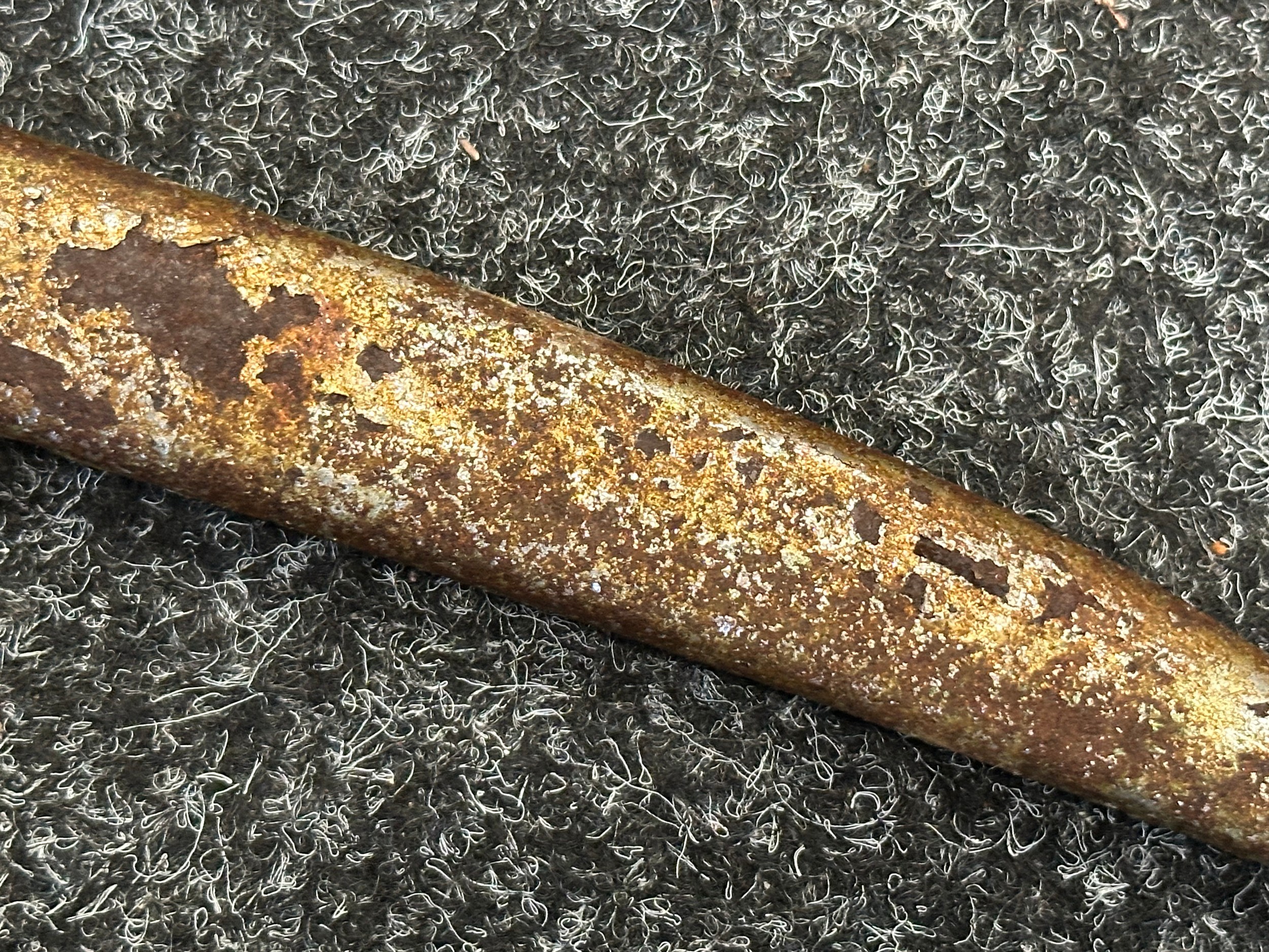 Has previously been plated and this is coming loose overall. Poor condition.Scabbard missing hanger loop.