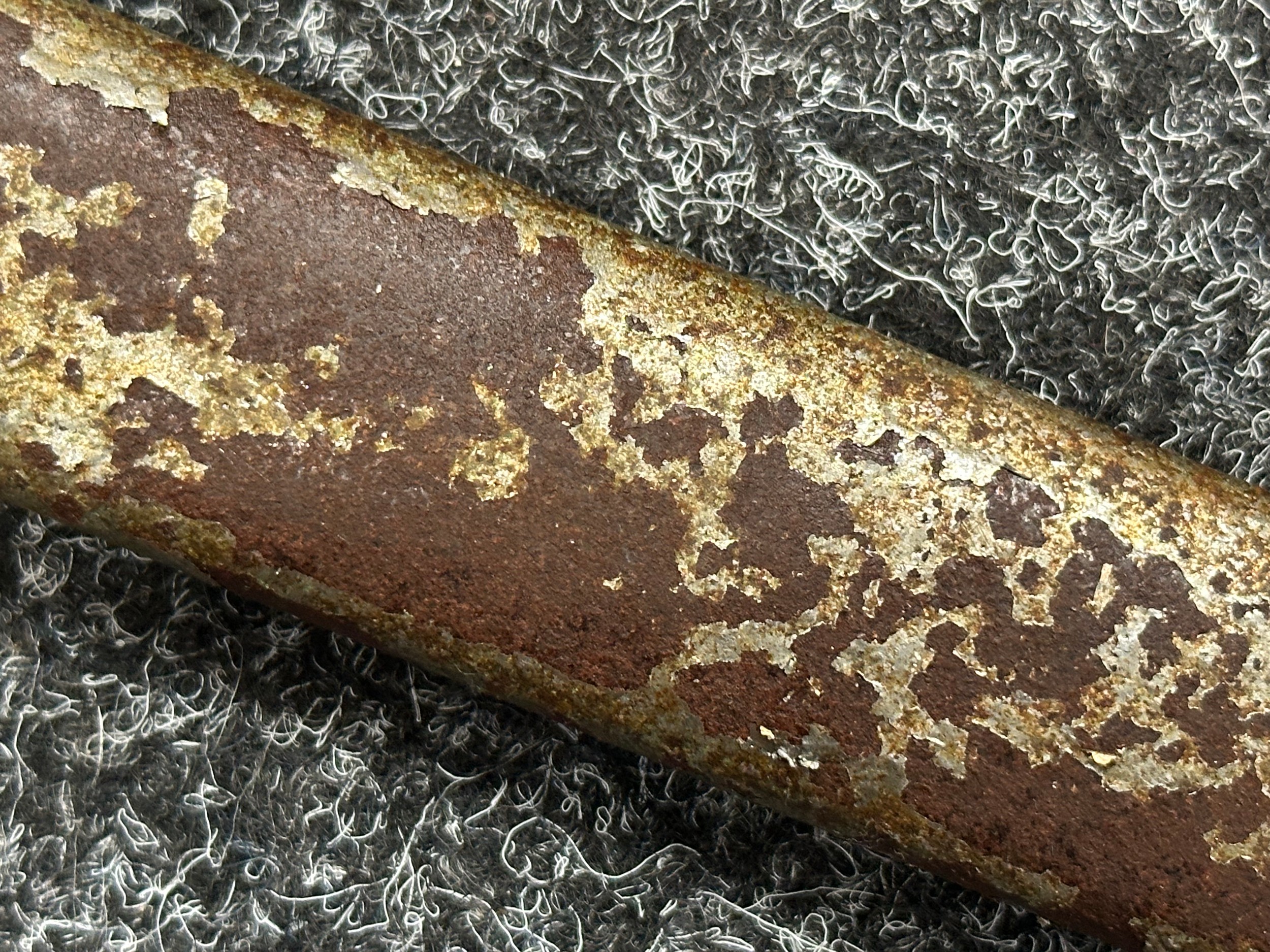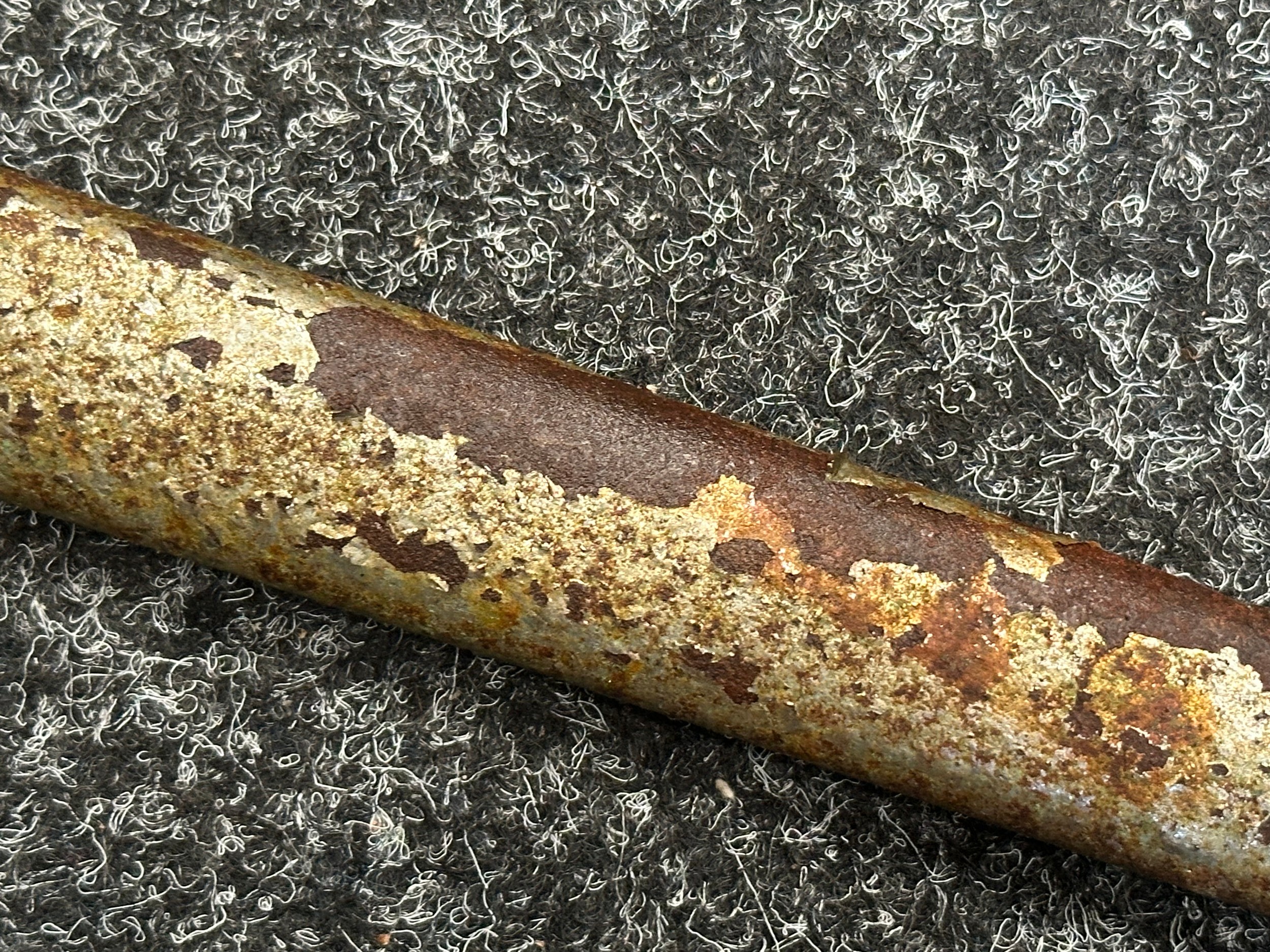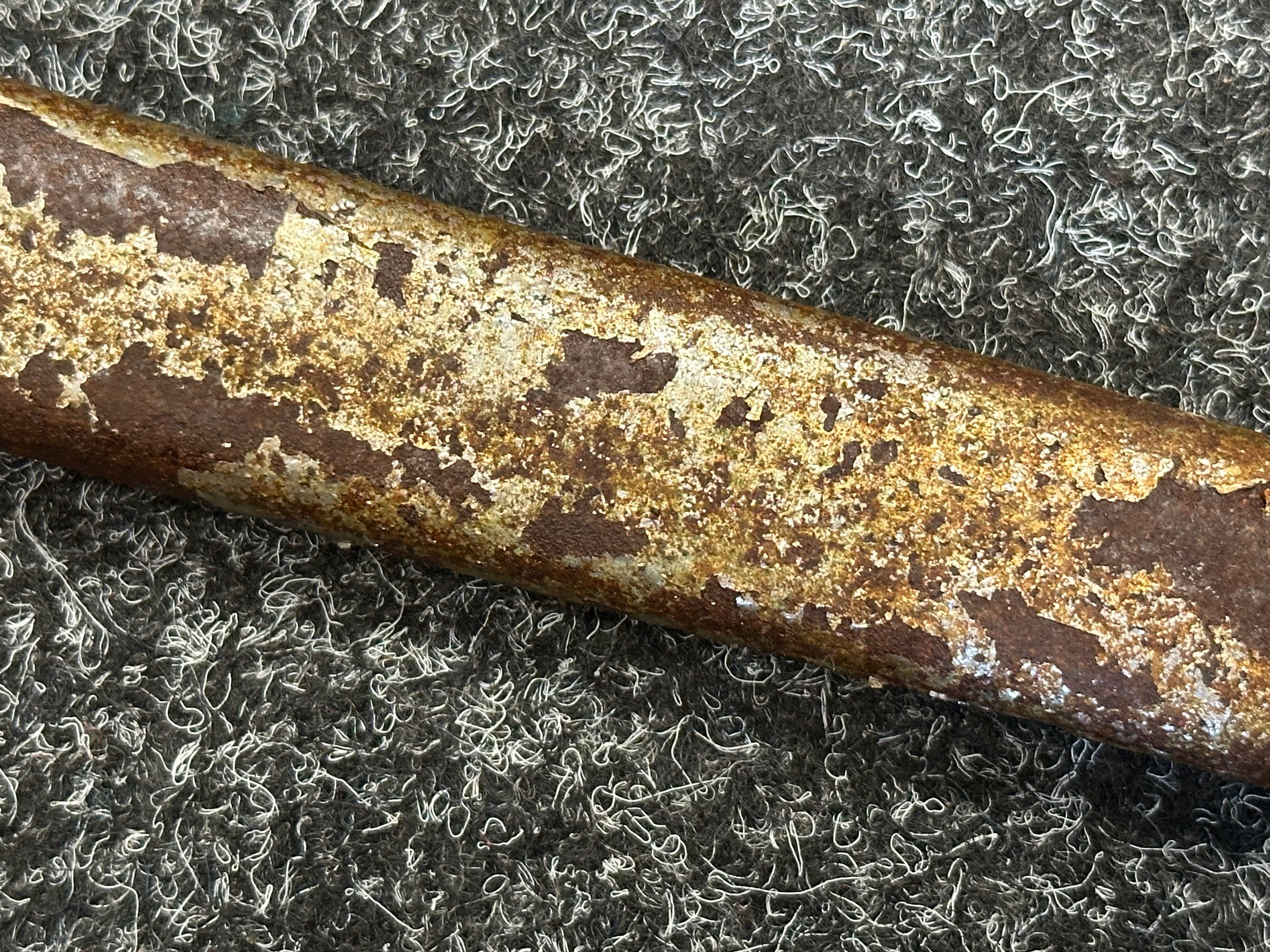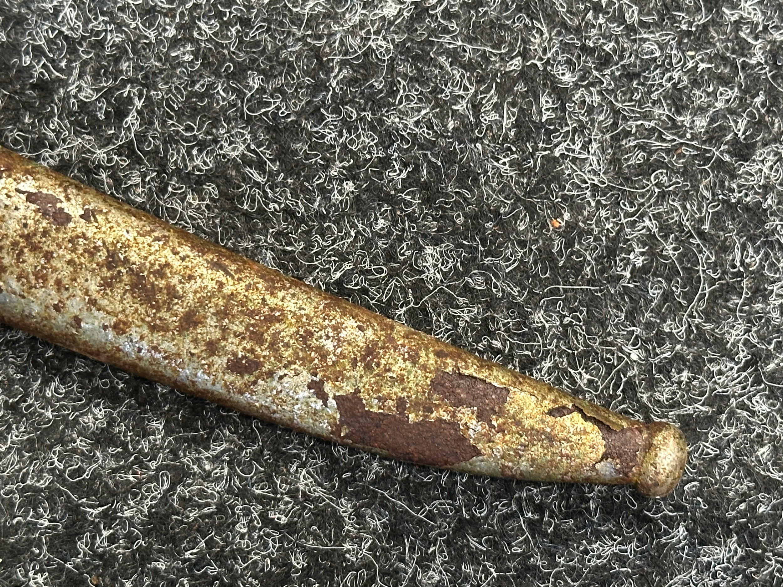 Has previously been plated and this is coming loose overall. Poor condition.Scabbard missing hanger loop.