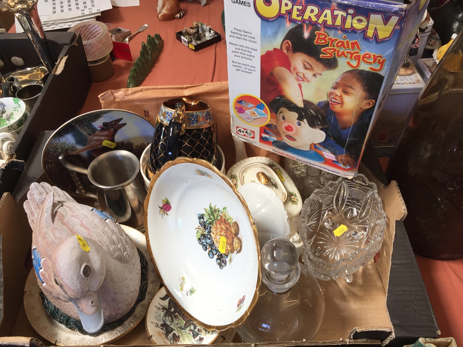 ARTLINE DUCK, GLASS DECANTER, DECORATIVE PLATES, TEAPOT, VASES, JUG, OPERATION GAME