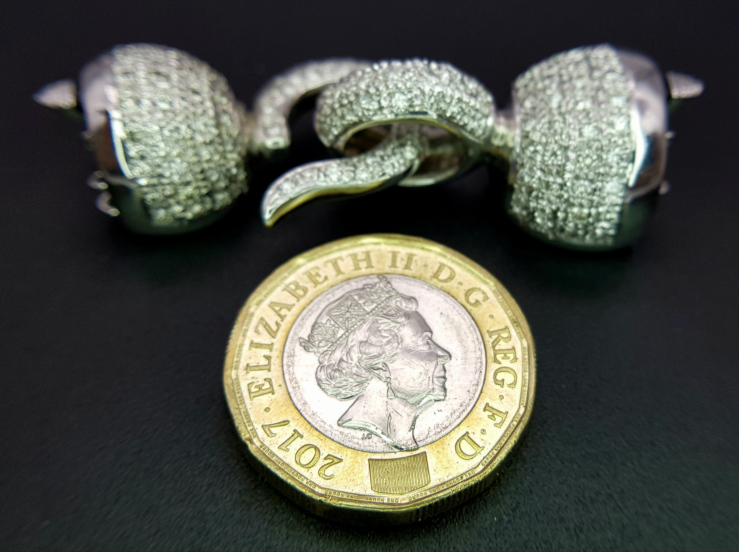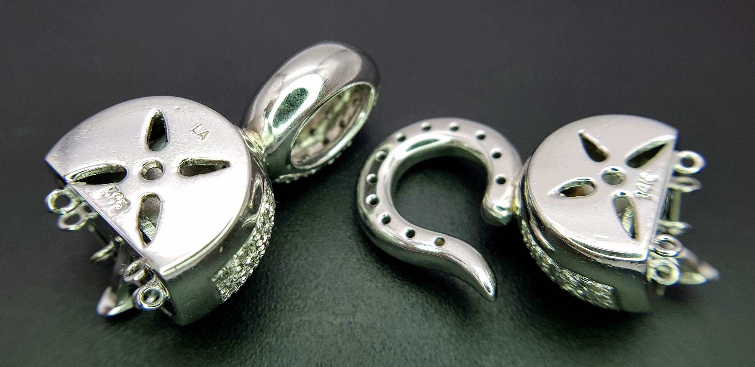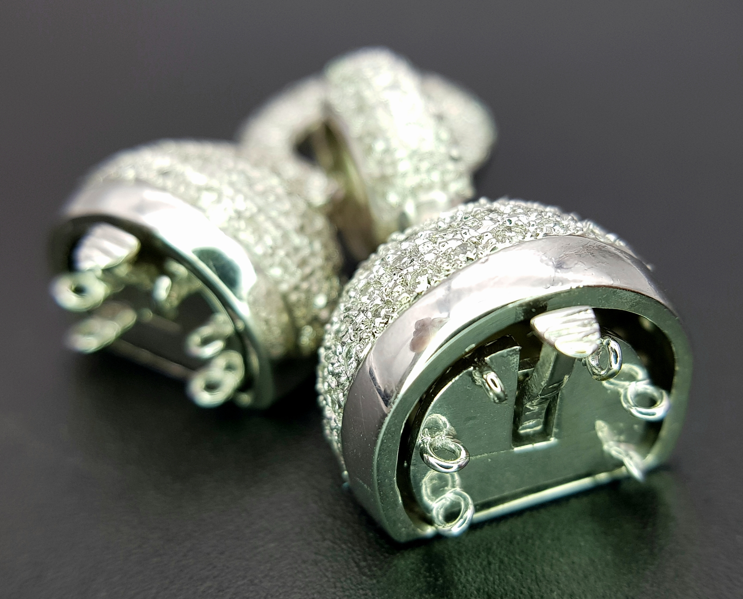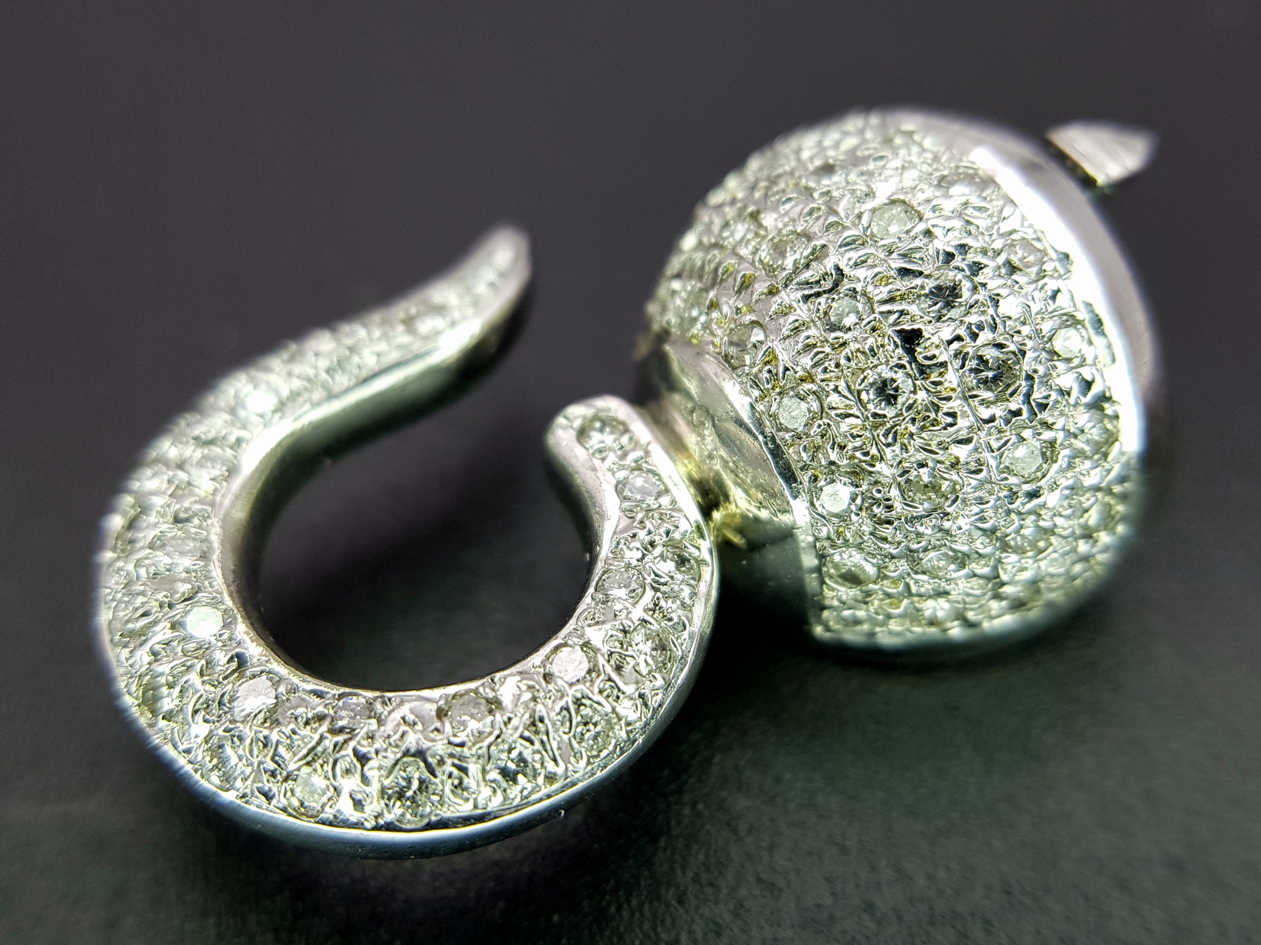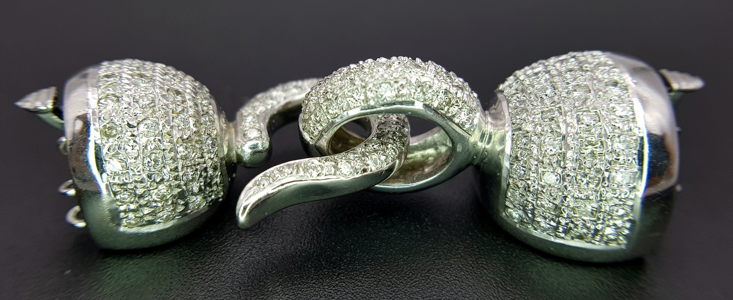A Wonderful, Brilliantly Crafted 14K White Gold and Pave Diamond, Hook and Bail Jewellery Clasp. 4.5cm. 23.3g. Ref: 2.17.