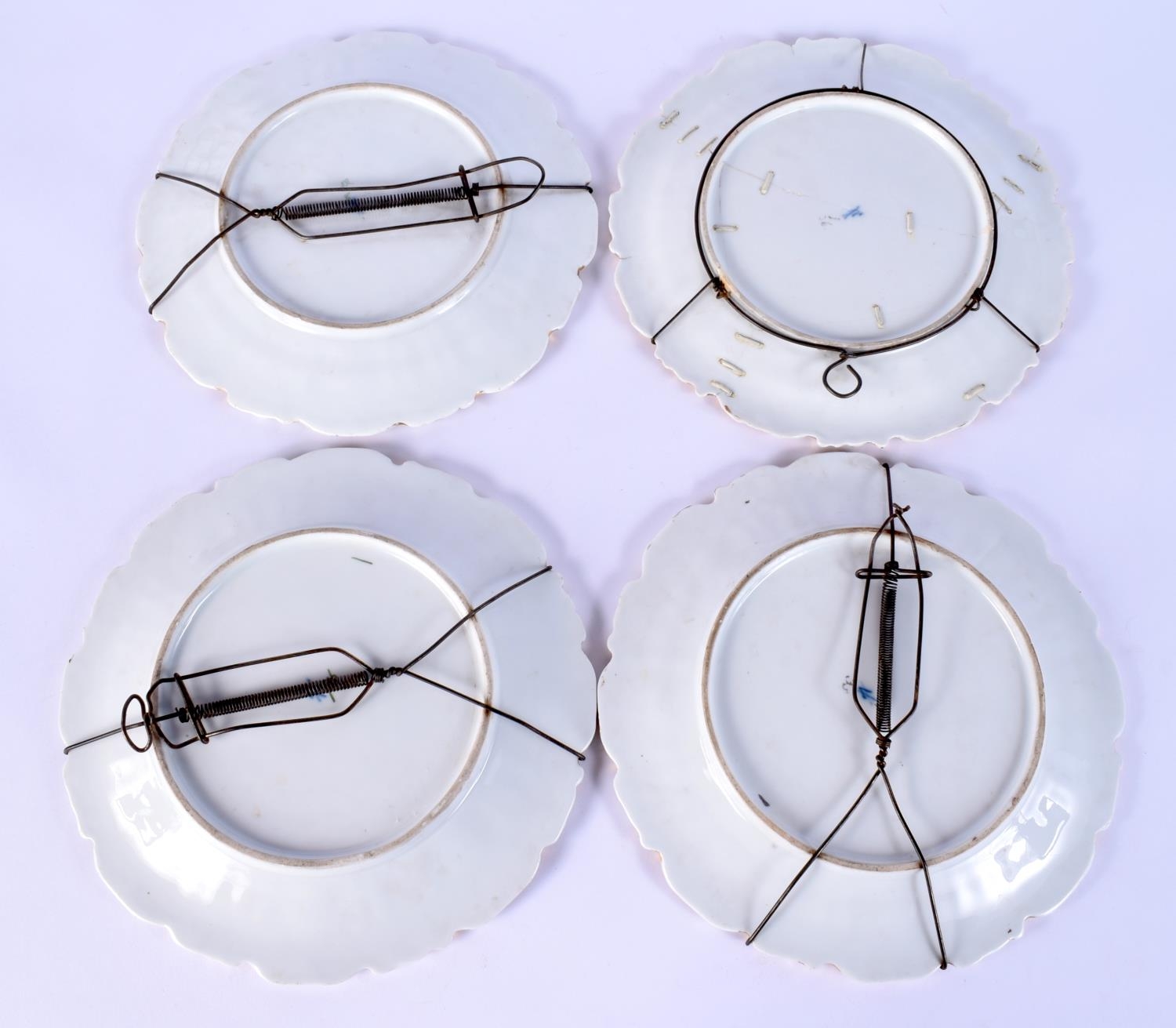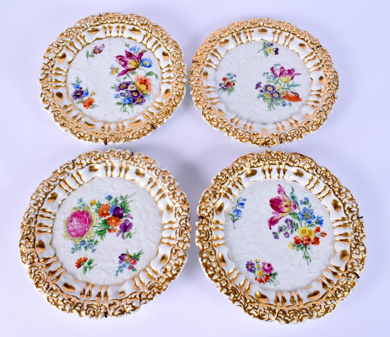A SET OF FOUR EARLY 20TH CENTURY GERMAN PORCELAIN PLATES painted with flowers. 18 cm wide. (4)