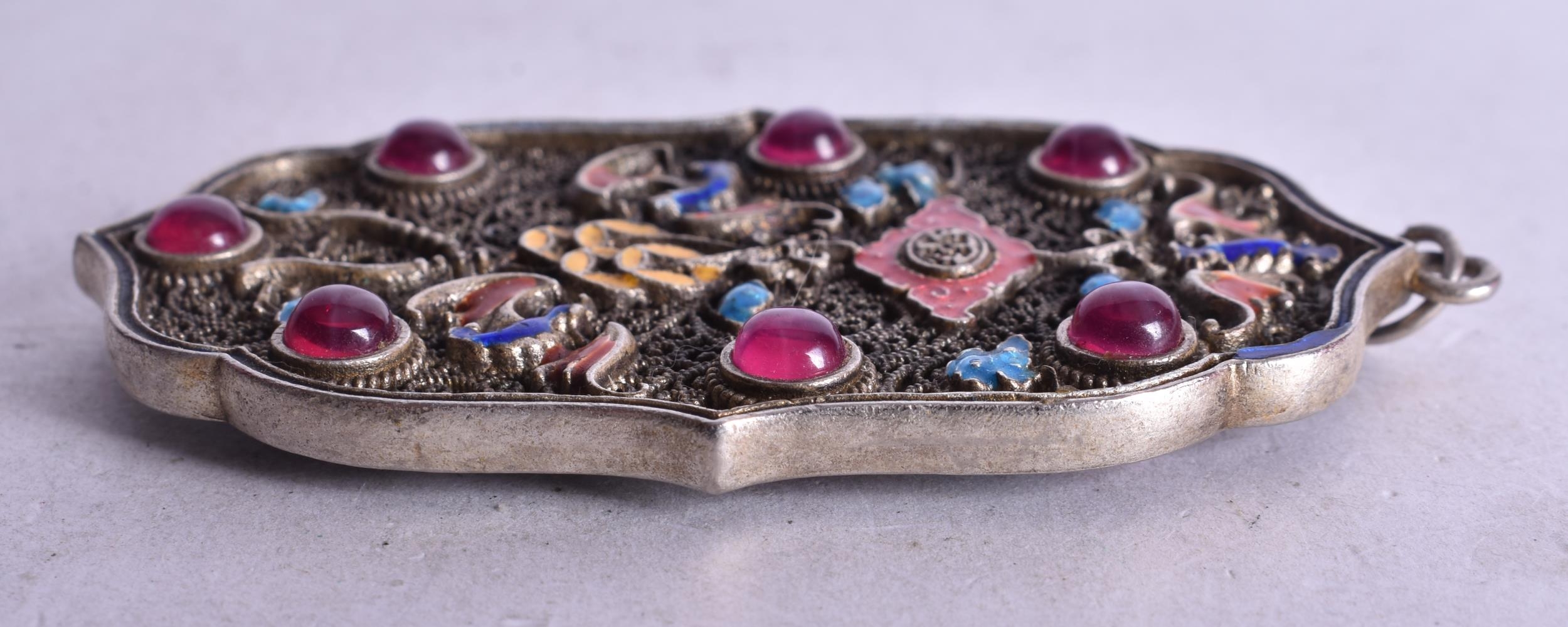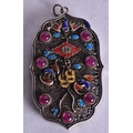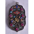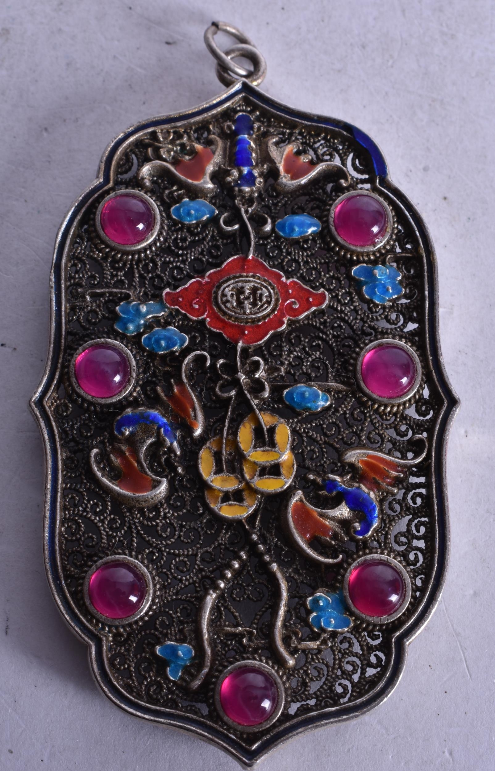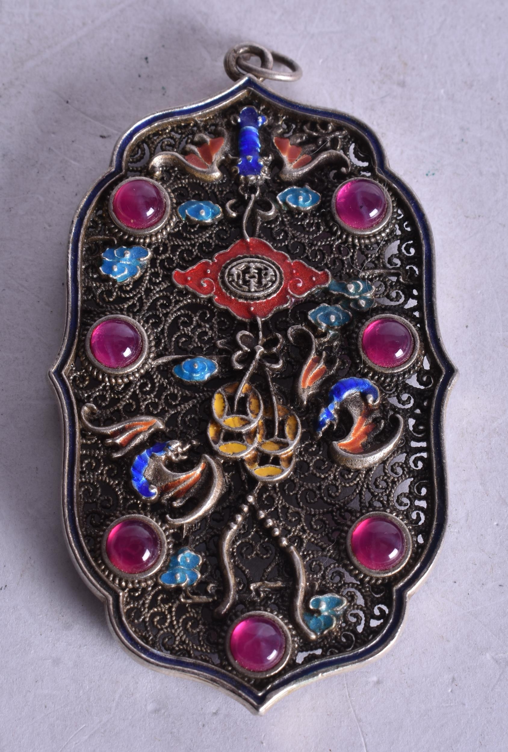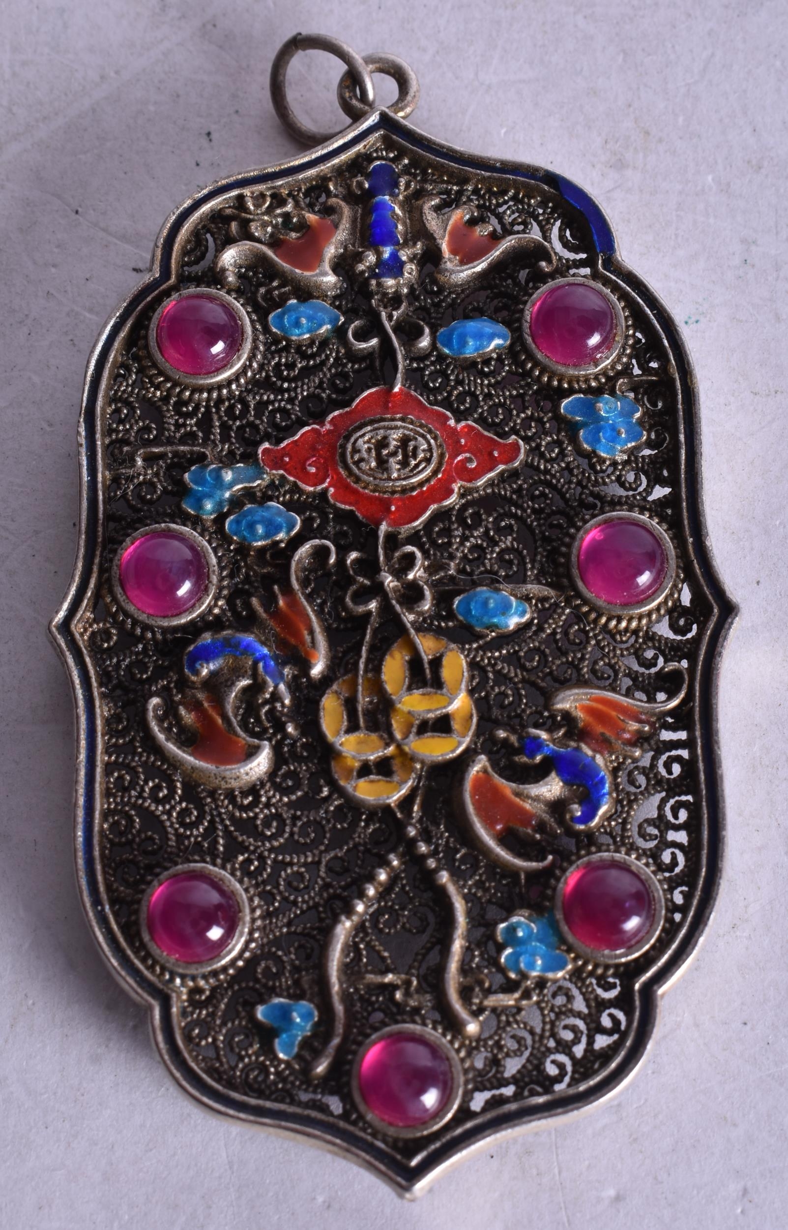 A Chinese Filigree and Enamel Pendant set with Gems. 8.4cm x 4.9cm, weight 4.9g