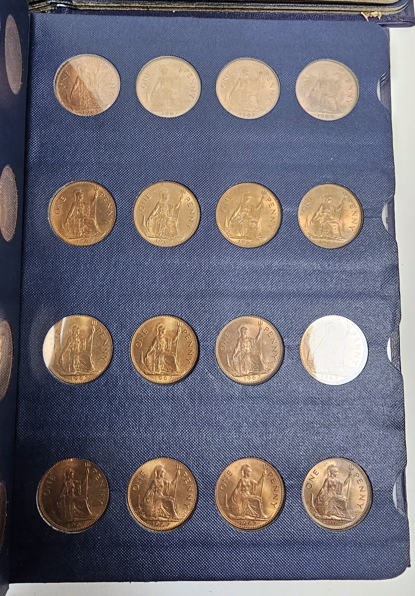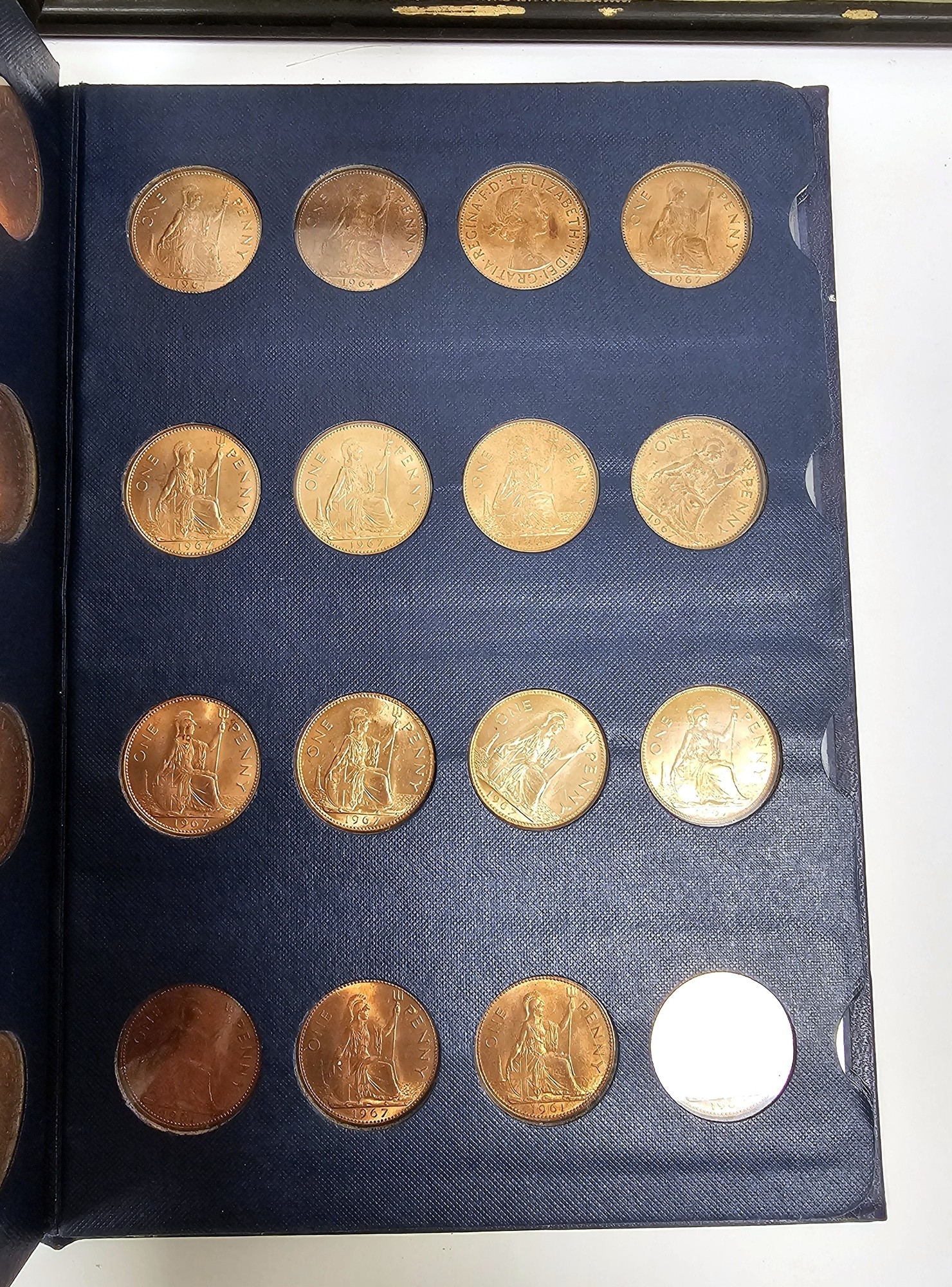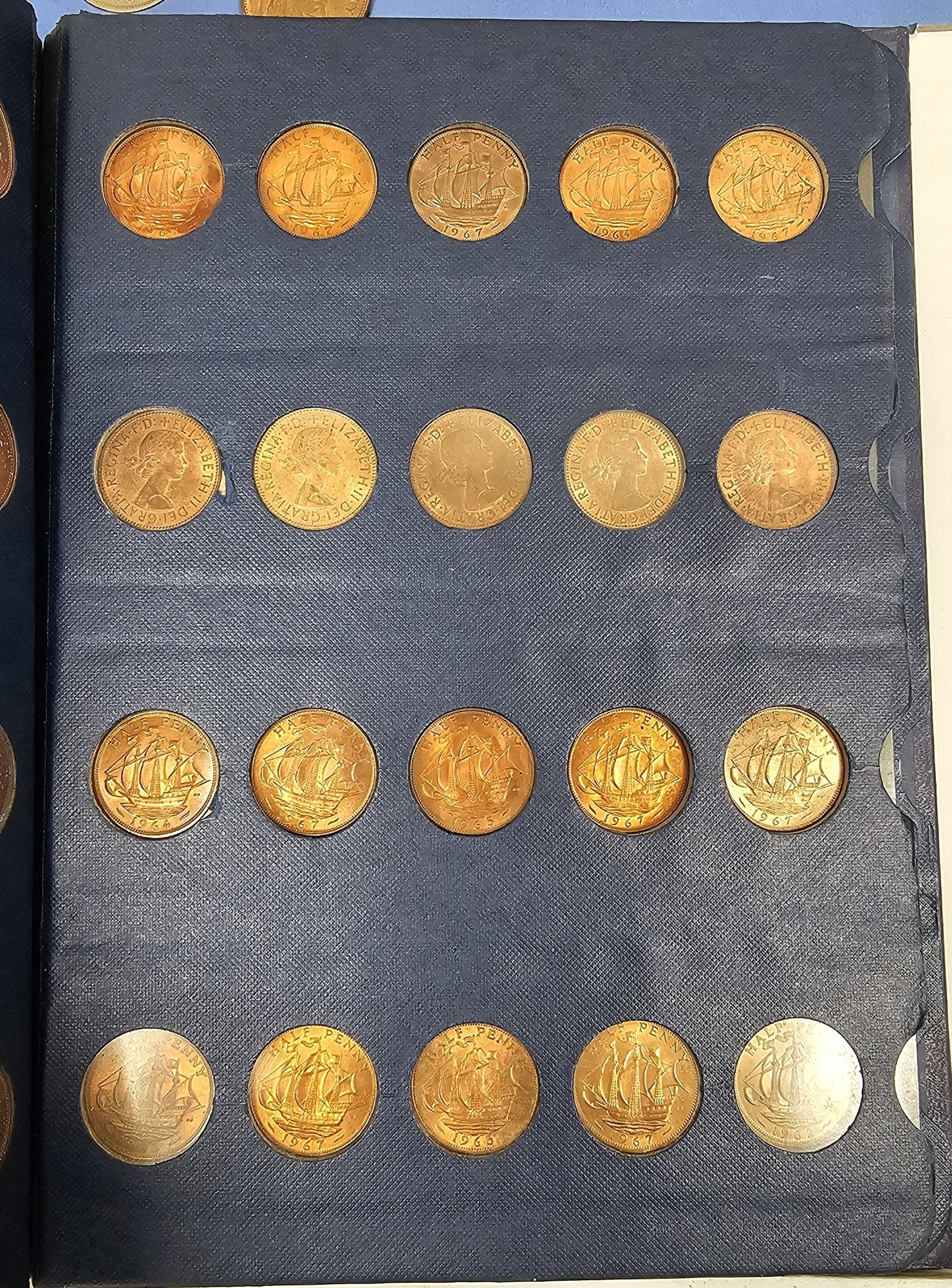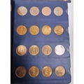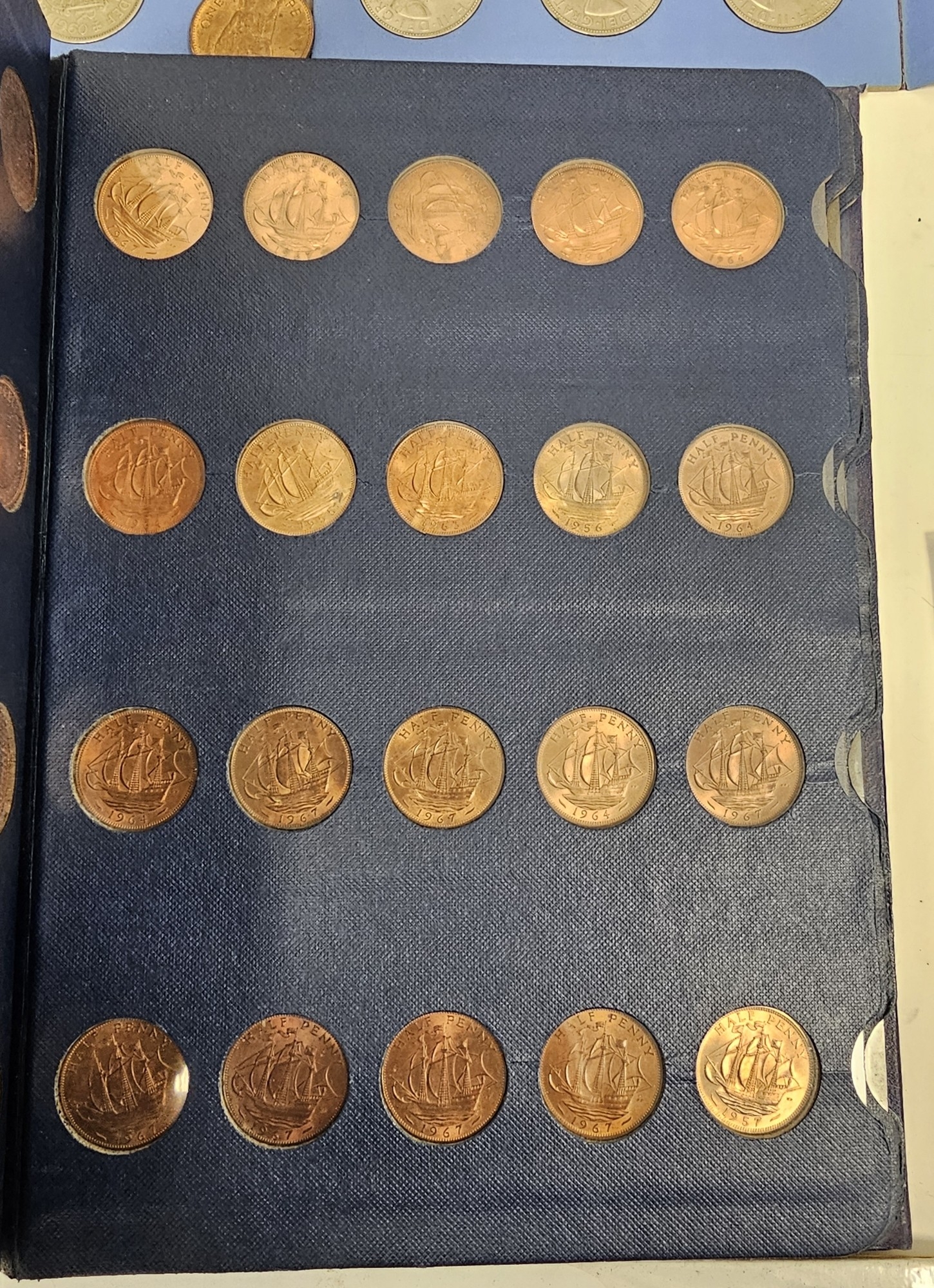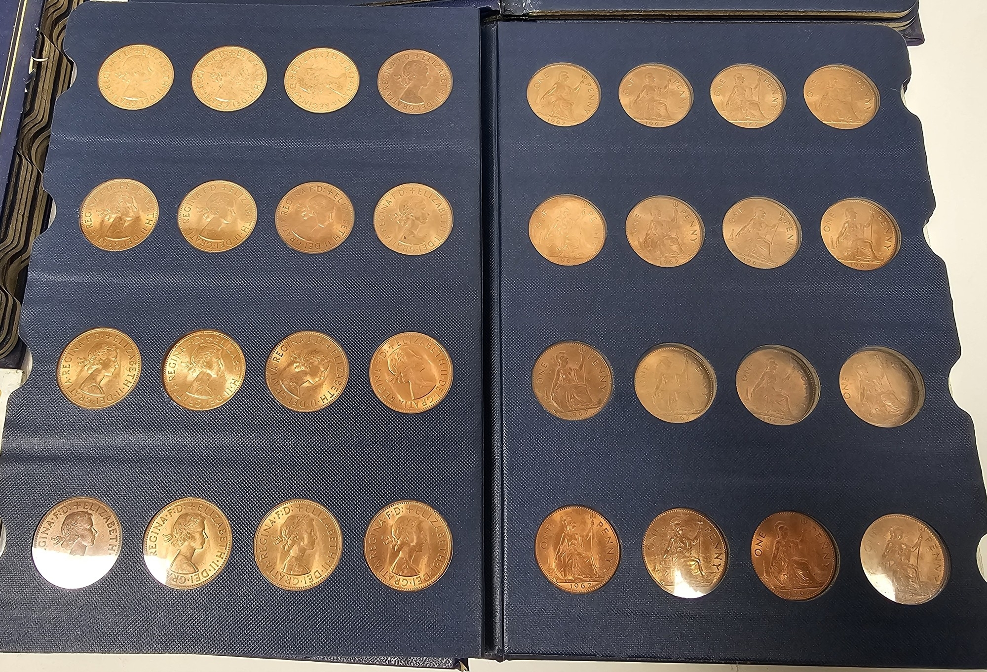 Collection of coins and stamps including three Sandhill coin library albums, one containing half penny coins from 1950's onwards, another containing penny coins from 1960's onwards, and the other containing a mix of shilling coins and penny coins together with partially complete Great Britain half crowns collection from 1941, collection of Turkish coins and three framed, glazed and mounted collections of used stamps