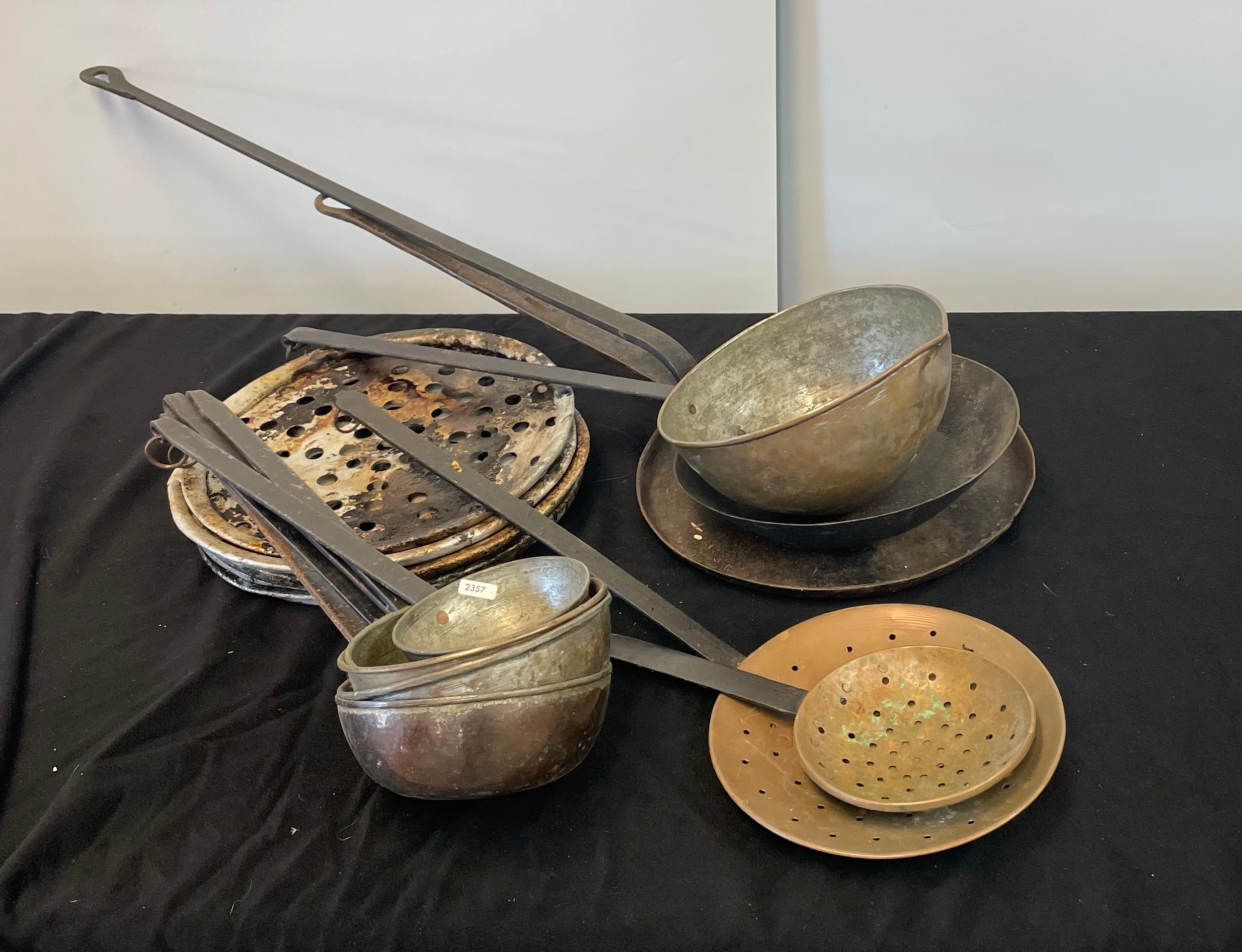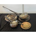 SELECTION OF METAL LADELS, 2 SIEVES,PIZZA OVER PLATES