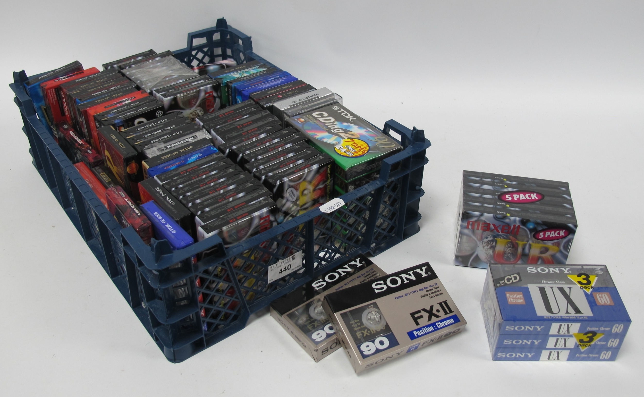 A Large Collection of New Blank Audio Cassette Tapes to include examples from TDK, Sony, Maxwell, Chrome examples noted, etc:- One Basket